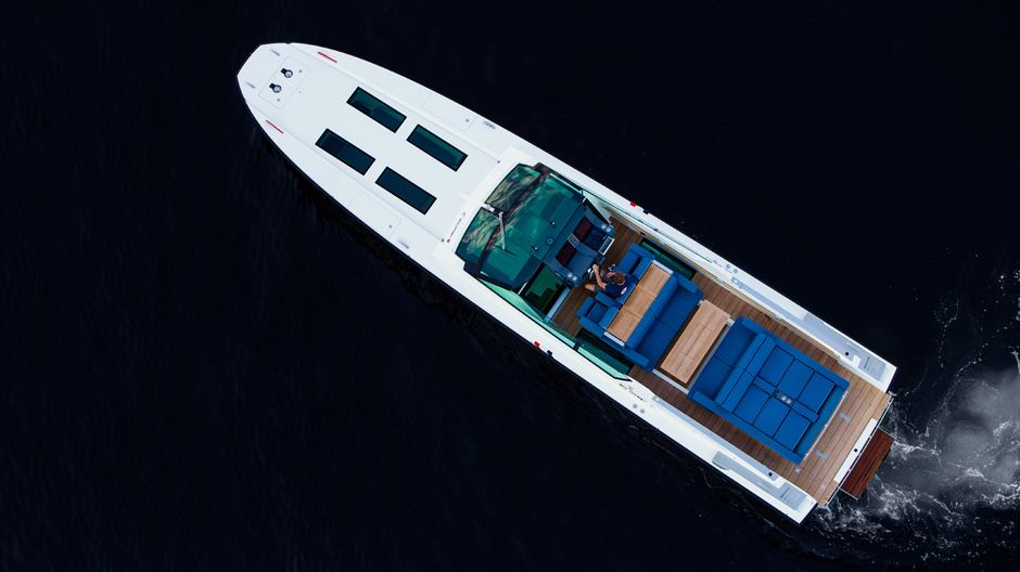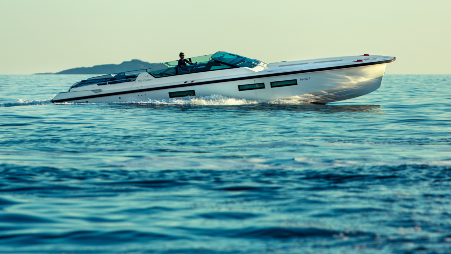 The Scandinavian shipyard introduced this unusual model in 2012: it features a superyacht tender, an offshore cruiser and a Mediterranean pleasure yacht. She has excellent hydrodynamic characteristics and has an impressive speed. With a length of almost 15 meters, she is 3.8 meters wide. In addition to her speed, this yacht impresses with her spaces, accommodating up to 10 people in her cockpit.