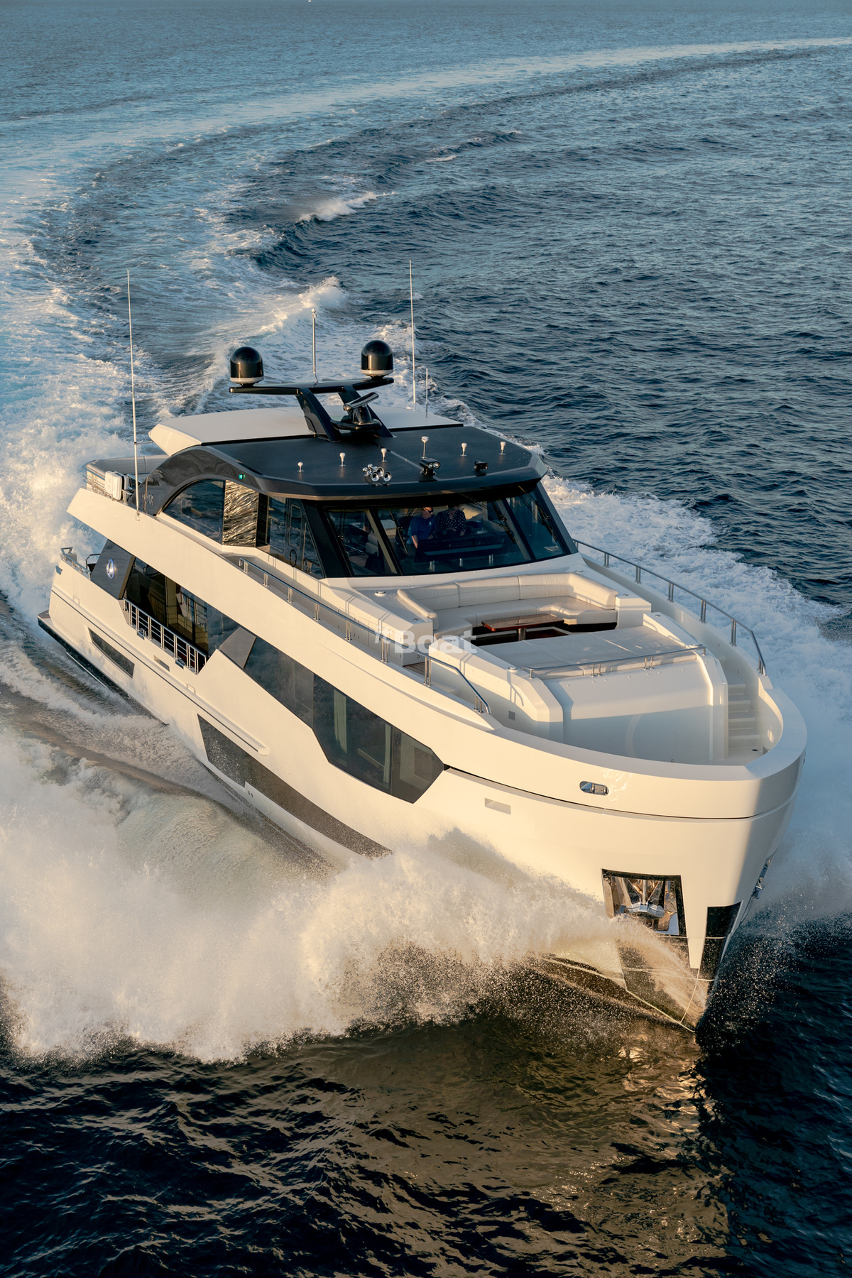 The motor yacht Ocean Alexander 90R Enclosed Bridge was produced by the brand Ocean Alexander from 2020 to 2022. The Ocean Alexander 90R Enclosed Bridge is a 27.43 meter motor superyacht with 4 guest cabins and a draft of 1.79 meters. The yacht with a CE certification class (A) and can navigate the open ocean. The Ocean Alexander 90R Enclosed Bridge is no longer in production and the price of used models varies. Please contact the itBoat team for more information on used yachts and pricing details.