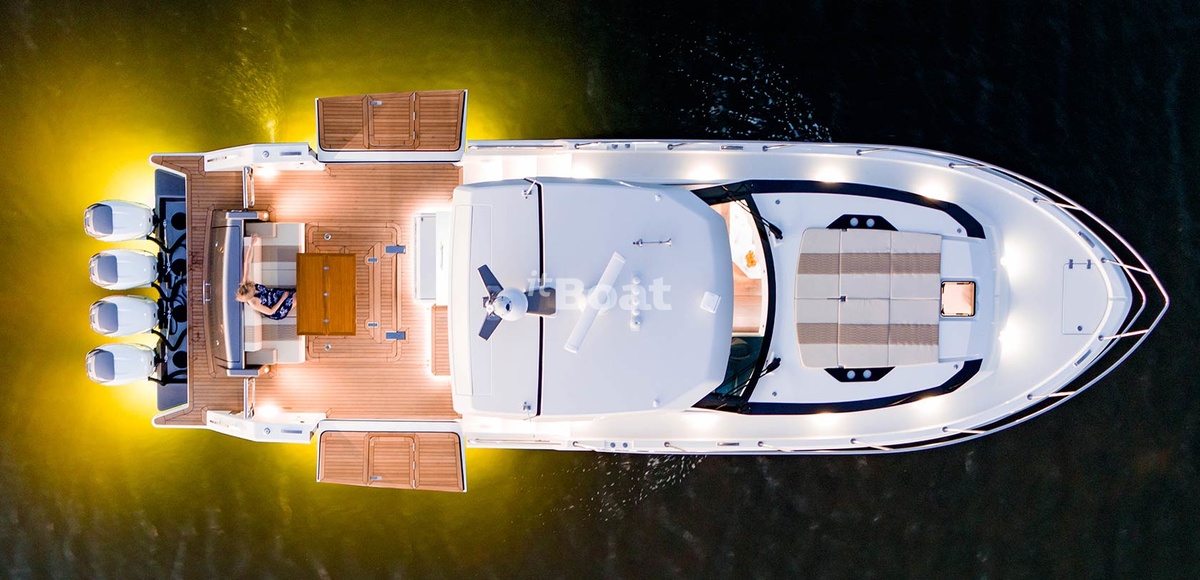The powerboat Ocean Alexander 45 Divirgence Coupe was produced by the brand Ocean Alexander from 2019 to 2022. The Ocean Alexander 45 Divirgence Coupe is a 14.45 meters Hardtop boat with semi-enclosed saloon with 1 guest cabin and a draft of 1.19 meters. The boat has a fiberglass / grp hull with a CE certification class (B) and can navigate no further than 200 miles off the coastline. The Ocean Alexander 45 Divirgence Coupe is no longer in production and the price of used models varies. Please contact the itBoat team for more information on used boats and pricing details.