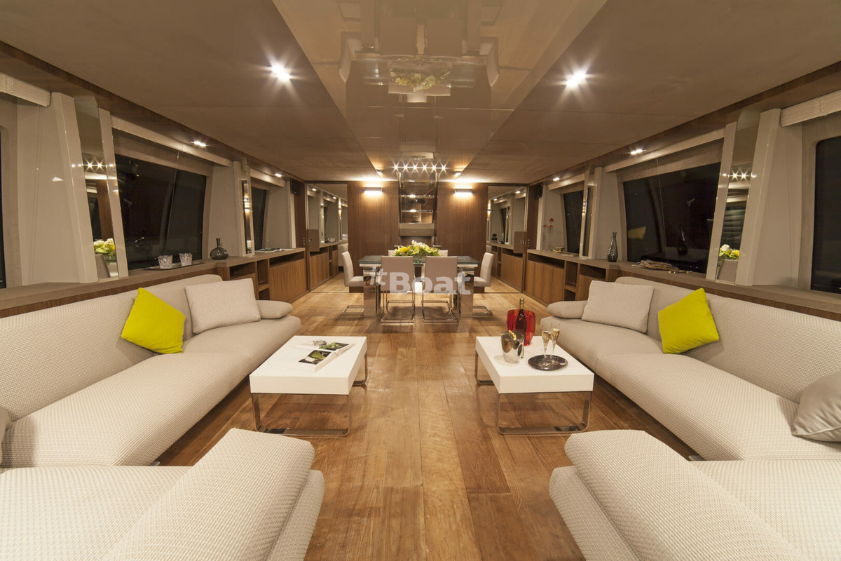 The motor yacht Amer Cento Quad was produced by the brand Amer Yachts from 2016 to 2020. The Amer Cento Quad is a 29.60 meter motor superyacht with 5 guest cabins and a draft of 1.95 meters which can reach speeds of up to 28 knots. The yacht has a fiberglass / grp hull with a CE certification class (A) and can navigate the open ocean. The Amer Cento Quad is no longer in production and the price of used models varies. Please contact the itBoat team for more information on used yachts and pricing details.