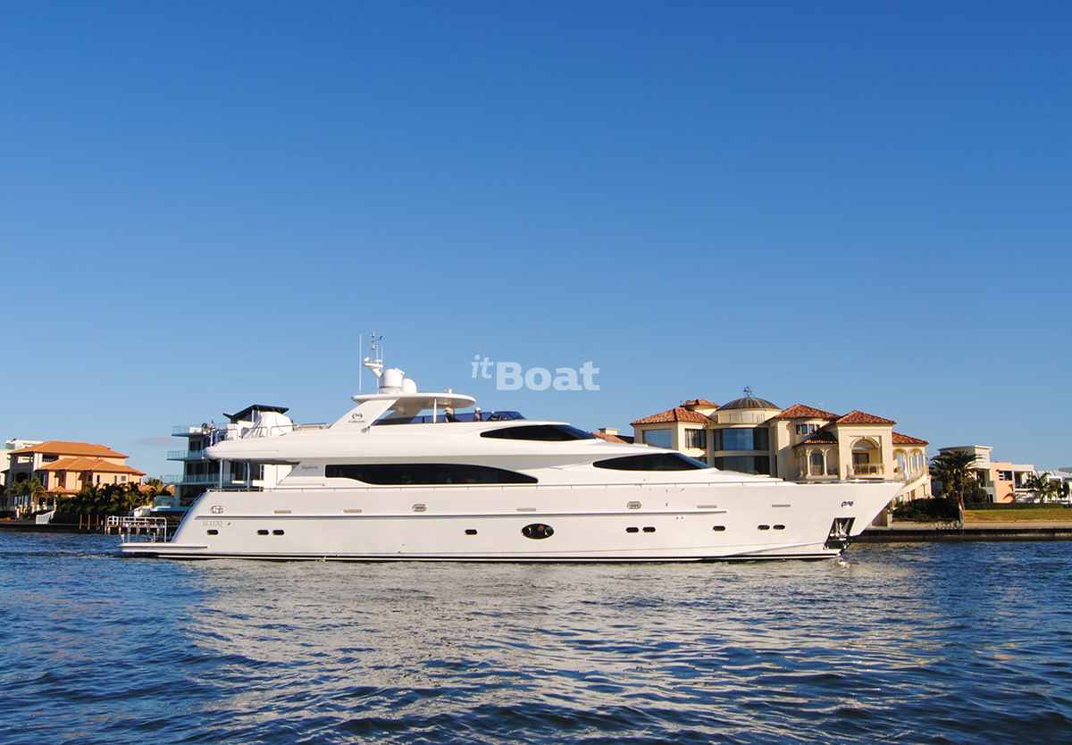 The motor yacht Horizon RP100 was produced by the brand Horizon from 2019 to 2022. The Horizon RP100 is a 29.57 meter semi-displacement yacht with 4 guest cabins and a draft of 1.79 meters. The yacht has a fiberglass / grp hull with a CE certification class (A) and can navigate the open ocean. The Horizon RP100 is no longer in production and the price of used models varies. Please contact the itBoat team for more information on used yachts and pricing details.