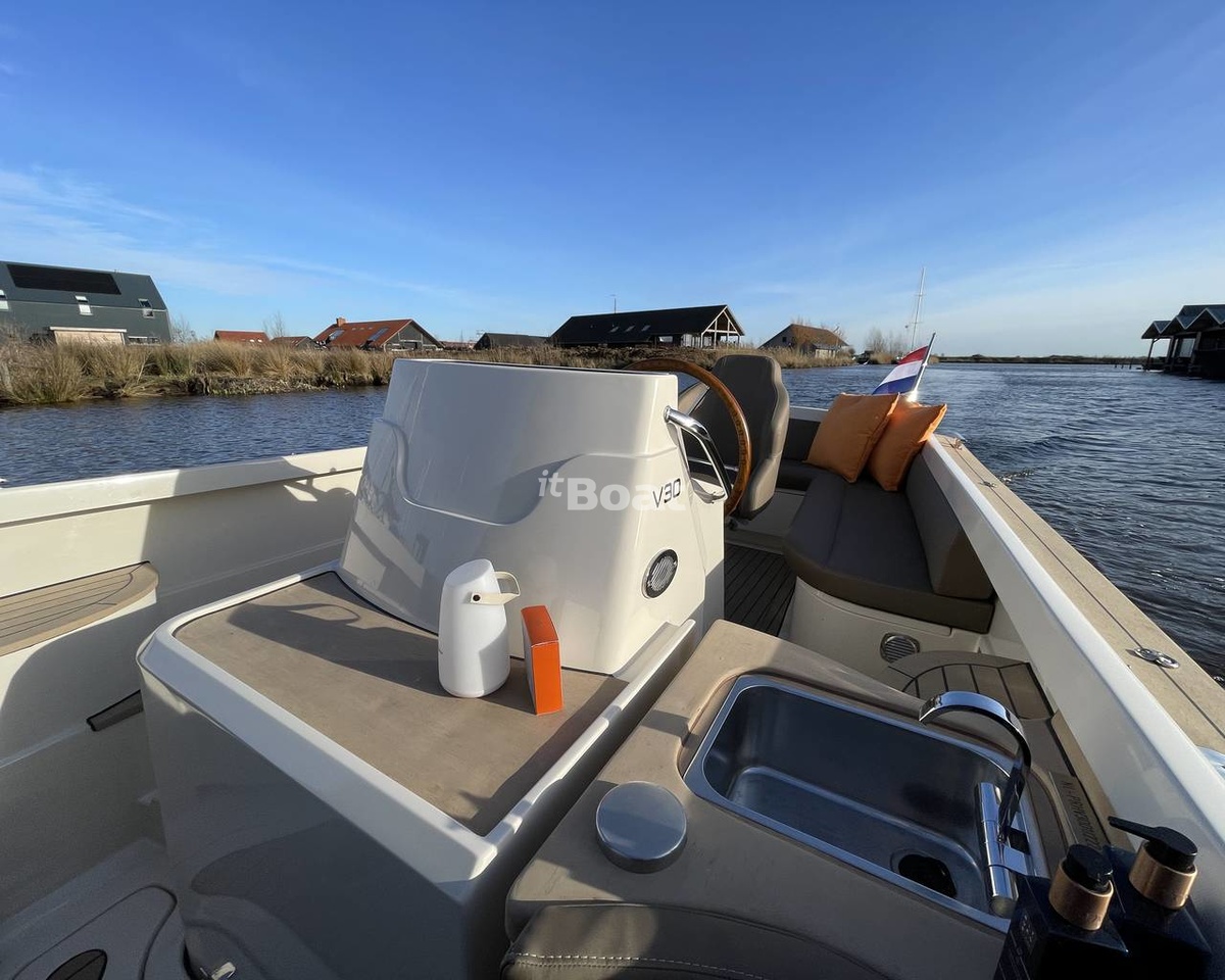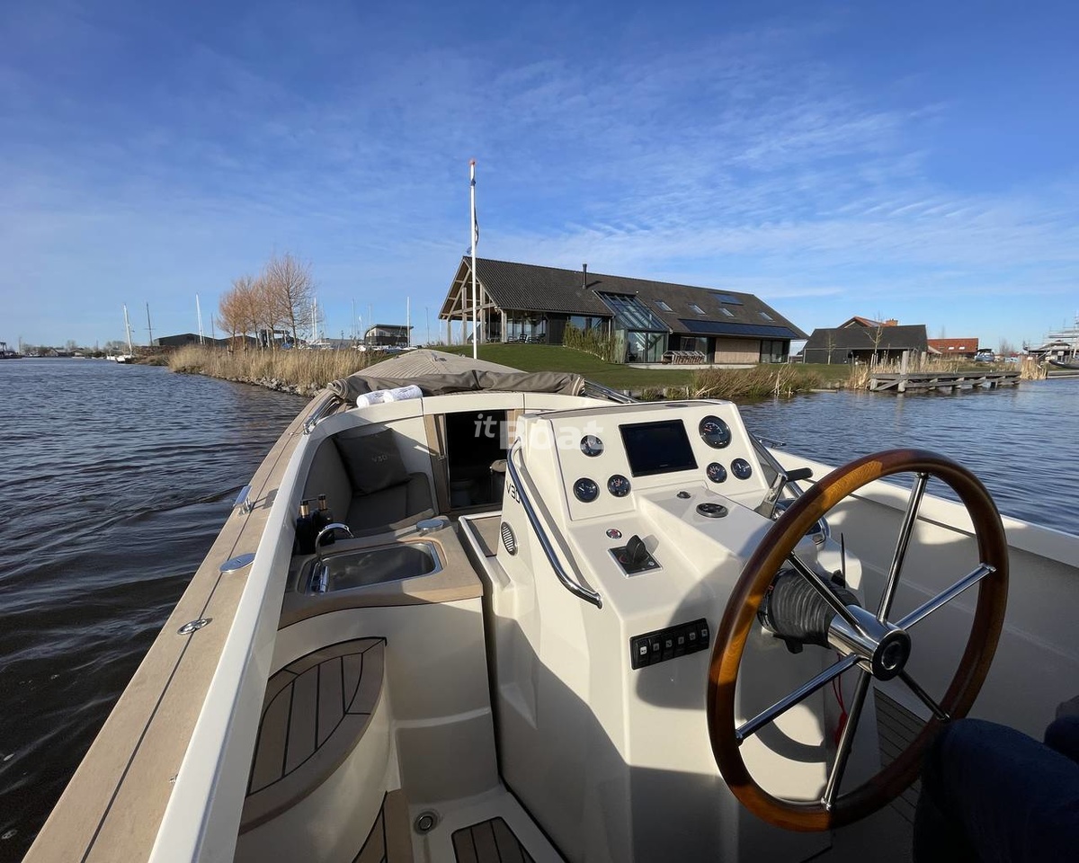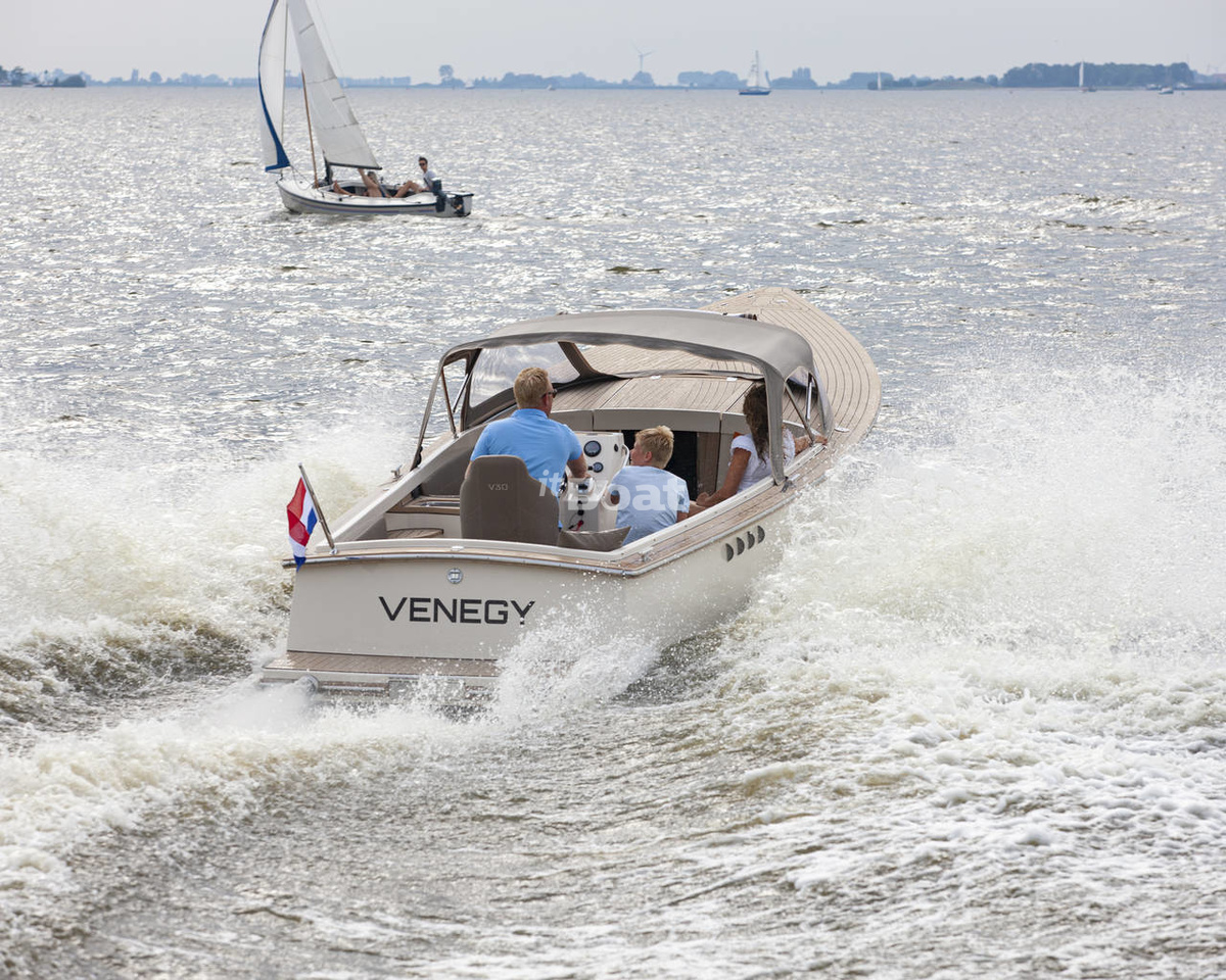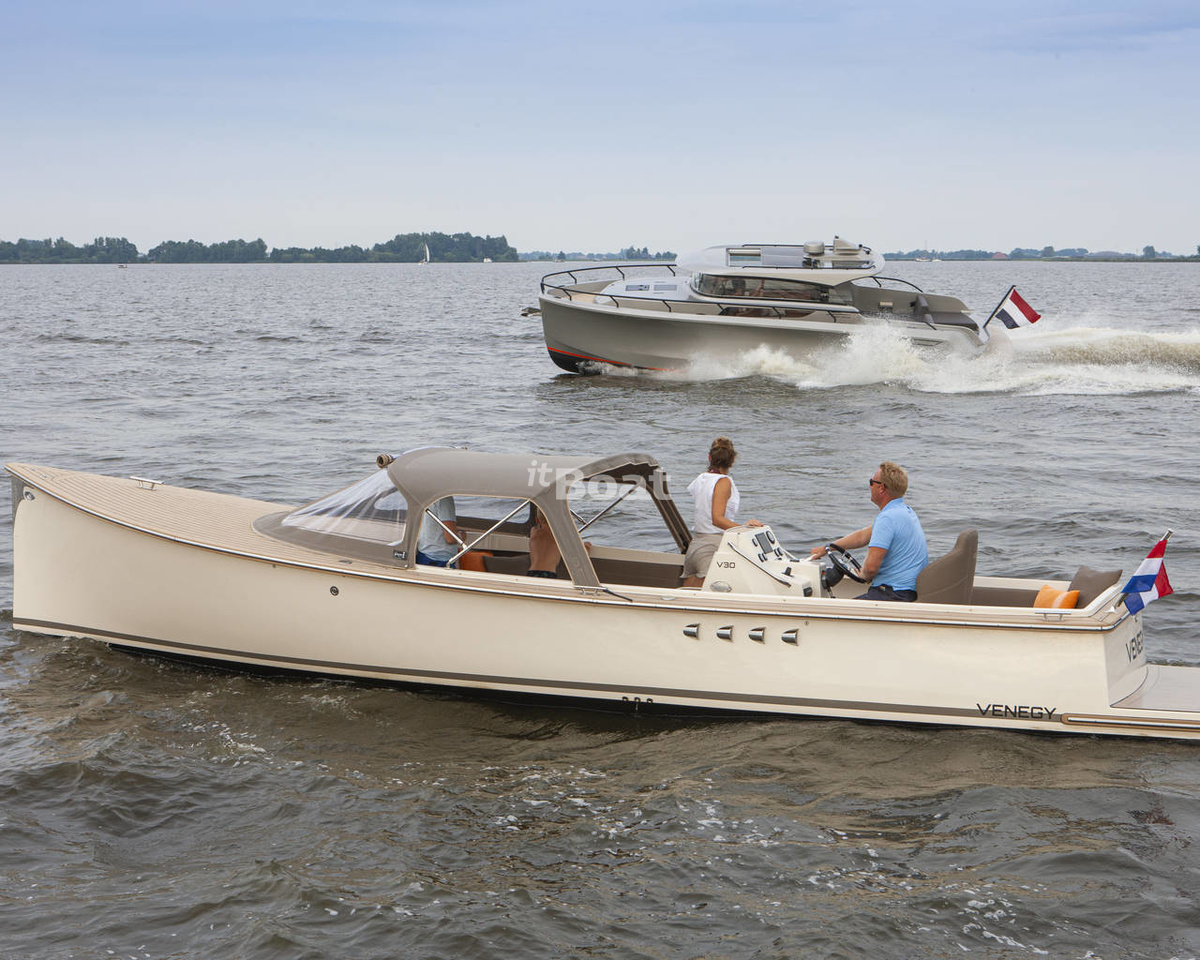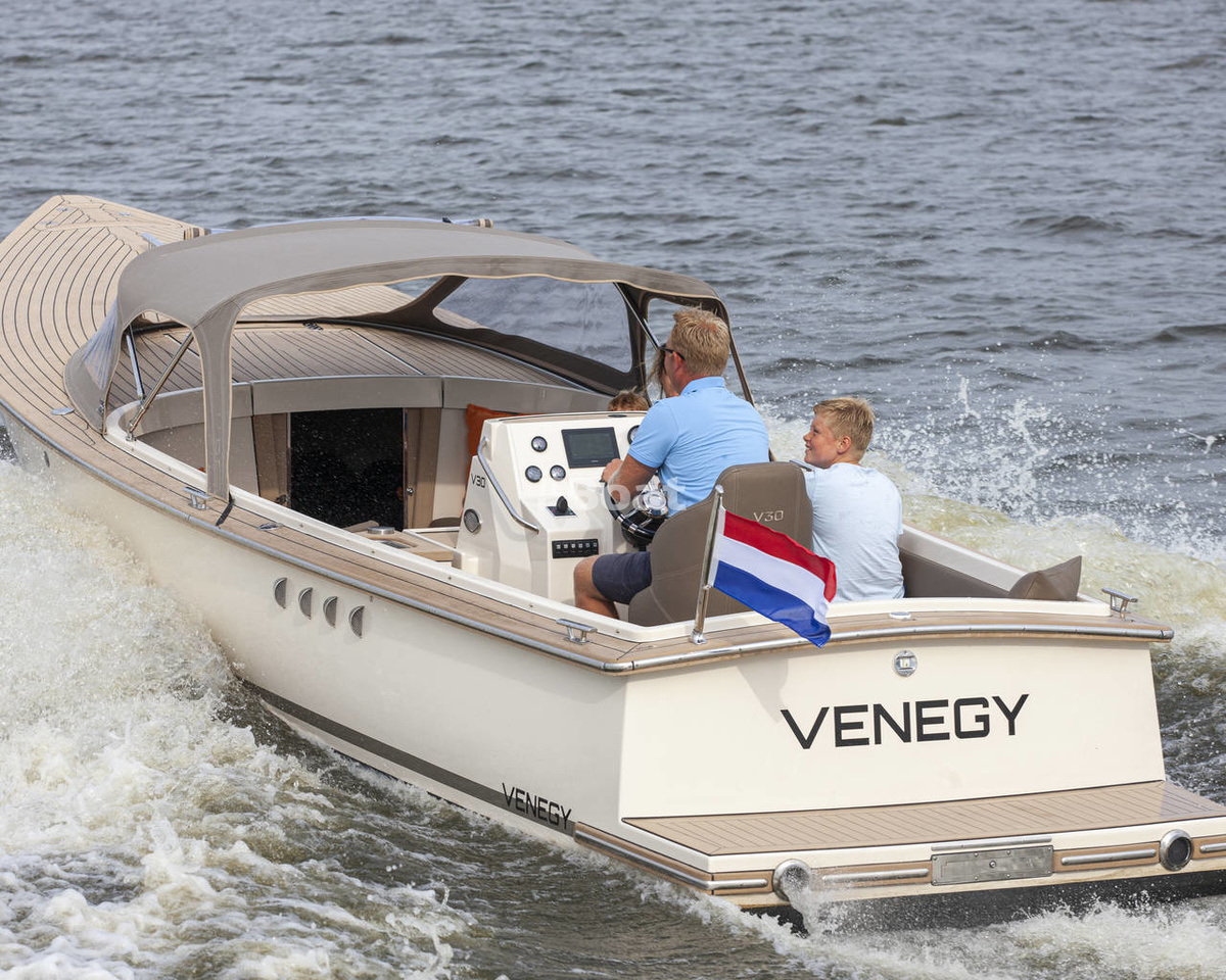 The Venegy V30 Classic Cabin powerboat is produced by the brand Venegy Yachts since 2022. The Venegy V30 Classic Cabin is a 9.00 meters cabin cruise boat with 1 guest cabin and a draft of 0.70 meters which can reach speeds of up to 25 knots. The boat has a fiberglass / grp hull with a CE certification class (C) and can navigate along the coastline and on rivers and canals. The base price of a new Venegy V30 Classic Cabin is not currently published, please contact the itBoat team for pricing details.