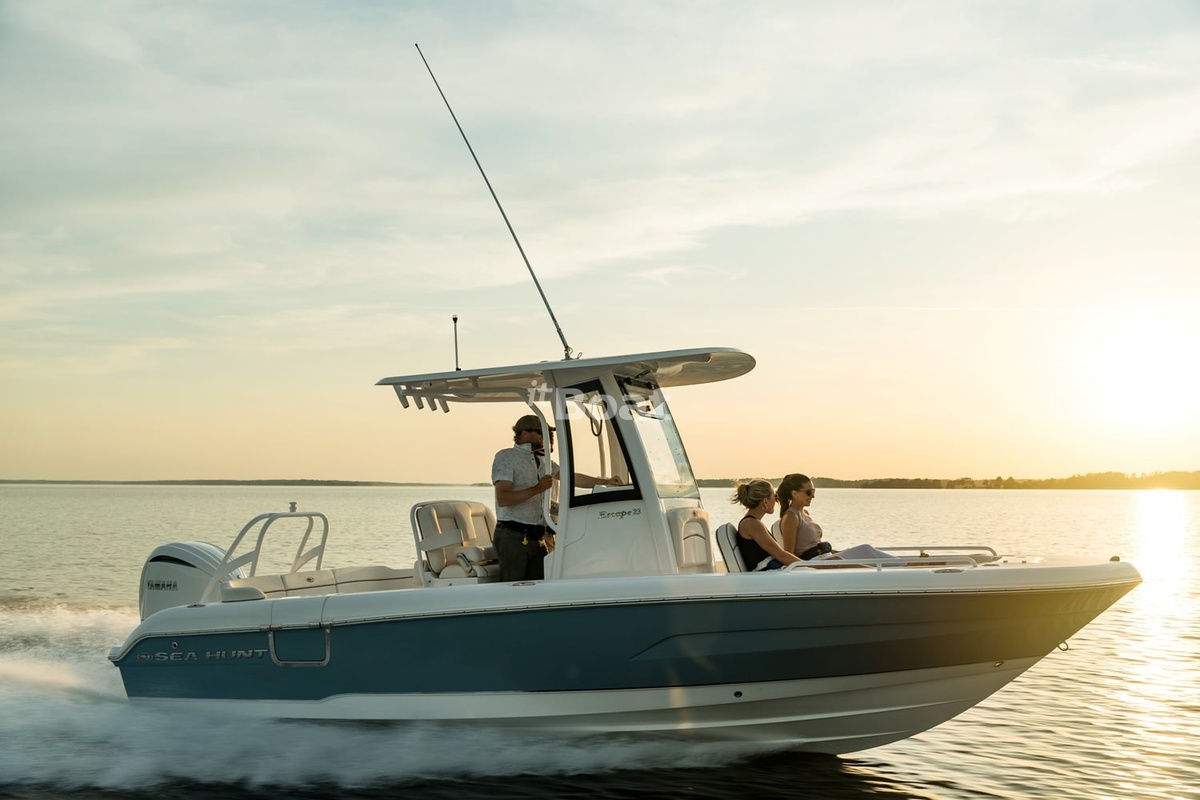 View video reviews, onboard virtual tours and walkthroughs, sea trials and test drives of the Sea Hunt Escape 23 powerboats from the manufacturer and independent yachting experts. Convinced the Sea Hunt Escape 23 is for you? Contact our team today to learn more.