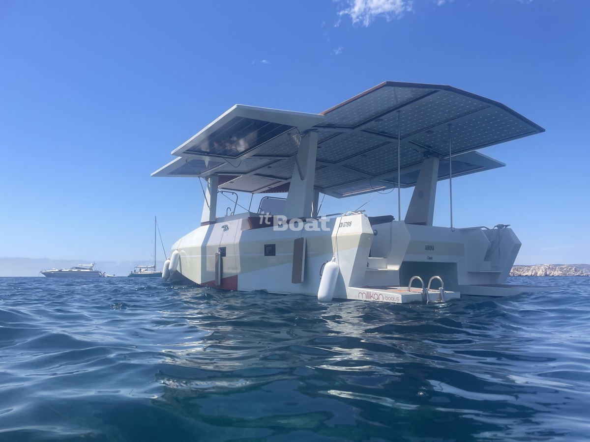 The Millikan M9 powerboat is produced by the brand Millikan Boats since 2024. The Millikan M9 is a 9.50 meters Electric/hybrid boat with 1 guest cabin and a draft of 0.60 meters which can reach speeds of up to 12 knots. The boat has a fiberglass / grp hull with a CE certification class (C) and can navigate along the coastline and on rivers and canals. The base price of a new Millikan M9 is not currently published, please contact the itBoat team for pricing details.