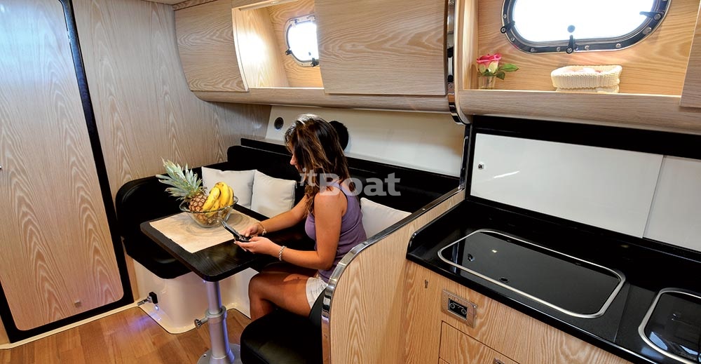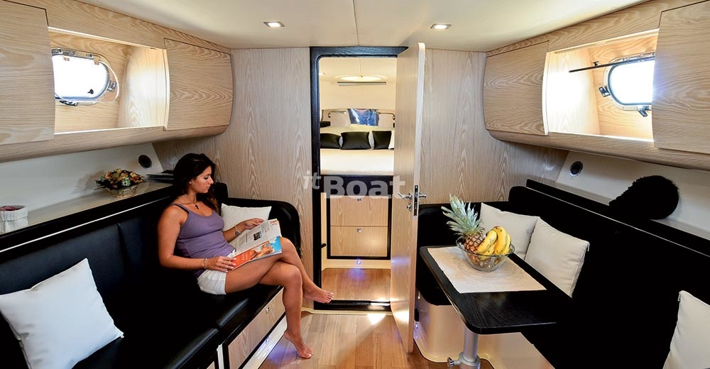 The motor yacht Esposito Positano Cabin 38 is produced by the brand Esposito Mare since 2020. The Esposito Positano Cabin 38 is a 11.50 meter lobster bot with 2 guest cabins and a draft of 0.80 meters which can reach speeds of up to 34 knots. The yacht has a fiberglass / grp hull with a CE certification class (B) and can navigate no further than 200 miles offshore. The base price of a new Esposito Positano Cabin 38 is not currently published, please contact the itBoat team for pricing details.