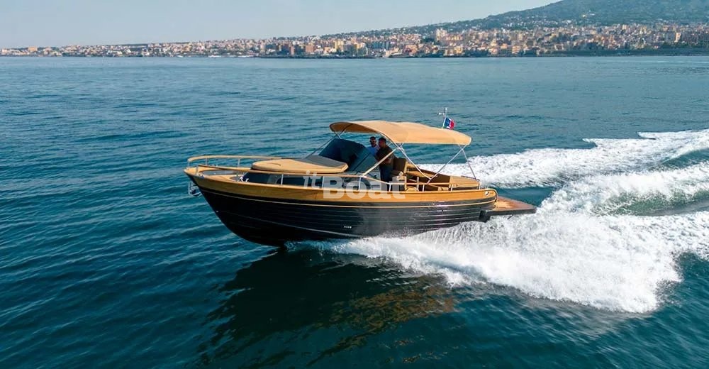 The Esposito Positano Open 32 powerboat is produced by the brand Esposito Mare since 2022. The Esposito Positano Open 32 is a 10.50 meters cabin cruise boat with 1 guest cabin and a draft of 0.75 meters which can reach speeds of up to 29 knots. The boat has a fiberglass / grp hull with a CE certification class (B) and can navigate no further than 200 miles off the coastline. The base price of a new Esposito Positano Open 32 is not currently published, please contact the itBoat team for pricing details.
