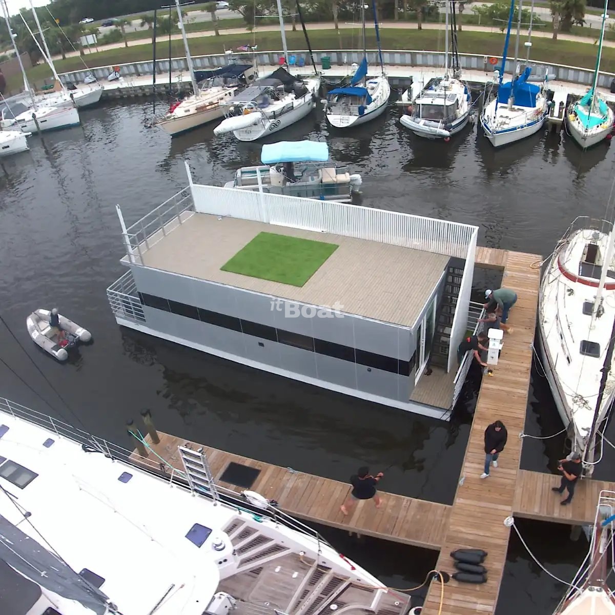 The motor yacht Modern Struktures MS400 is produced by the brand Modern Struktures since 2021. The Modern Struktures MS400 is a 12.19 meter houseboat with 1 guest cabin and a draft of 0.61 meters. The yacht has a aluminum hull with a CE certification class (C) and can navigate along the coastline, on rivers and canals. The base price of a new Modern Struktures MS400 is not currently published, please contact the itBoat team for pricing details.