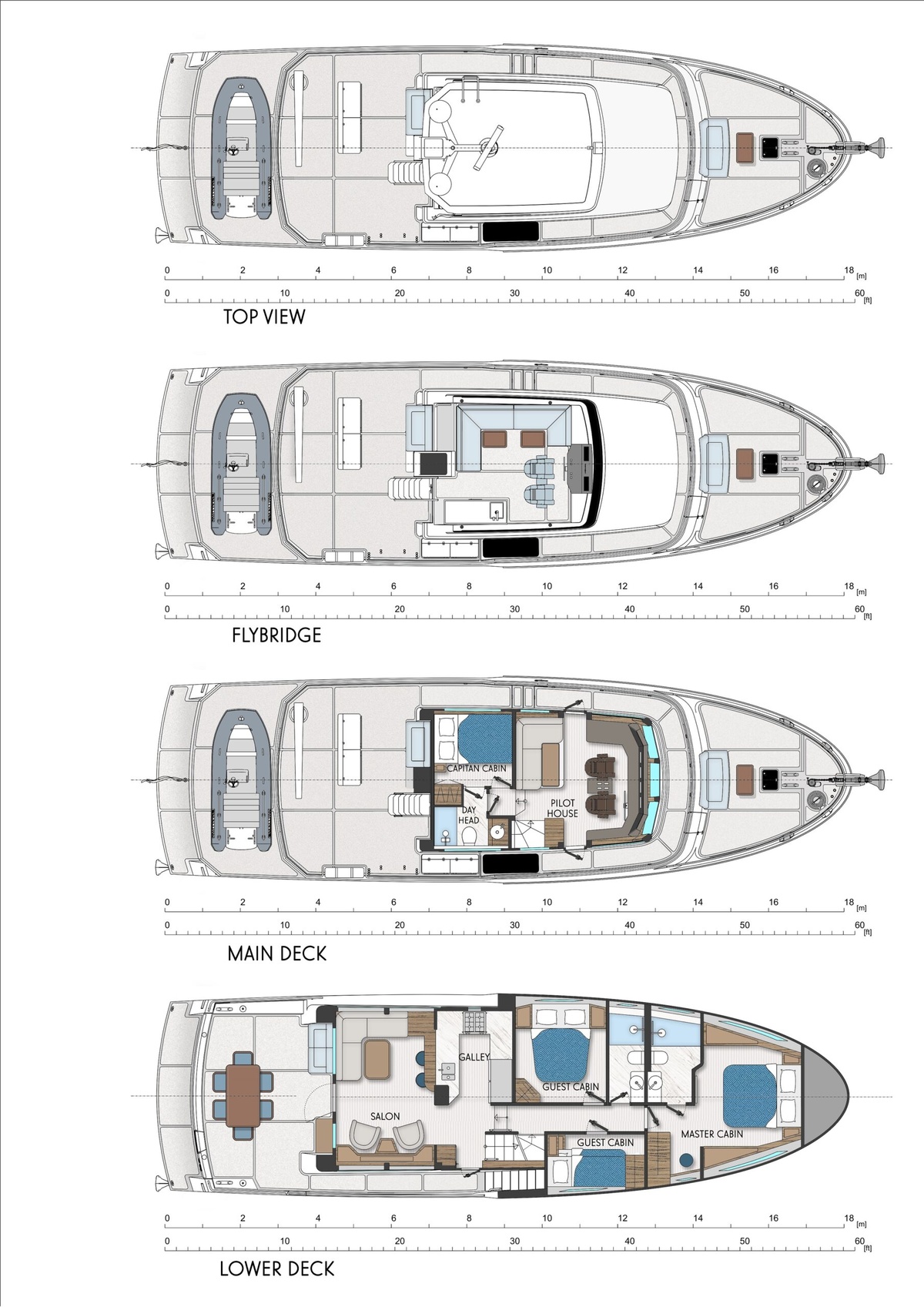 The motor yacht Cormorant COR60 RAV is produced by the brand Cormorant Yachts since 2025. The Cormorant COR60 RAV is a 18.90 meter expedition yacht with 4 guest cabins and a draft of 1.85 meters which can reach speeds of up to 12 knots. The yacht has a fiberglass / grp hull with a CE certification class (A) and can navigate the open ocean. The base price of a new Cormorant COR60 RAV is not currently published, please contact the itBoat team for pricing details.