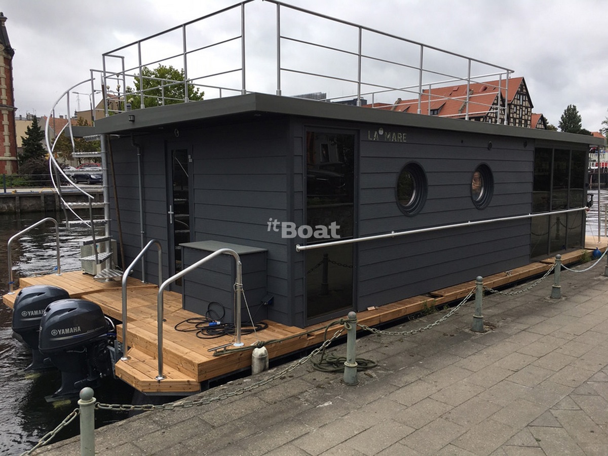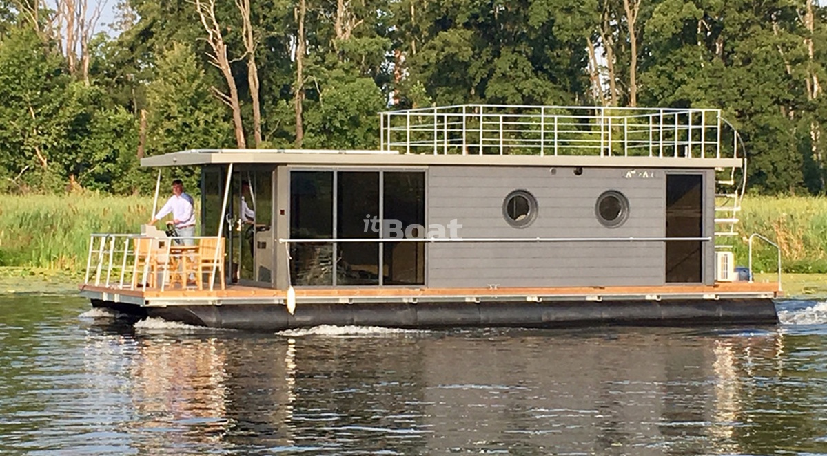The motor yacht Lamare Apart XL is produced by the brand Lamare since 2015. The Lamare Apart XL is a 12.50 meter houseboat with 2 guest cabins and a draft of 0.45 meters. The yacht has a fiberglass / grp hull with a CE certification class (C) and can navigate along the coastline, on rivers and canals. The base price of a new Lamare Apart XL is not currently published, please contact the itBoat team for pricing details.