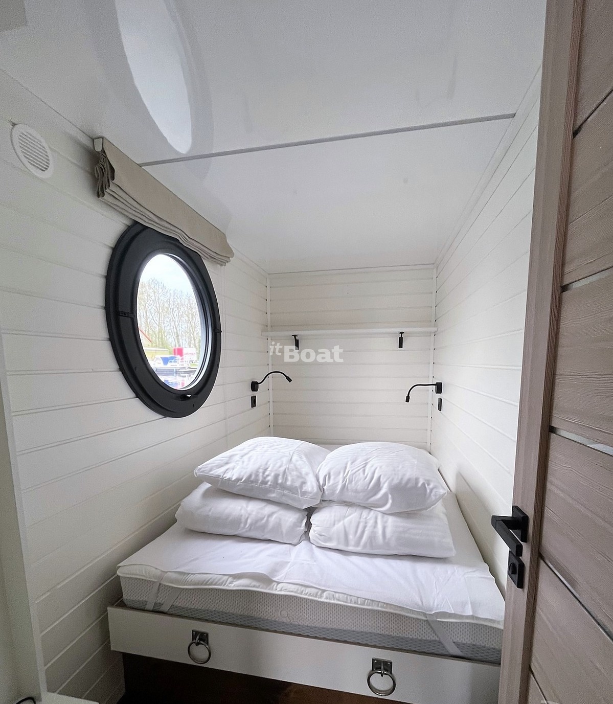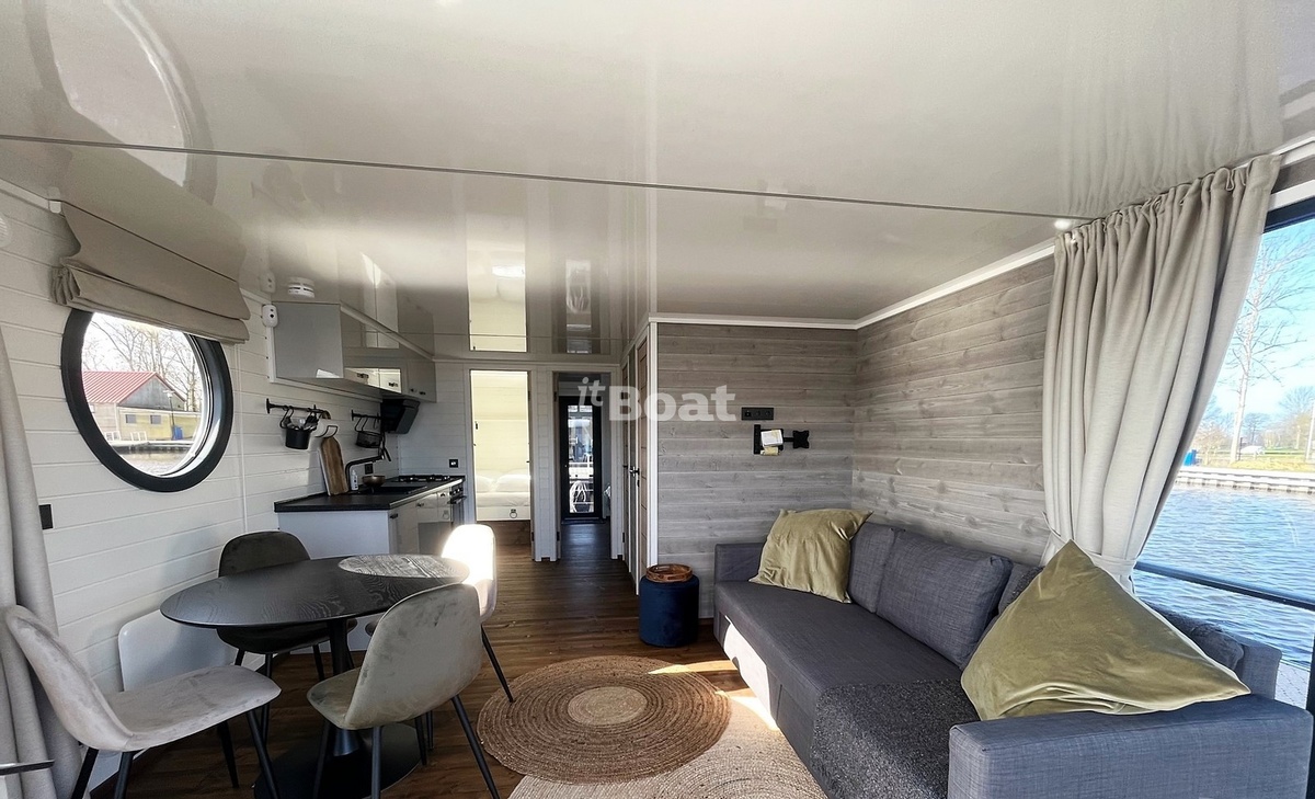 The motor yacht Nordic 40 Eco 36 is produced by the brand Nordic Season Houseboat since 2022. The Nordic 40 Eco 36 is a 11.90 meter houseboat with 2 guest cabins and a draft of 0.50 meters. The yacht has a aluminum hull with a CE certification class (D) and can navigate in protected waters. The base price of a new Nordic 40 Eco 36 is €114.2 thousand.