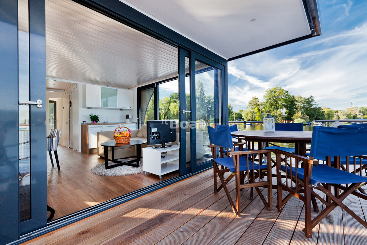 The motor yacht Nautilus Hausboote Vagabund 43 is produced by the brand Nautilus Hausboote since 2022. The Nautilus Hausboote Vagabund 43 is a 14.98 meter houseboat with 3 guest cabins and a draft of 0.60 meters. The yacht has a fiberglass / grp hull with a CE certification class (C) and can navigate along the coastline, on rivers and canals. The base price of a new Nautilus Hausboote Vagabund 43 is not currently published, please contact the itBoat team for pricing details.