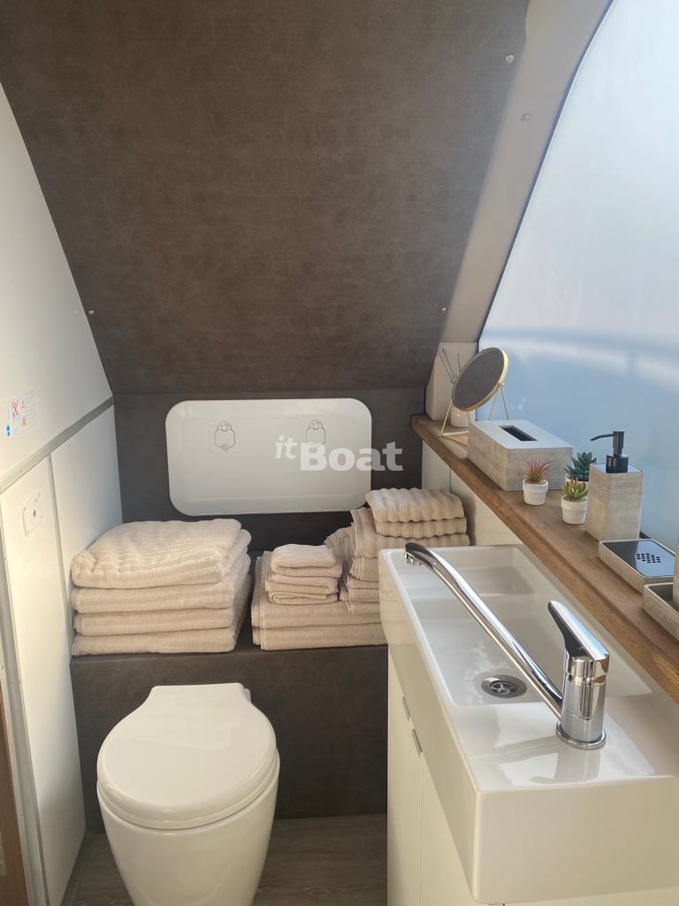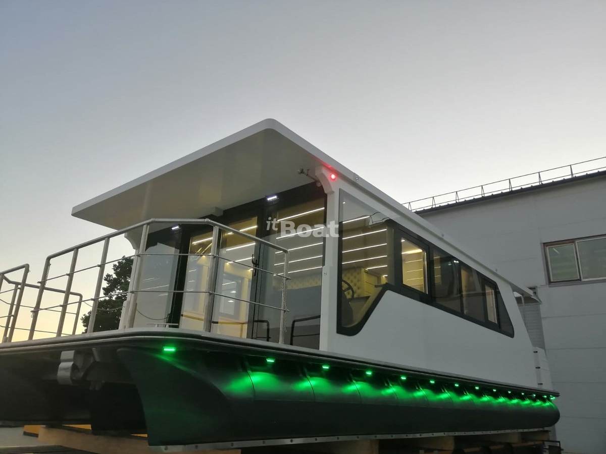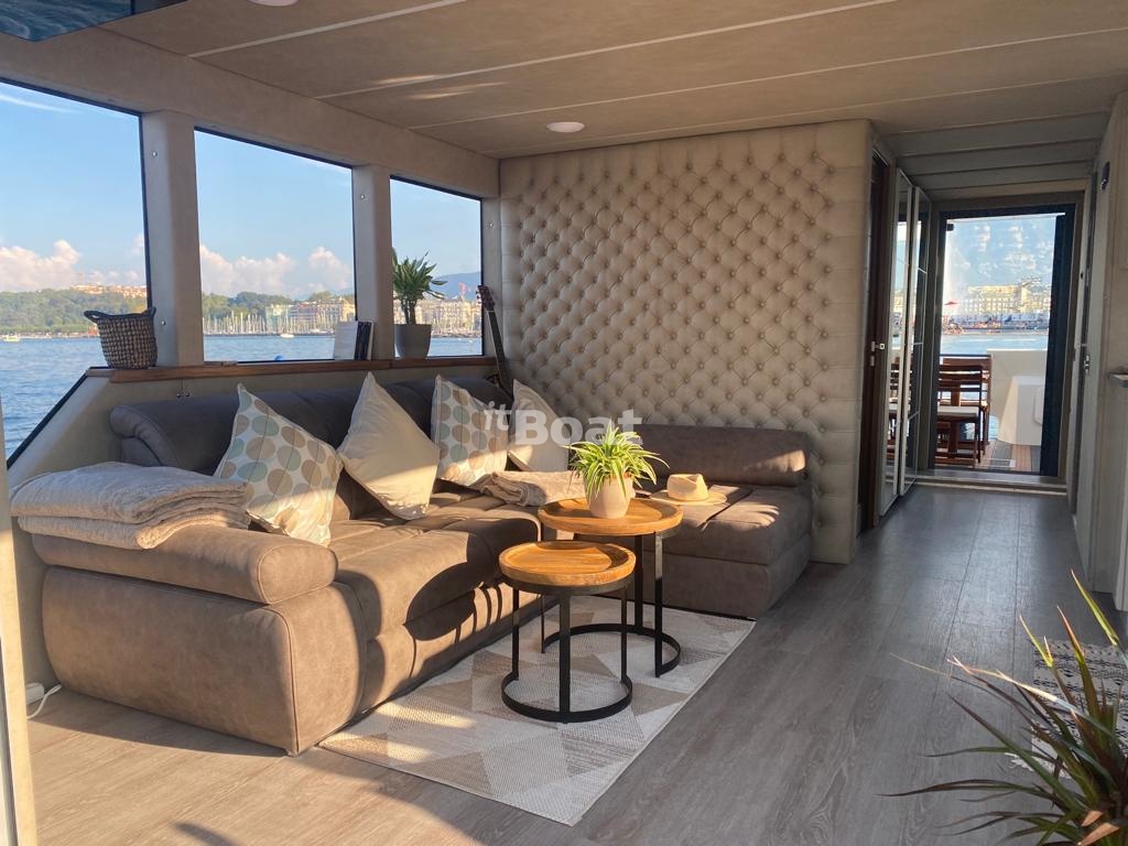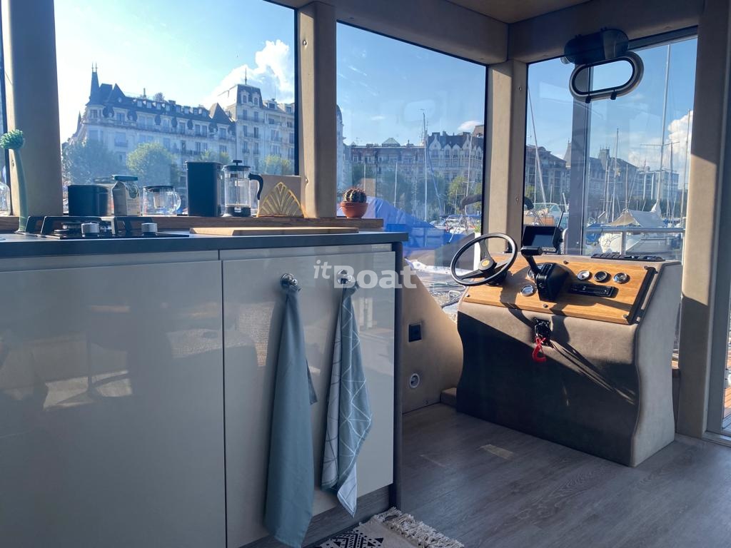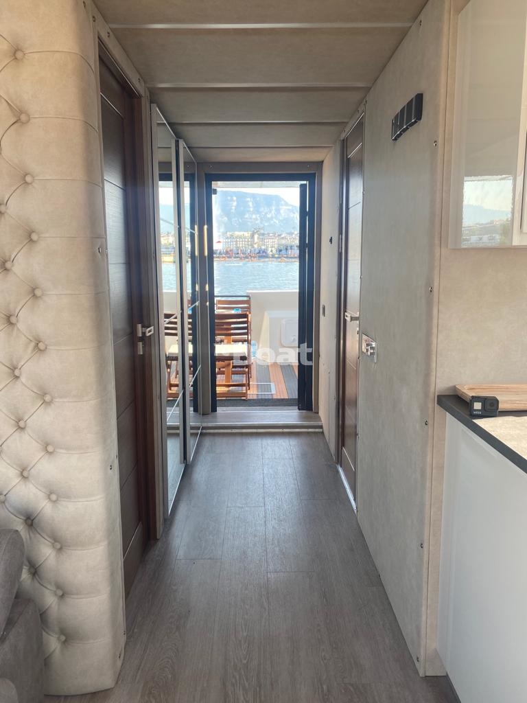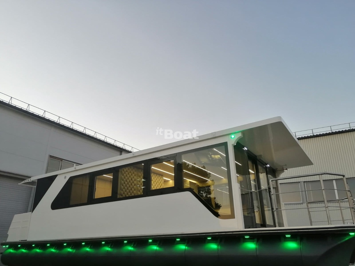 The motor yacht Inter Corpora Aphrodite 115 is produced by the brand Inter Corpora since 2021. The Inter Corpora Aphrodite 115 is a 12.29 meter houseboat with 1 guest cabin and a draft of 0.60 meters. The yacht has a fiberglass / grp hull with a CE certification class (D) and can navigate in protected waters. The base price of a new Inter Corpora Aphrodite 115 is not currently published, please contact the itBoat team for pricing details.