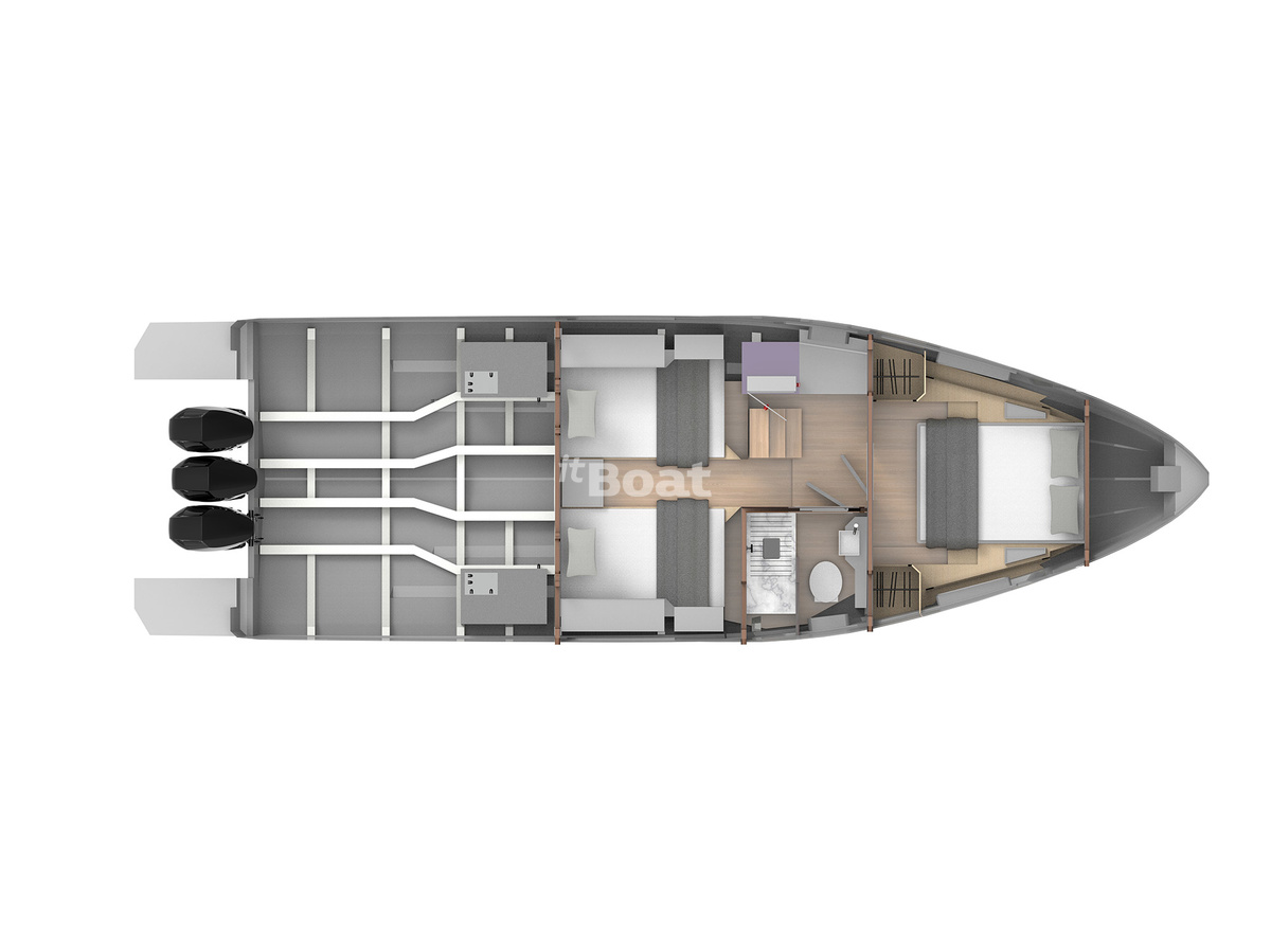 The motor yacht Fabbro F45 Cabrio Outboard is produced by the brand Fabbro Yachts since 2024. The Fabbro F45 Cabrio Outboard is a 13.2 meter open yacht with 2 guest cabins and a draft of 0.7 meters. The yacht has a fiberglass / grp hull with a CE certification class (B) and can navigate no further than 200 miles offshore. The base price of a new Fabbro F45 Cabrio Outboard is not currently published, please contact the itBoat team for pricing details.