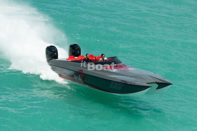 The Hellkats 30 powerboat is produced by the brand Hellkats Powerboats since 2024. The Hellkats 30 is a 9.14 meters speed boat with accommodation for 5 people and a draft of 0.80 meters. The base price of a new Hellkats 30 is not currently published, please contact the itBoat team for pricing details.