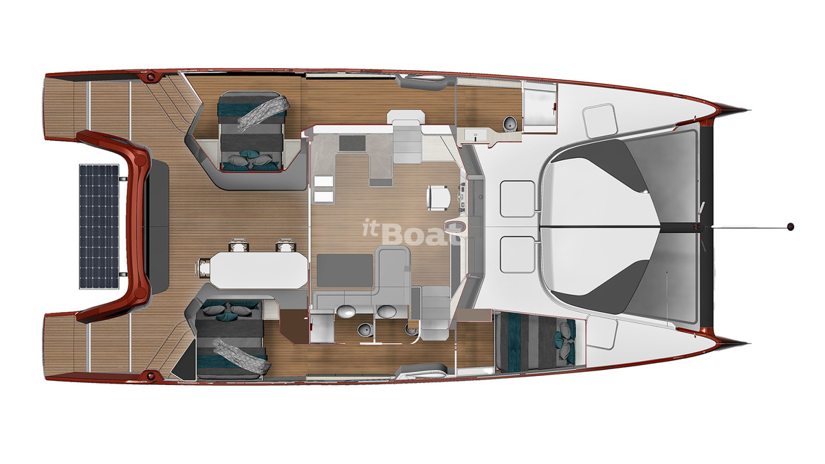 The C-Cat 56 is produced by the brand C-Catamarans since 2025. C-Cat 56 is a 17.00 meters sailing cruising multihull with 3 guest cabins and a draft of 2.95 meters. The yacht has a steel hull with a CE certification class (A) and can navigate in the open ocean. The base price of a new C-Cat 56 is not currently published, please contact the itBoat team for pricing details.