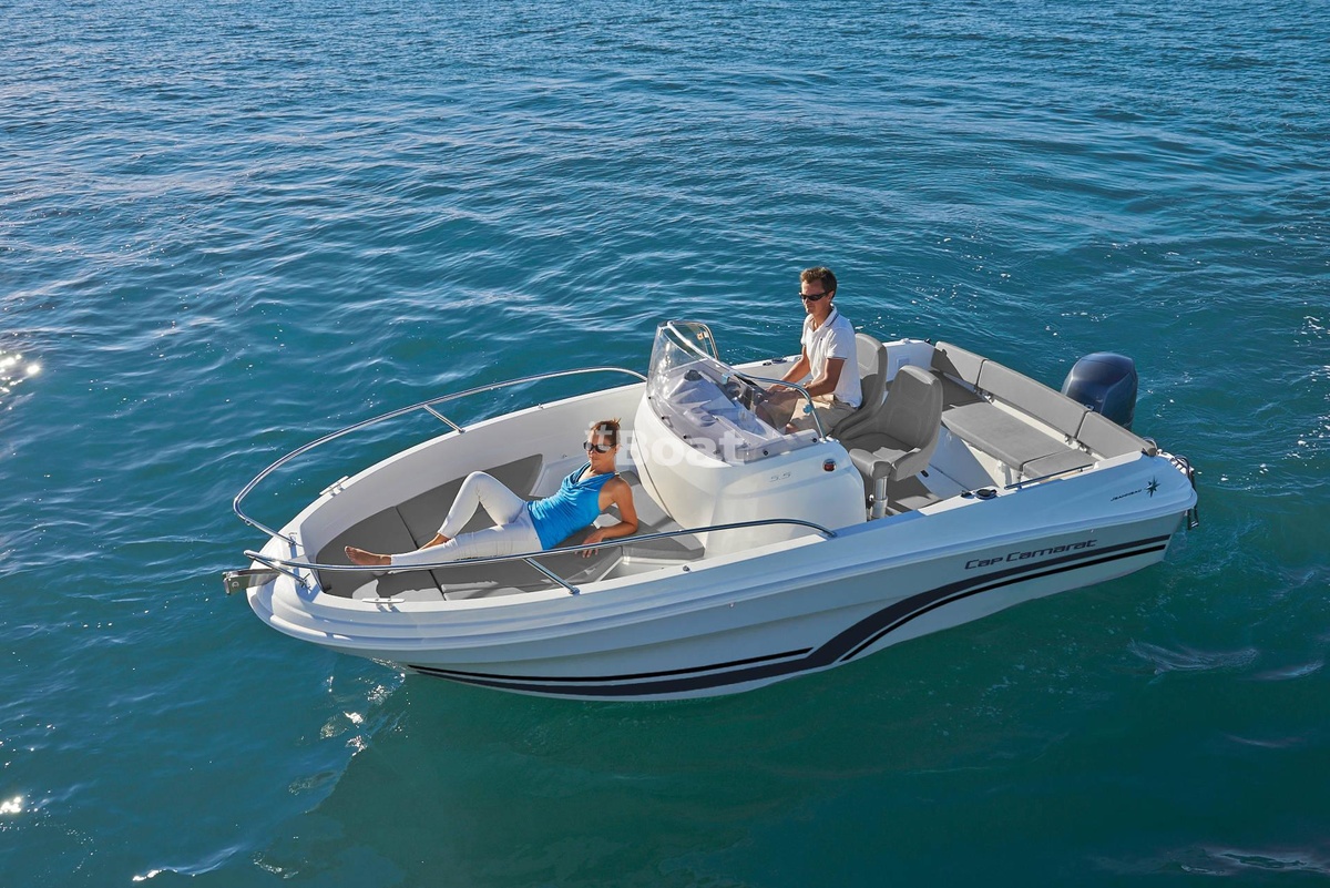 The Jeanneau Cap Camarat 5.5 CC Serie 2 powerboat is produced by the brand Jeanneau since 2013. The Jeanneau Cap Camarat 5.5 CC Serie 2 is a 5.48 meters center console boat with accommodation for 6 people and a draft of 0.45 meters. The boat has a fiberglass / grp hull with a CE certification class (C) and can navigate along the coastline and on rivers and canals. The base price of a new Jeanneau Cap Camarat 5.5 CC Serie 2 is €40.2 thousand.