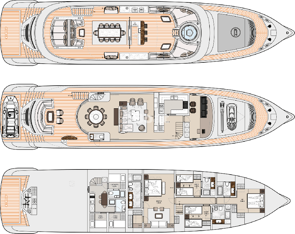 Featuring a hybrid propulsion system, a Hull Vane wing and an exclusive four fin stabilizer system, this yacht is efficient at sailing at great distances. The variable speed generators provide cleaner emissions, lower fuel consumption and more economical operation. The generators drive two compact electric motors that can propel the yacht at a speed of 6 knots in total silence.