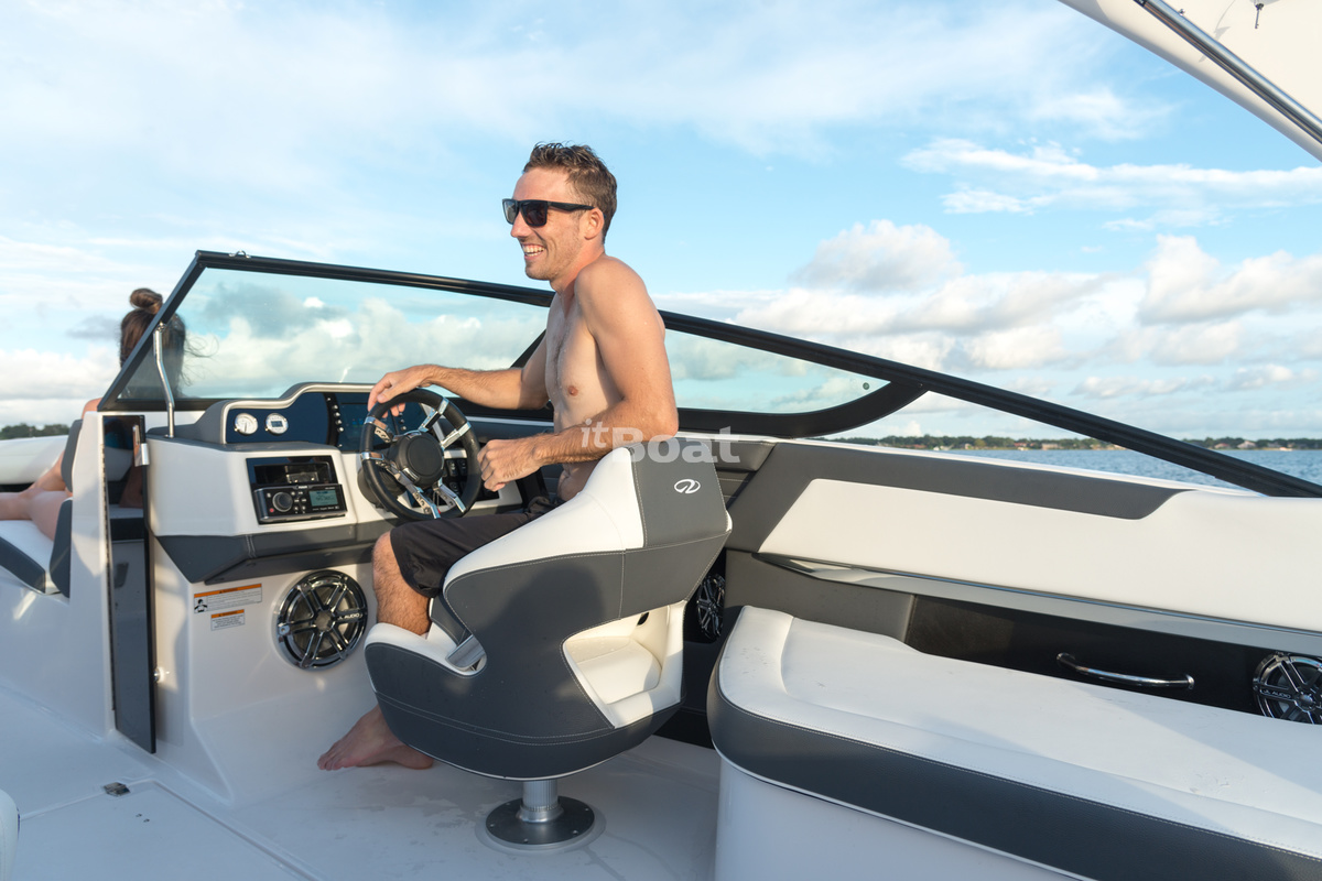 The powerboat Regal 25 RX Surf was produced by the brand Regal from 2017 to 2019. The Regal 25 RX Surf is a 8.00 meters bowrider with accommodation for 11 people and a draft of 0.90 meters. The boat has a fiberglass / grp hull with a CE certification class (C) and can navigate along the coastline and on rivers and canals. The Regal 25 RX Surf is no longer in production and the price of used models varies. Please contact the itBoat team for more information on used boats and pricing details.