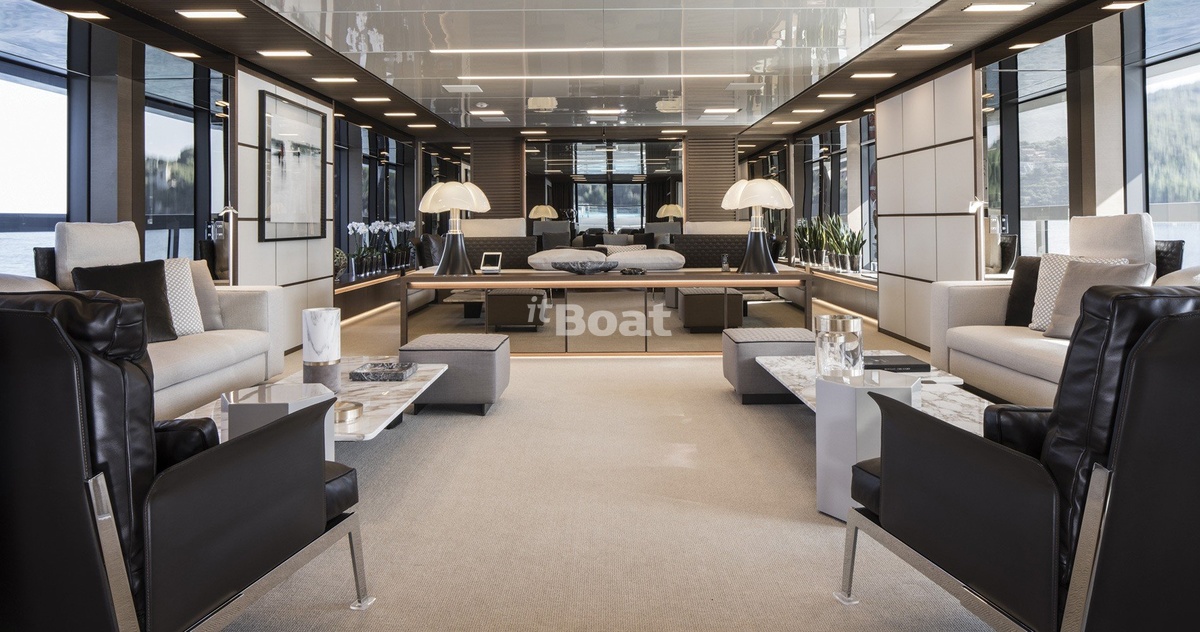 The beach club on the lower deck came out very spacious. Also impressive is the solution with a flooded «»tender garage, which allows the lifting mechanisms to keep their appearance unobstructed.
