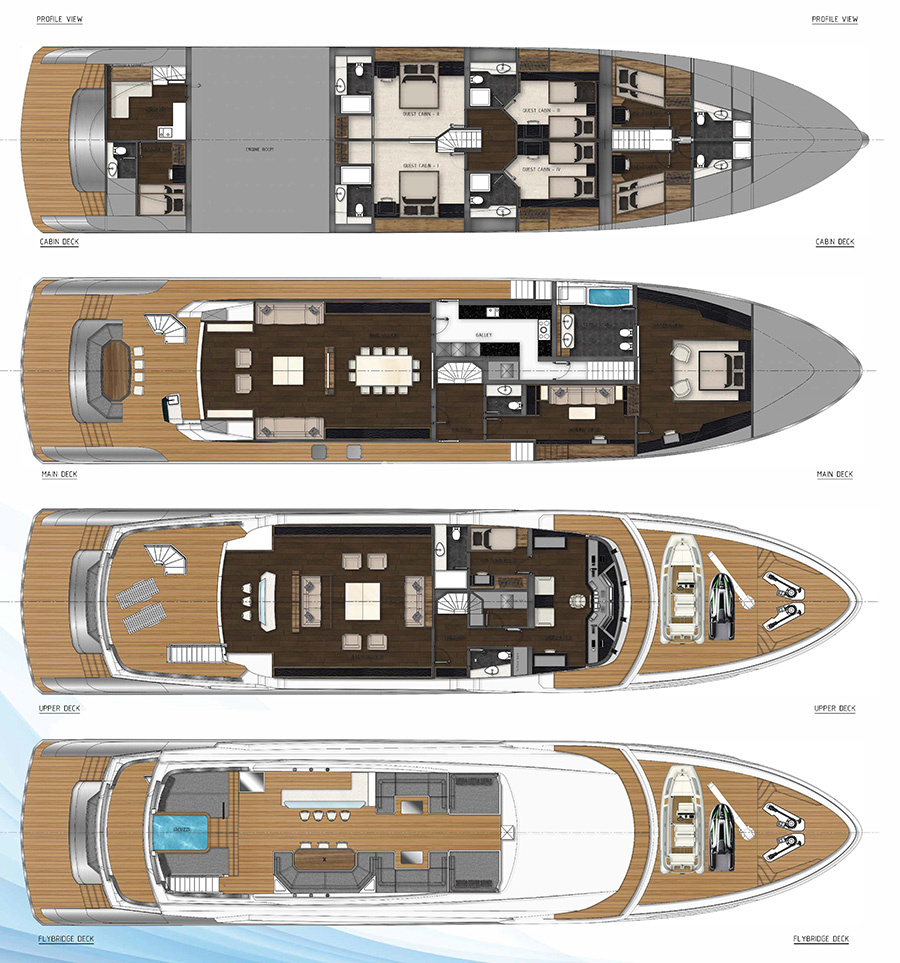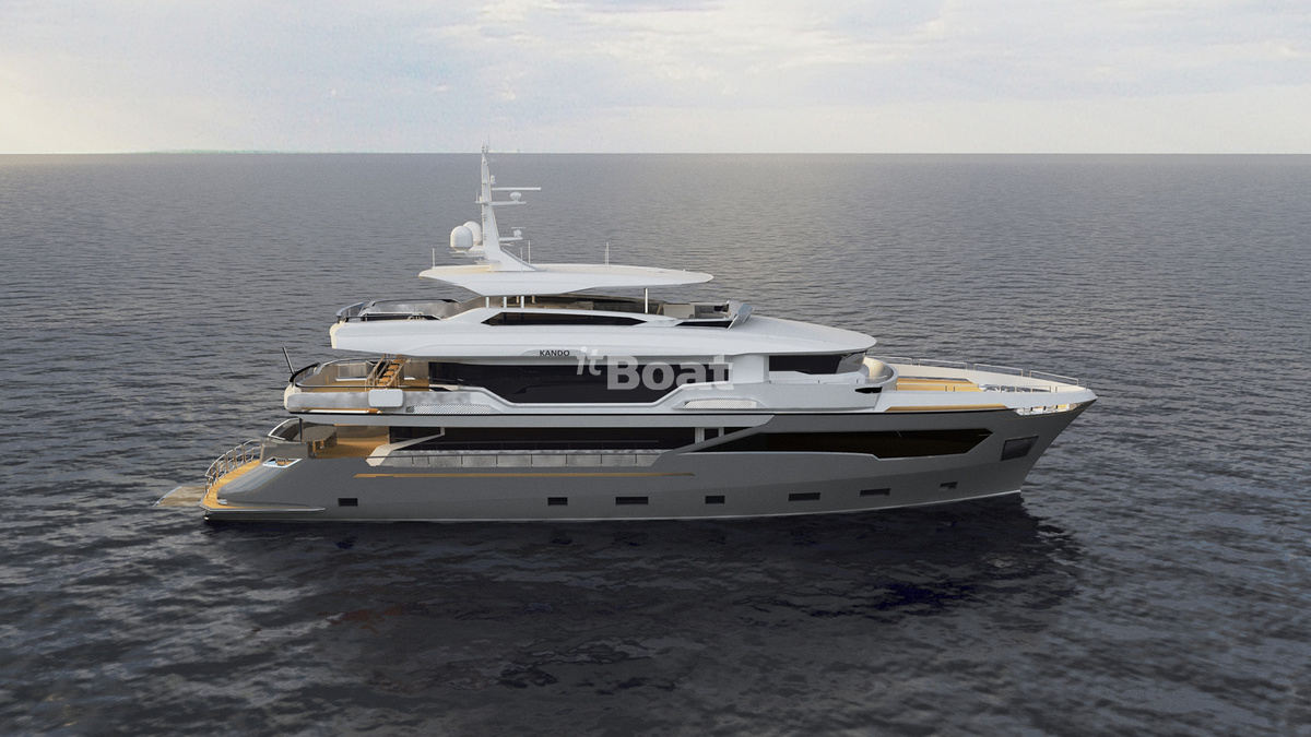 The motor yacht AvA Yachts Kando120 is produced by the brand AvA Yachts since 2018. The AvA Yachts Kando120 is a 37.10 meter motor yacht with a steel hull with 6 guest cabins and a draft of 2.40 meters which can reach speeds of up to 14 knots. The yacht has a steel hull with a CE certification class (A) and can navigate the open ocean. The base price of a new AvA Yachts Kando120 is not currently published, please contact the itBoat team for pricing details.