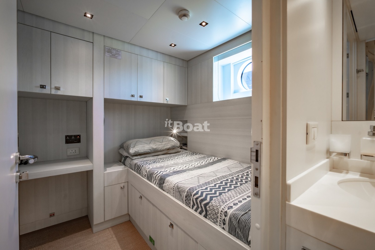 The motor yacht Aventura 10 was produced by the brand Aventura Catamarans from 2019 to 2022. The Aventura 10 is a 10.88 meter cruising power catamaran with 3 guest cabins and a draft of 0.8 meters which can reach speeds of up to 22 knots. The yacht has a fiberglass / grp hull with a CE certification class (B) and can navigate no further than 200 miles offshore. The Aventura 10 is no longer in production and the price of used models varies. Please contact the itBoat team for more information on used yachts and pricing details.