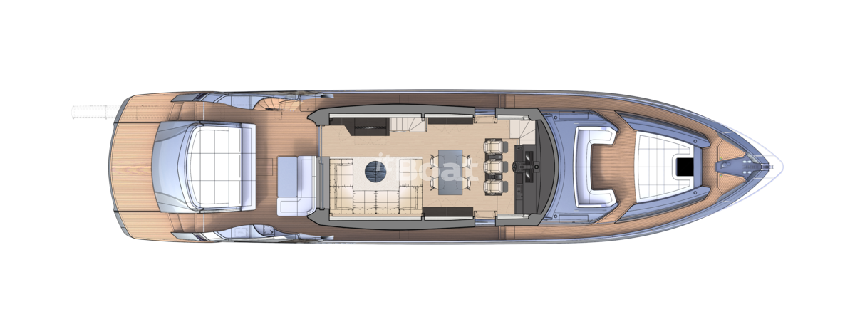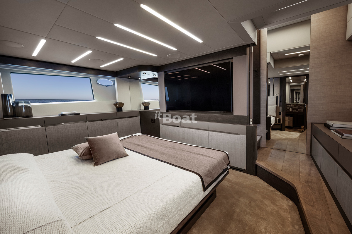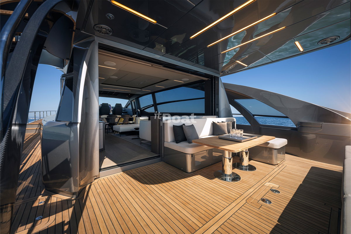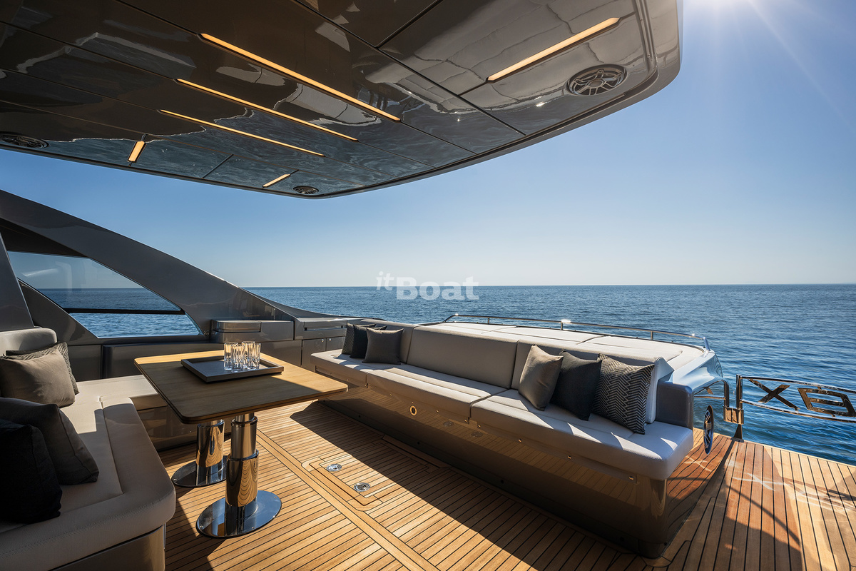 The boat represents the evolution of the Pershing 82 while standing out with even smoother and more sporty lines than the predecessor. Like the previous models, the yacht owes its bright design to the famous Fulvio De Simoni studio. The yacht features large windows and plenty of open space. Interiors in light tones read luxury with a touch of pragmatism.