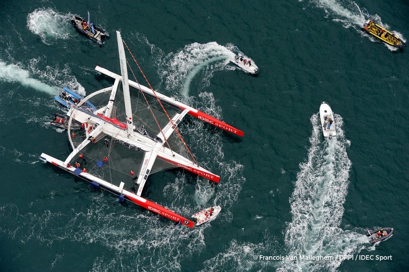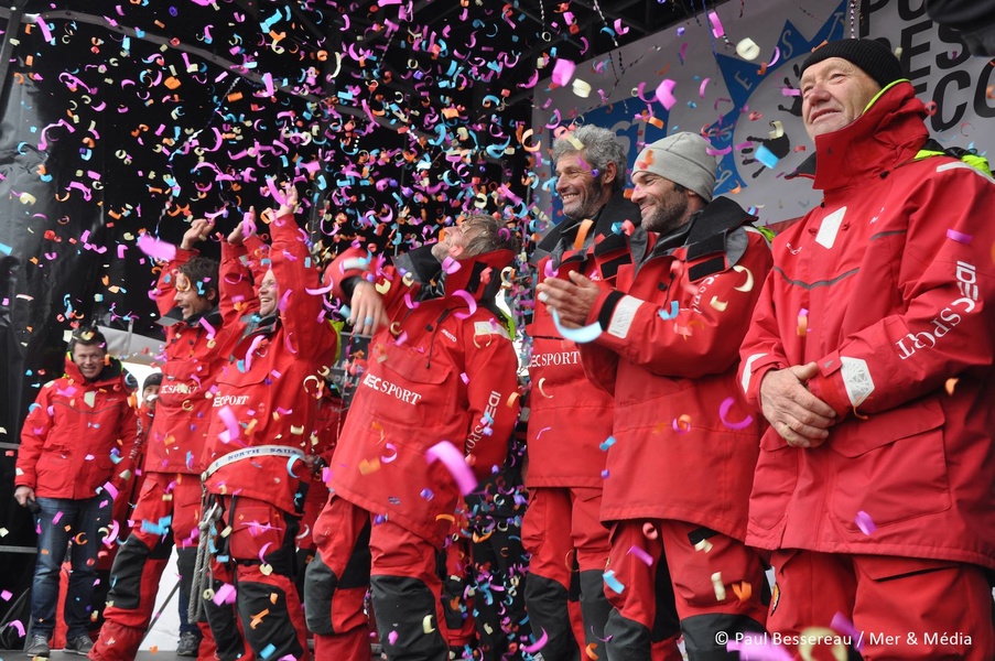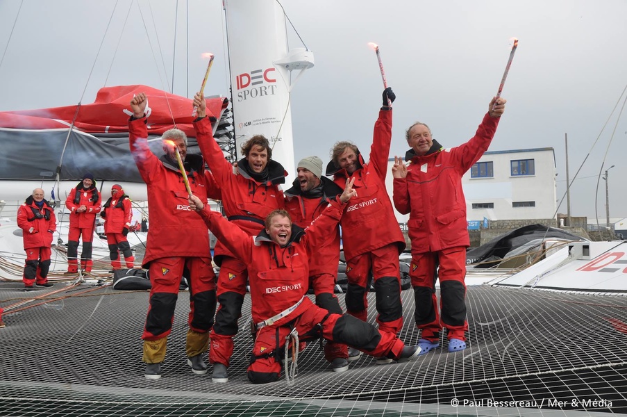 Francis Joyon, Clément Surter, Alex Pelle, Bernard Stamm, Gwenol Gaina and Sébastien Odigan managed to circle the world in 4 hours, 14 hours, 12 minutes and 23 seconds faster than the previous Jules Verne Trophy winner, Loïc Peyroun on Banque Populaire V.