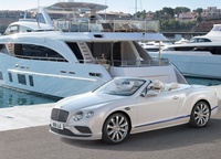 The designers of Princess Yachts and atelier Mulliner have taken an ordinary Bentley Continental GT Convertible and transformed it into a 'Princess on the Road'. The limited edition car is named Galene - after the Greek goddess of the calm seas. The design of this Bentley is inspired by Princess M-class superyachts. The blue band down the underside resembles the waterline, while the tinted headlamps and taillights echo the Princess yacht's tinted glass. For the interior, Mulliner has created a completely new walnut veneer material that mimics teak.