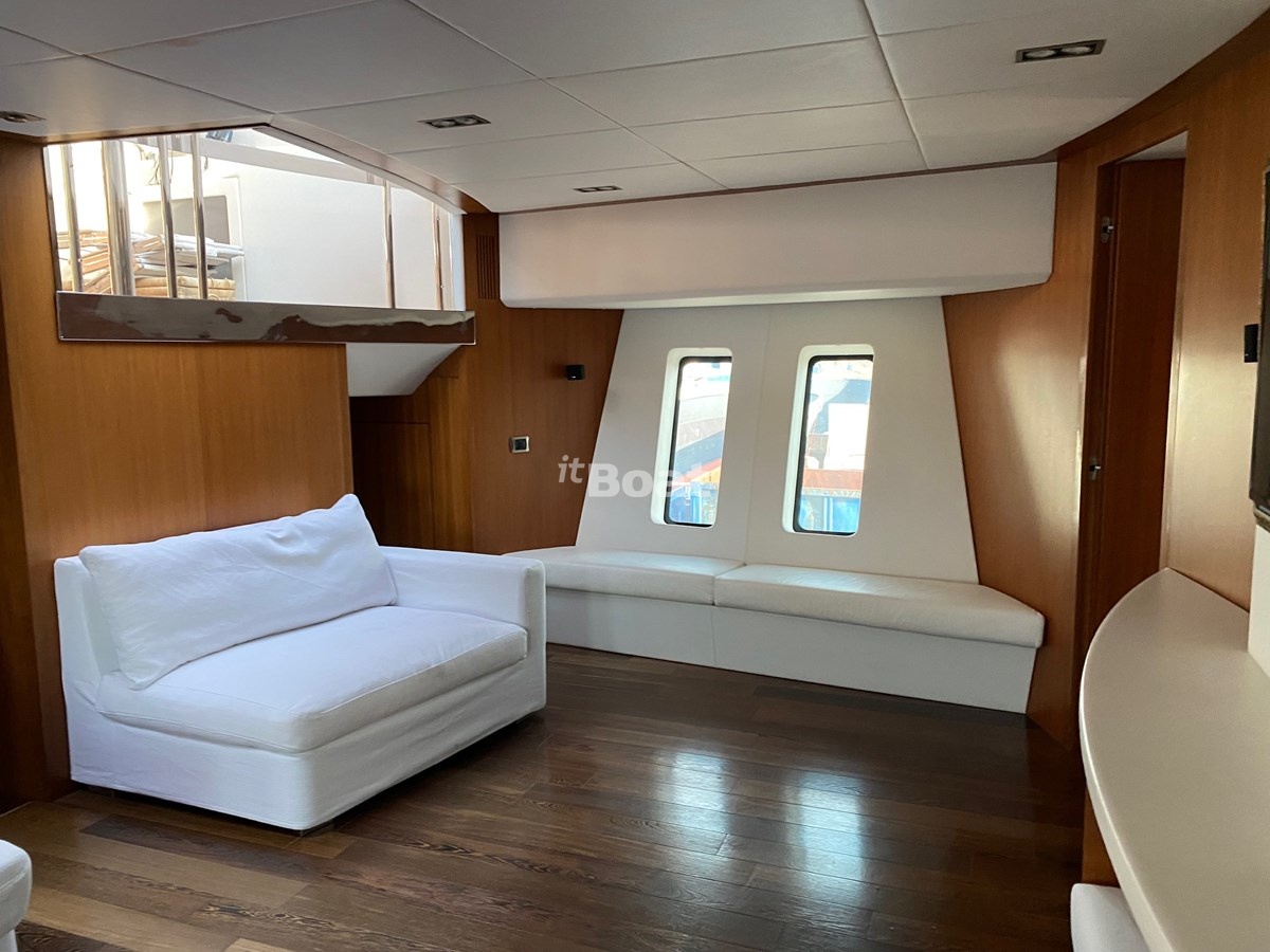 Motor yacht Tecnomar Ginevra 35 length metres The shipyard Tecnomar rolled off the slipway 2008 in year. The yacht can accommodate up to 8 guests and is maintained and operated by 5 crew members. The development of naval architecture was handled by Roberto Zappelli. Studio Luca Dini was responsible for its exterior and interior design.