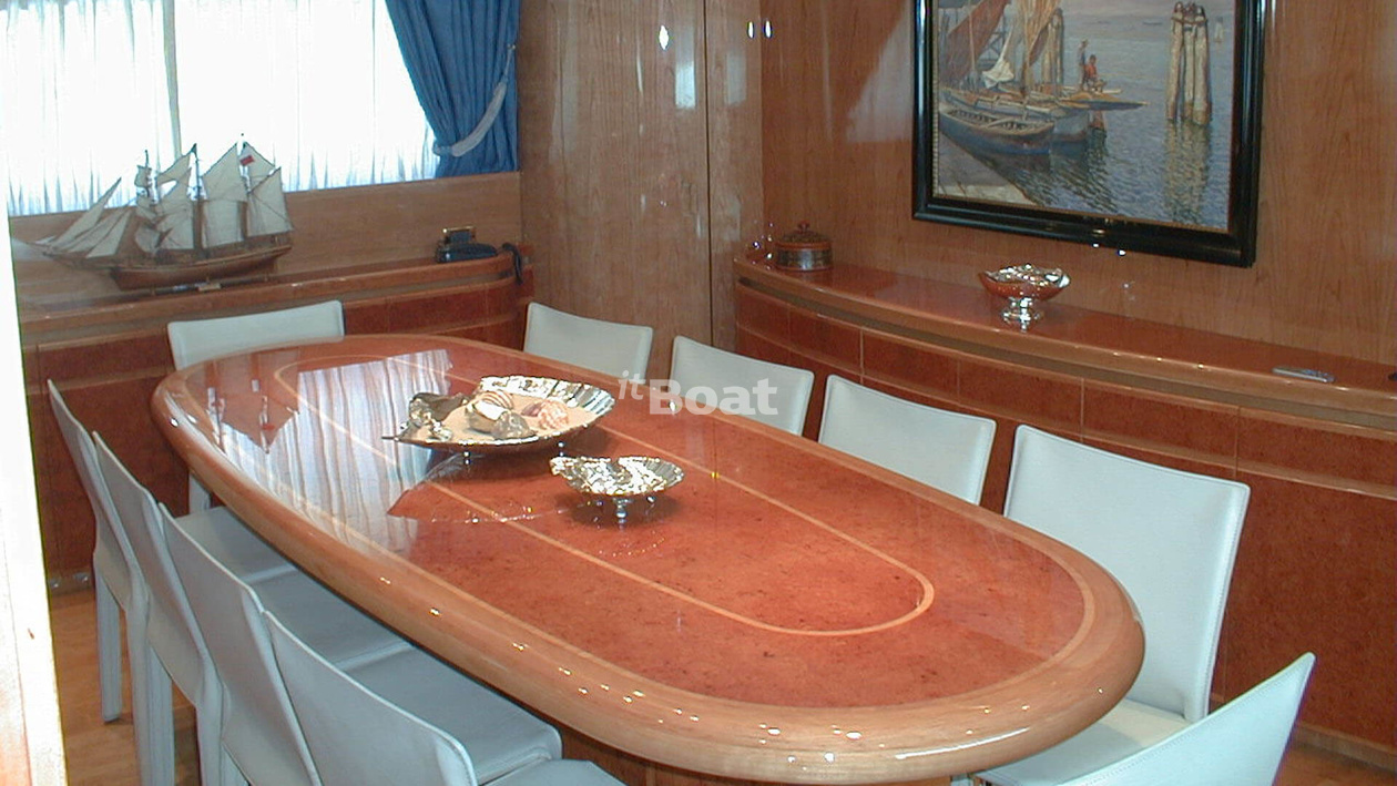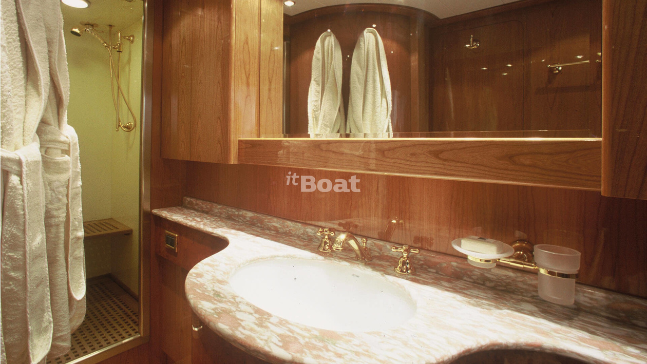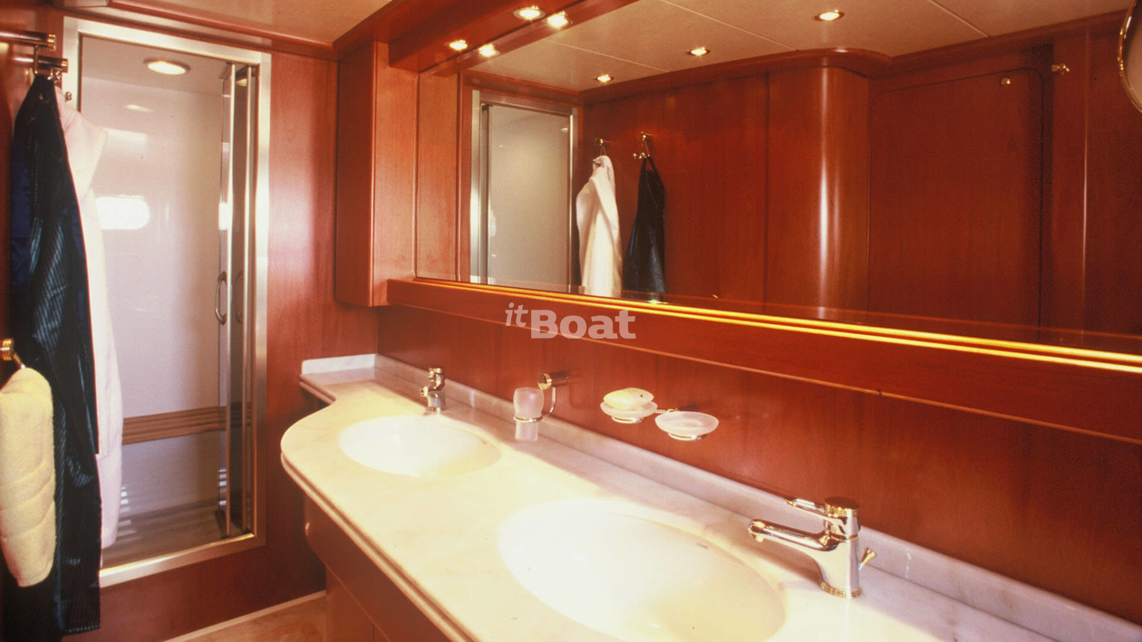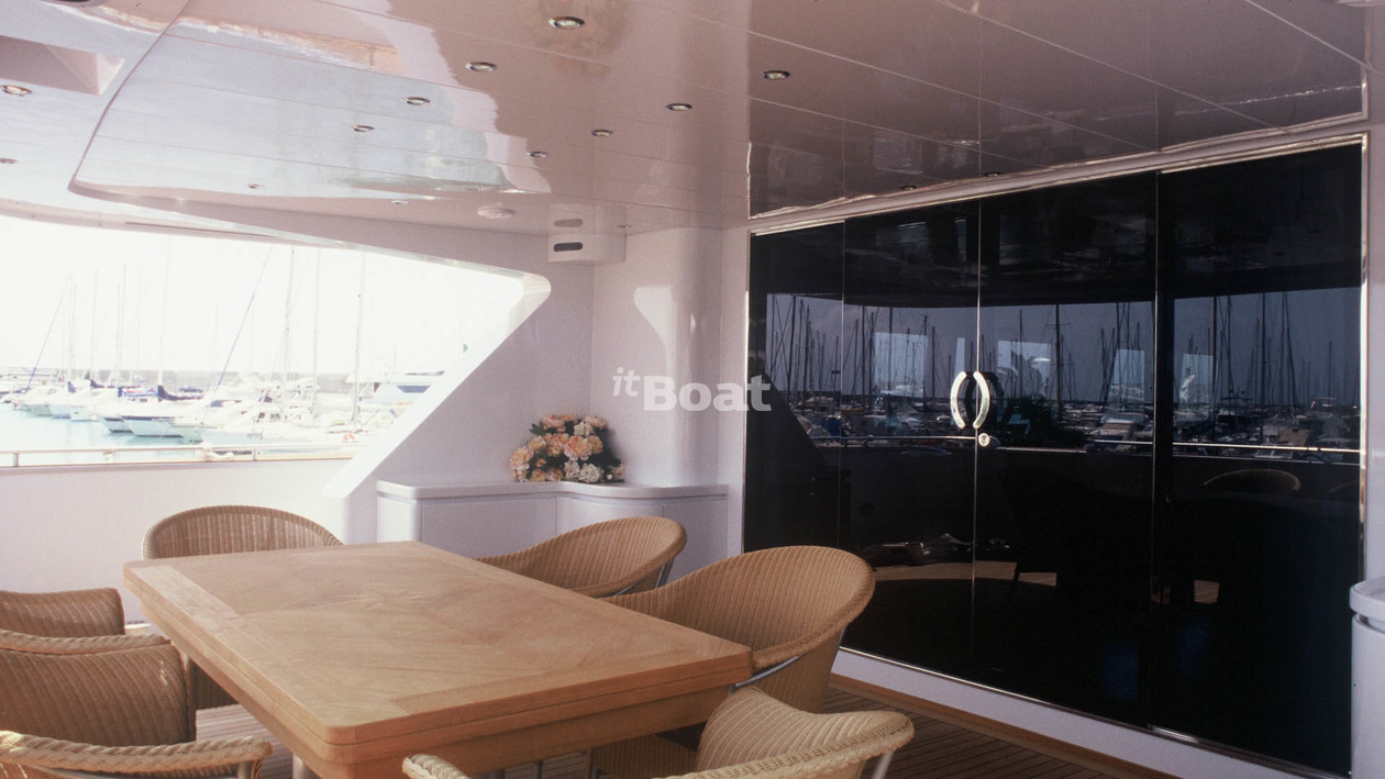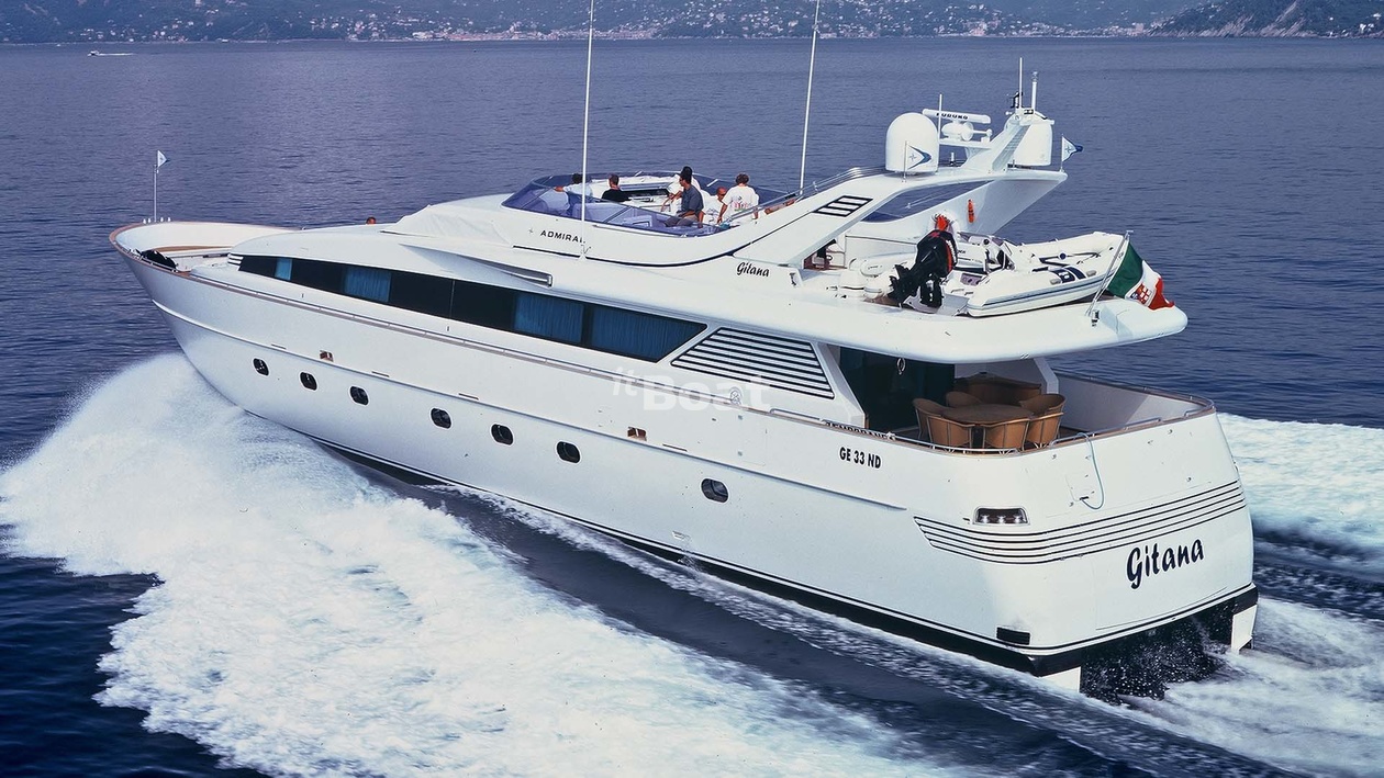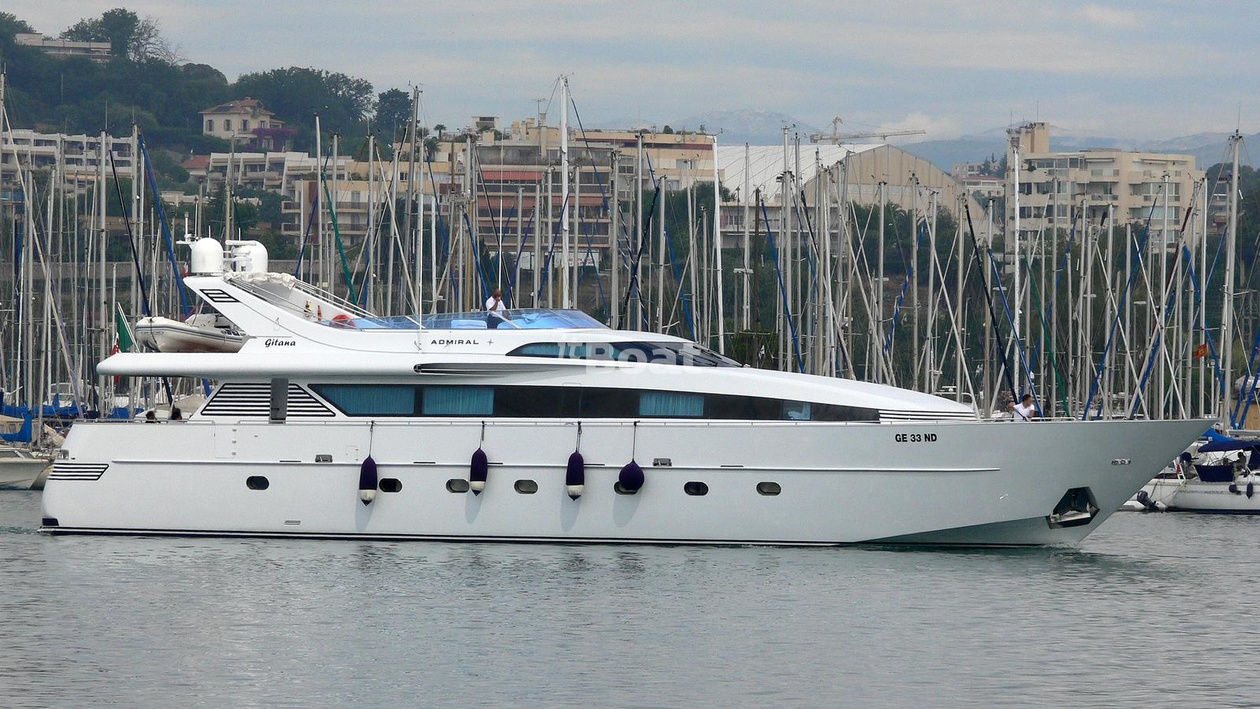 30.9-meter motor yacht Admiral Gitan was built in 2000 at the Admiral shipyard. The yacht can accommodate up to 10 guests and is maintained and operated by 6 crew members. The exterior and interior design was developed by the shipyard's in-house design department.