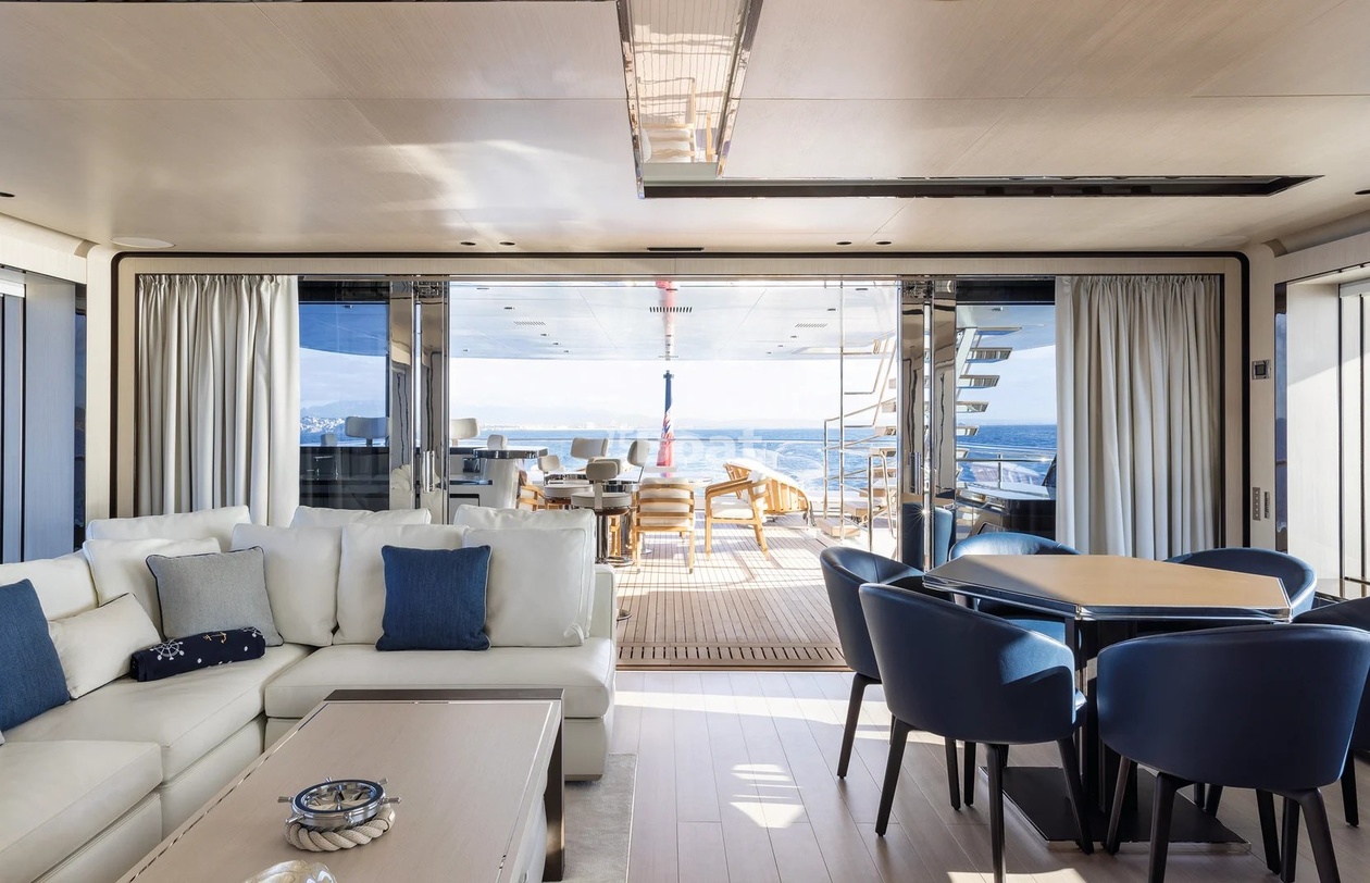 Motor yacht Rossinavi Piacere 50 length metres The shipyard Rossinavi rolled off the slipway 2021 in year. The yacht can accommodate up to 10 guests and is maintained and operated by 11 crew members. The interior designer was Team for Design. The in-house design division of the shipyard was responsible for her appearance.