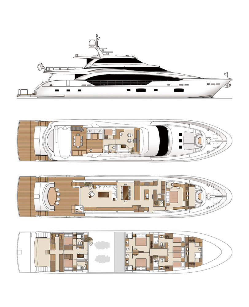 Motor yacht Horizon Miss Michelle 38 length metres The shipyard Horizon rolled off the slipway 2024 in year. The yacht can accommodate up to 10 guests and is maintained and operated by 5 crew members. The shipyard itself was responsible for her exterior and interior design.