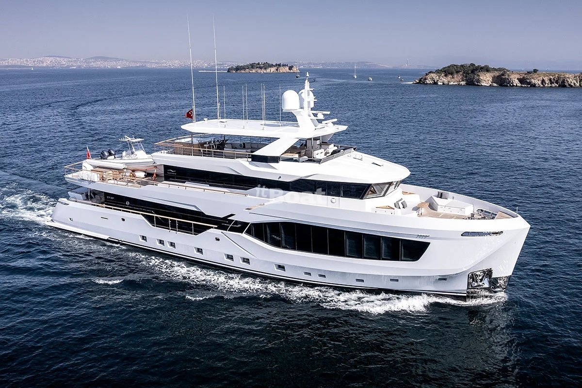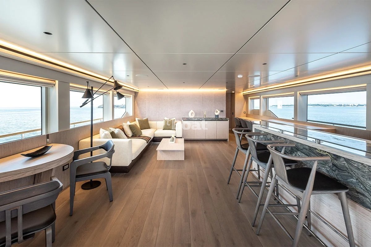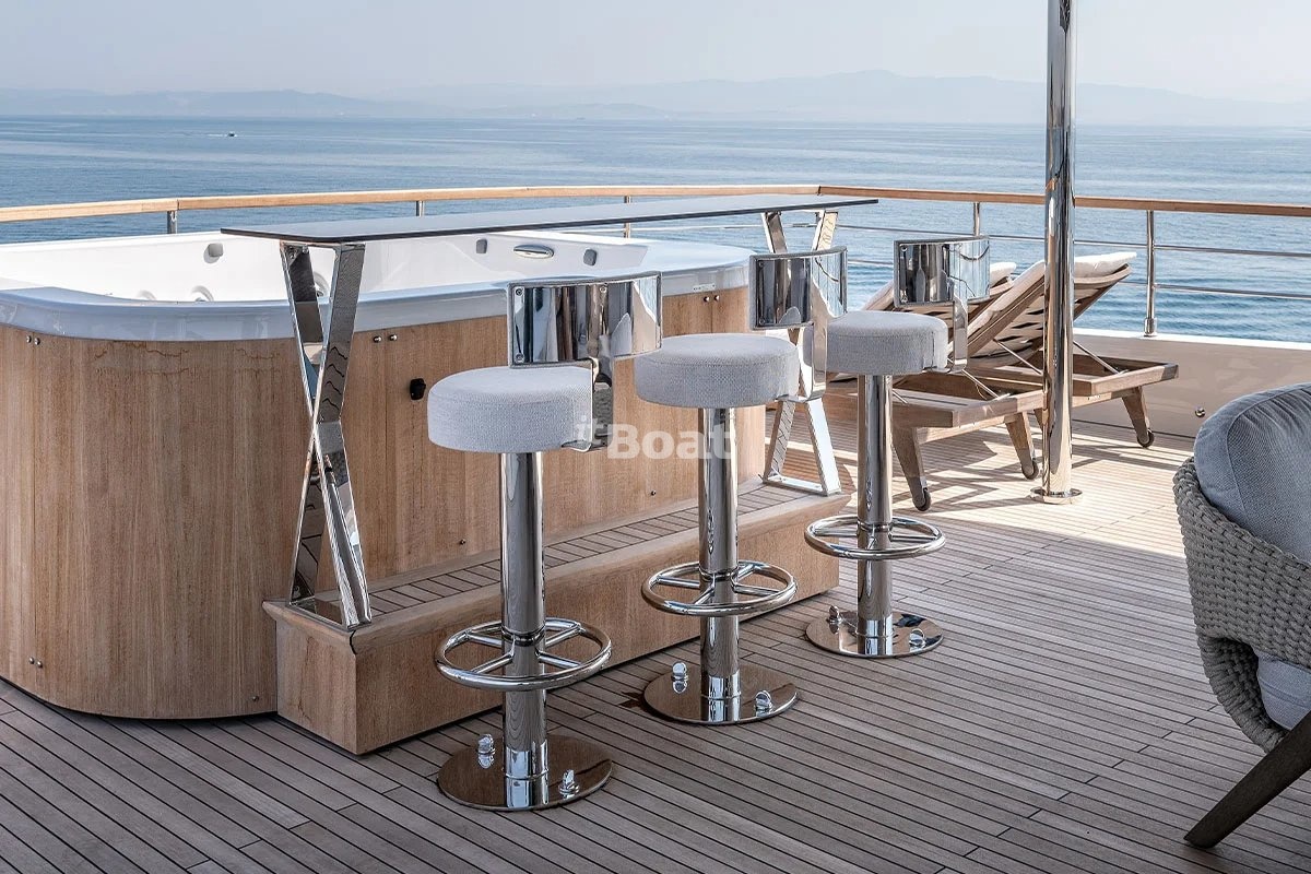 Motor yacht Numarine Eau La La 37.1 length metres The shipyard Numarine rolled off the slipway 2023 in year. The yacht can accommodate up to 10 guests and is maintained and operated by 7 crew members. The shipyard itself was responsible for her exterior and interior design.