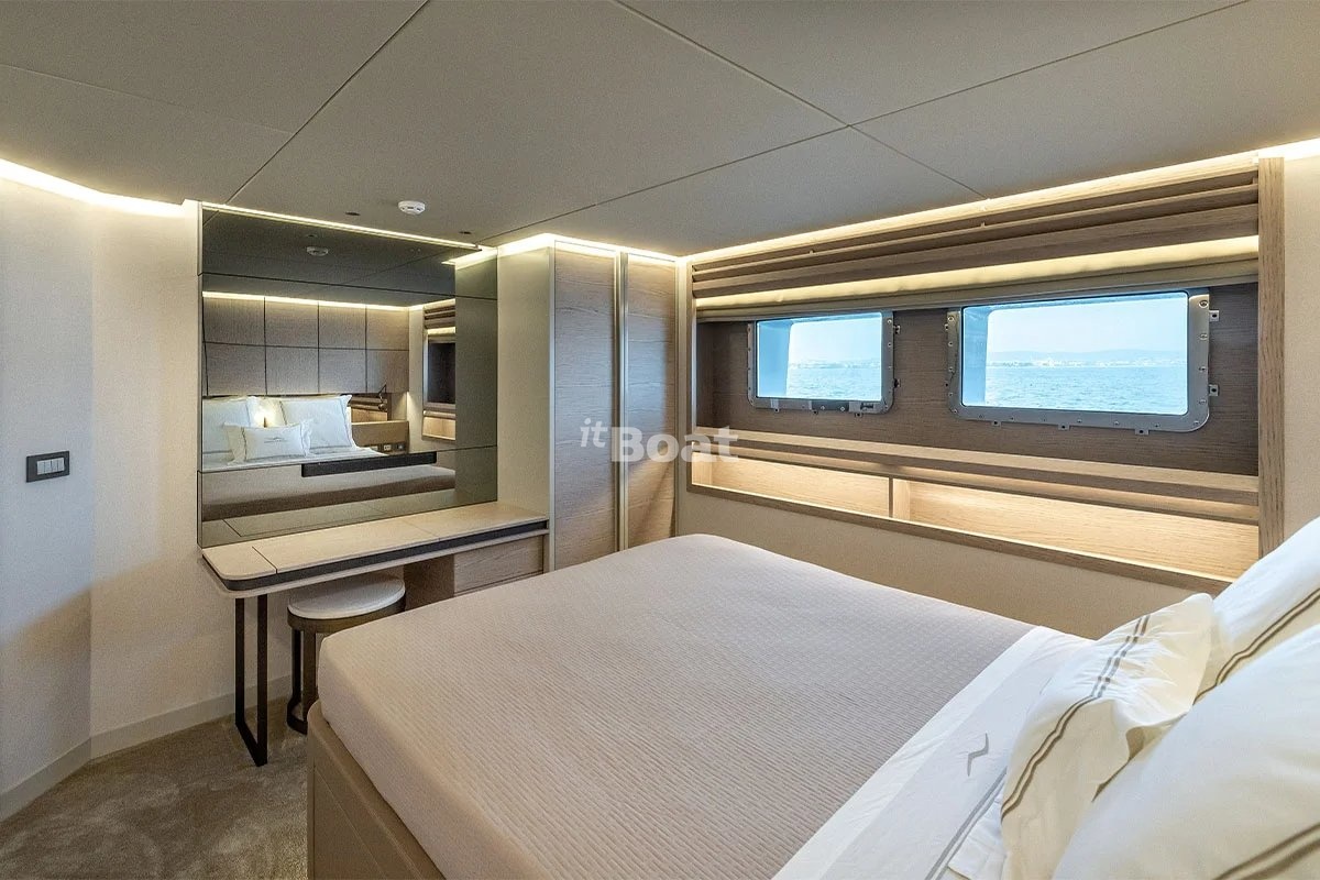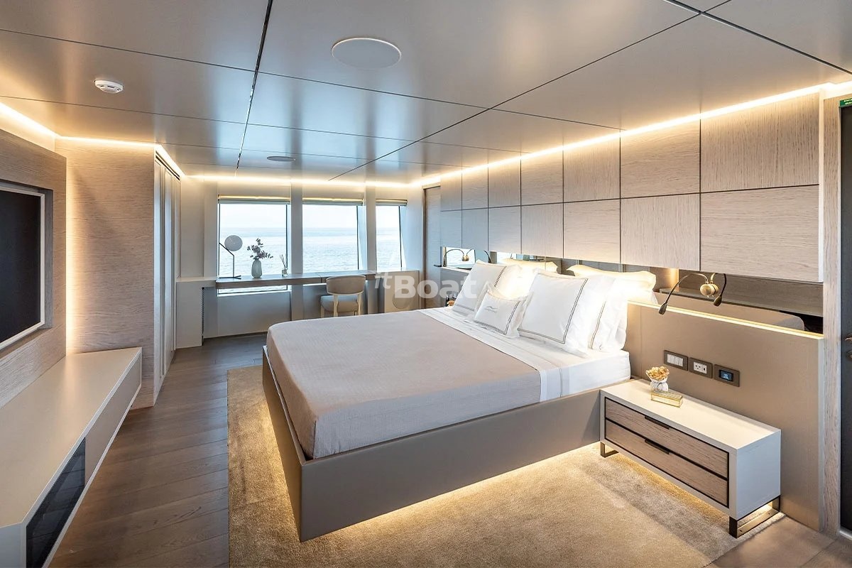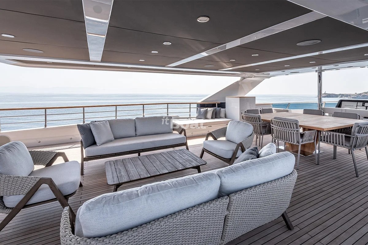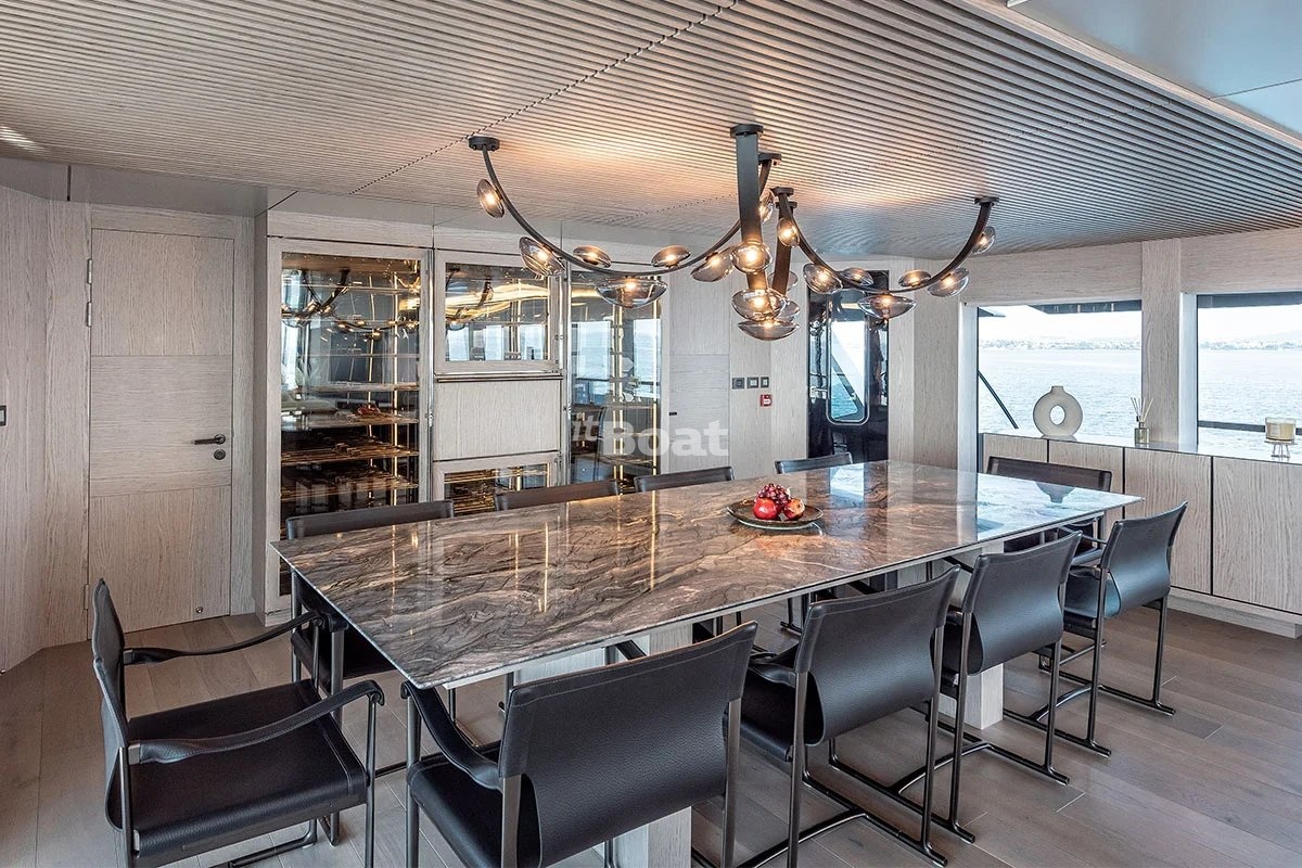 Motor yacht Numarine Eau La La 37.1 length metres The shipyard Numarine rolled off the slipway 2023 in year. The yacht can accommodate up to 10 guests and is maintained and operated by 7 crew members. The shipyard itself was responsible for her exterior and interior design.