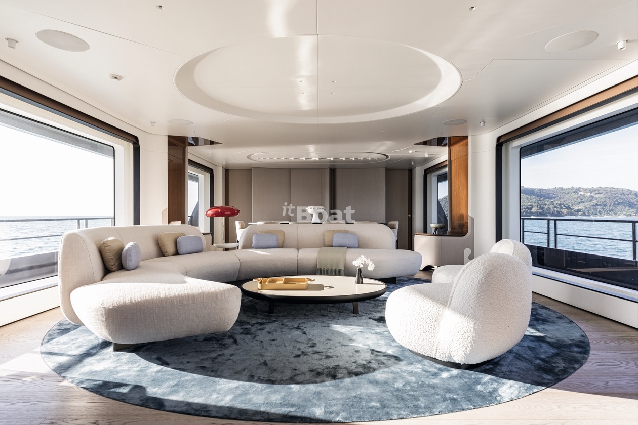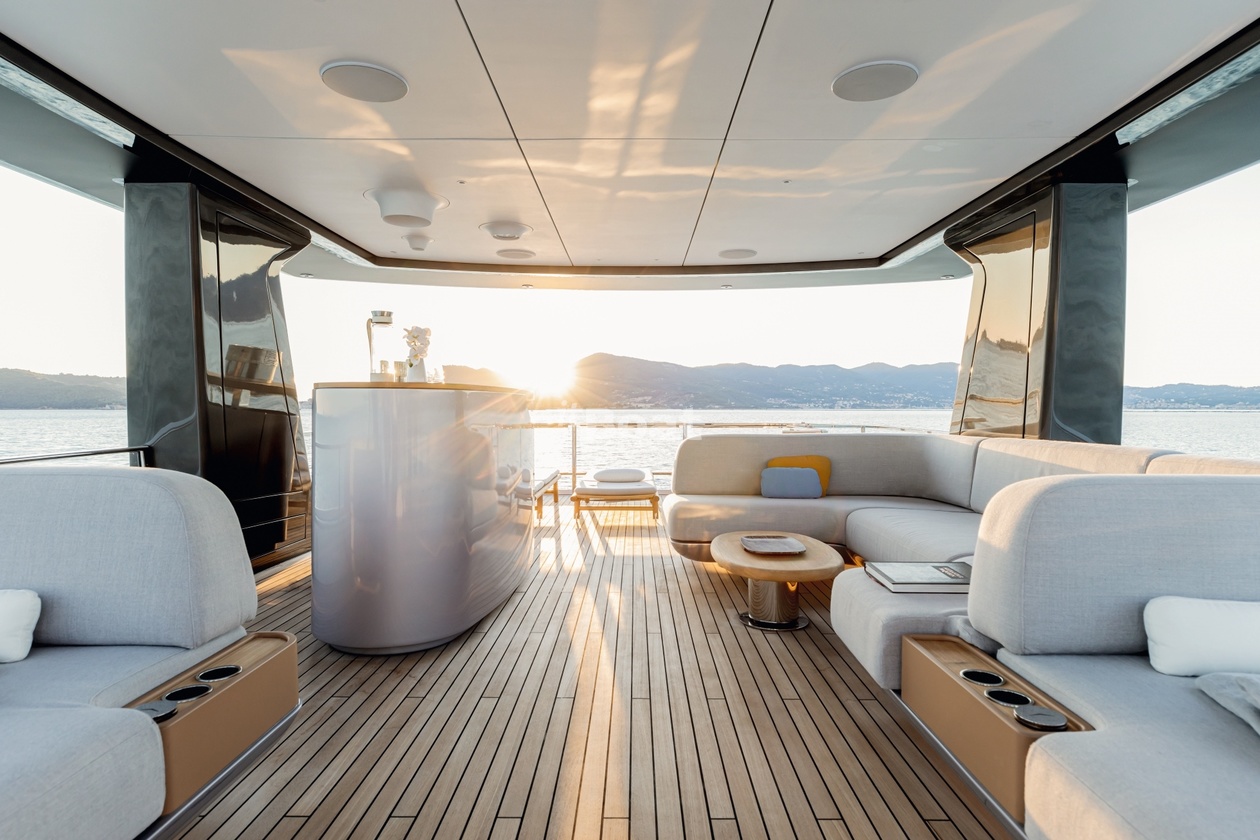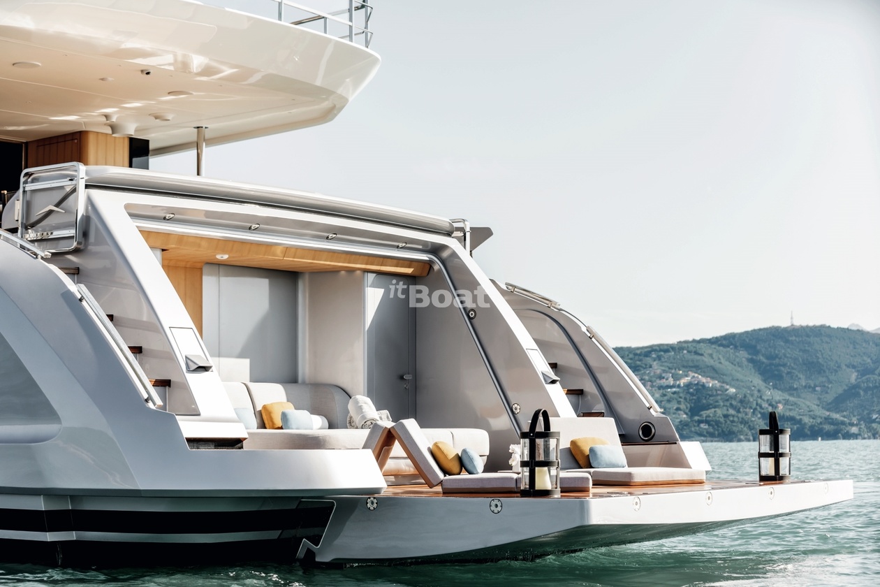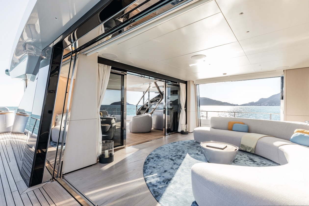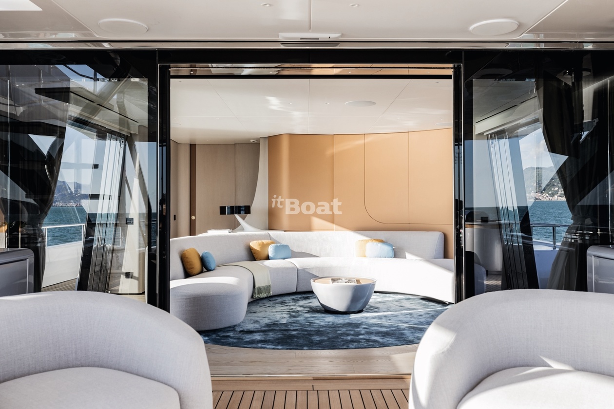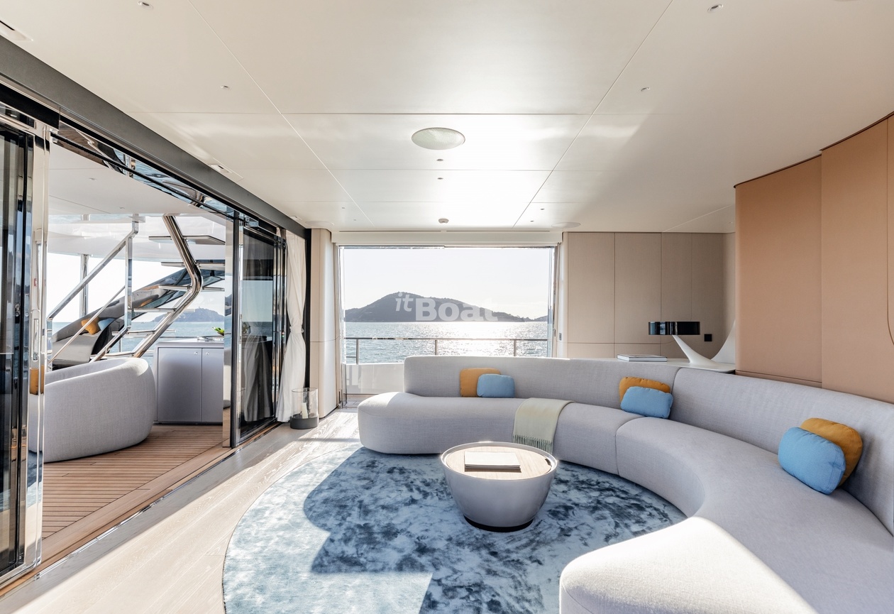 36-meter motor yacht Azimut Yachts Luz de Mar was built in 2023 at the Azimut Yachts shipyard. The yacht can accommodate up to 10 guests and is maintained and operated by 8 crew members. The exterior design is by Alberto Mancini. The interiors are created Salvagni Architetti.