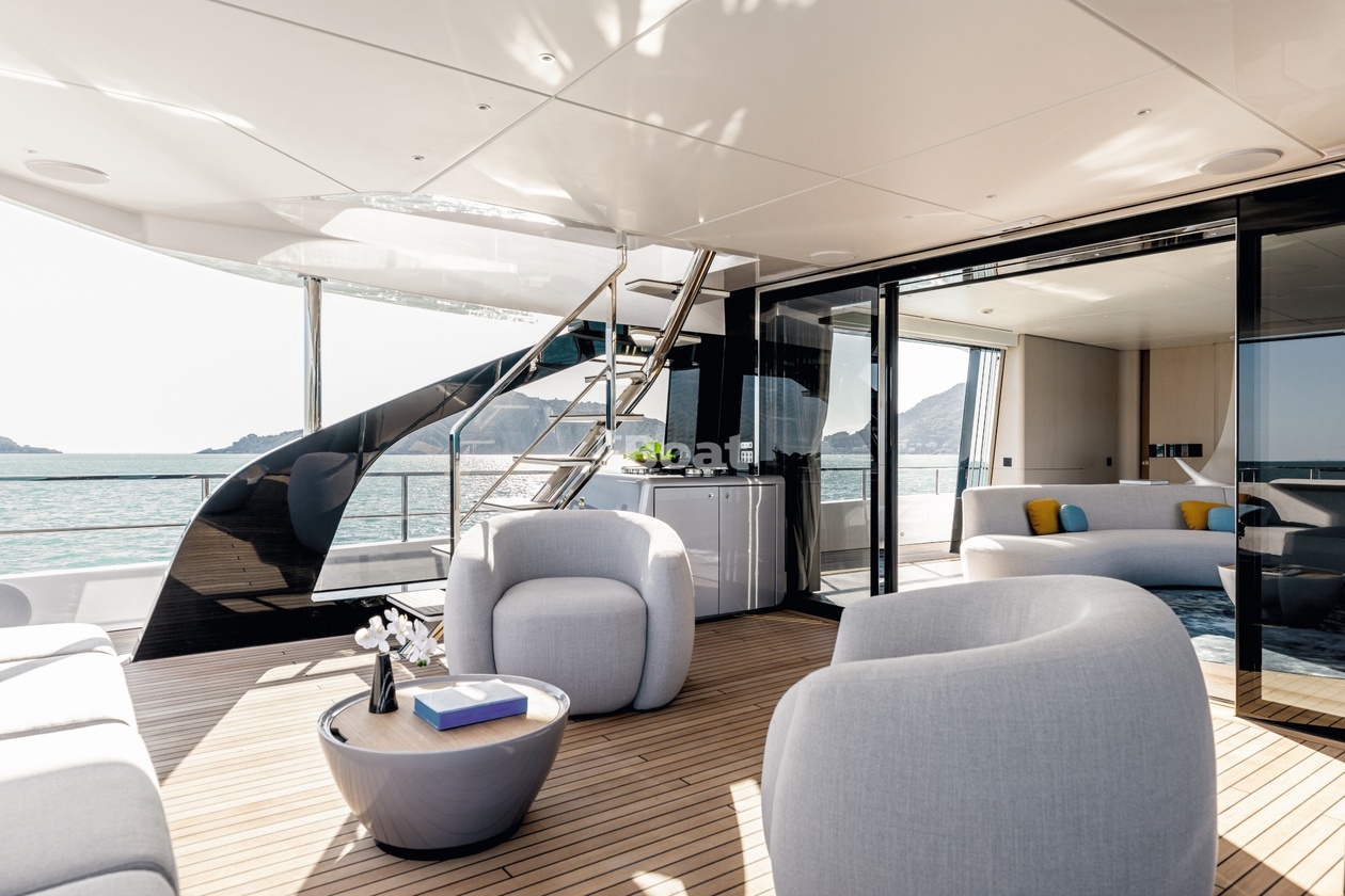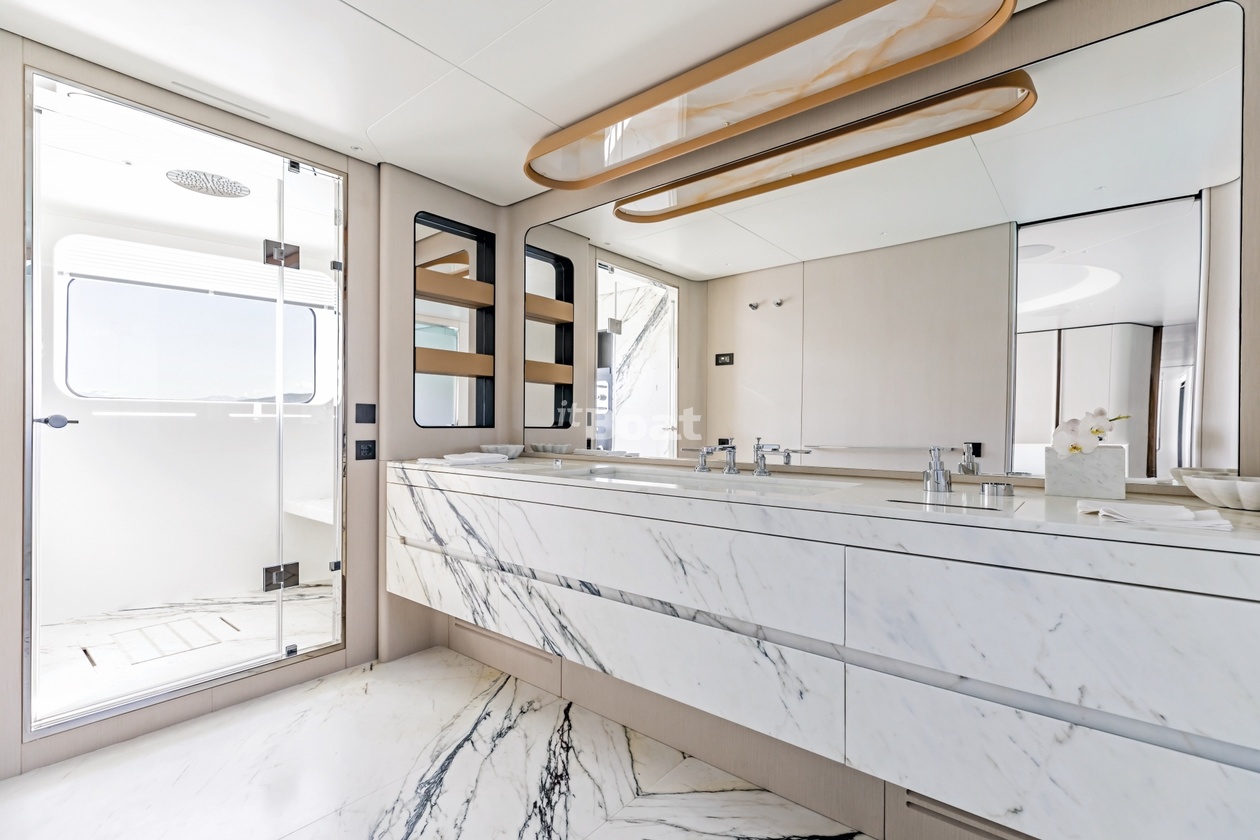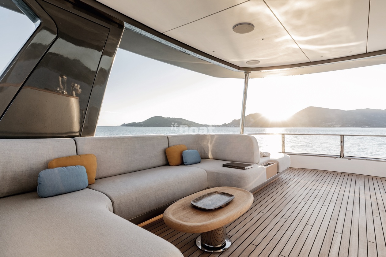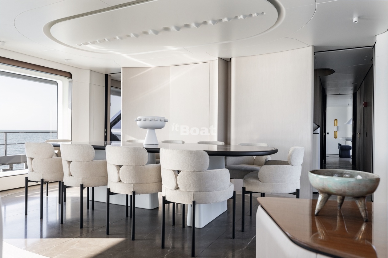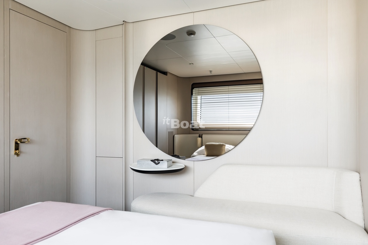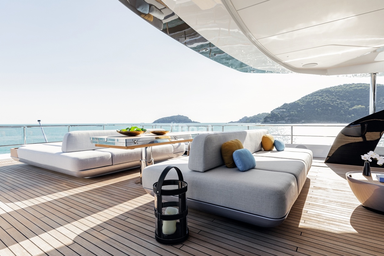 36-meter motor yacht Azimut Yachts Luz de Mar was built in 2023 at the Azimut Yachts shipyard. The yacht can accommodate up to 10 guests and is maintained and operated by 8 crew members. The exterior design is by Alberto Mancini. The interiors are created Salvagni Architetti.