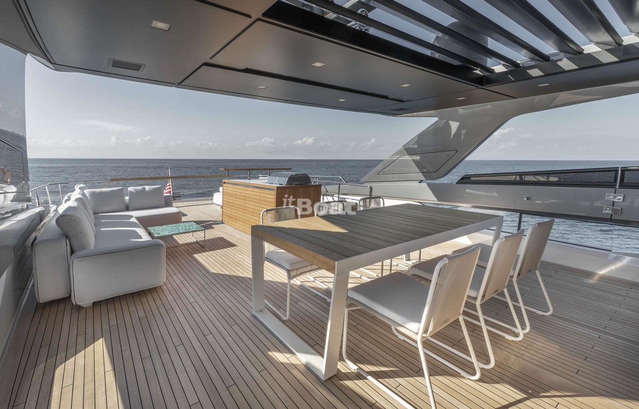 Motor yacht Sanlorenzo Yachts Mary 32.3 length metres The shipyard Sanlorenzo Yachts rolled off the slipway 2023 in year. The yacht can accommodate up to 11 guests and is maintained and operated by 5 crew members. Studio Zuccon International Project was responsible for her appearance.