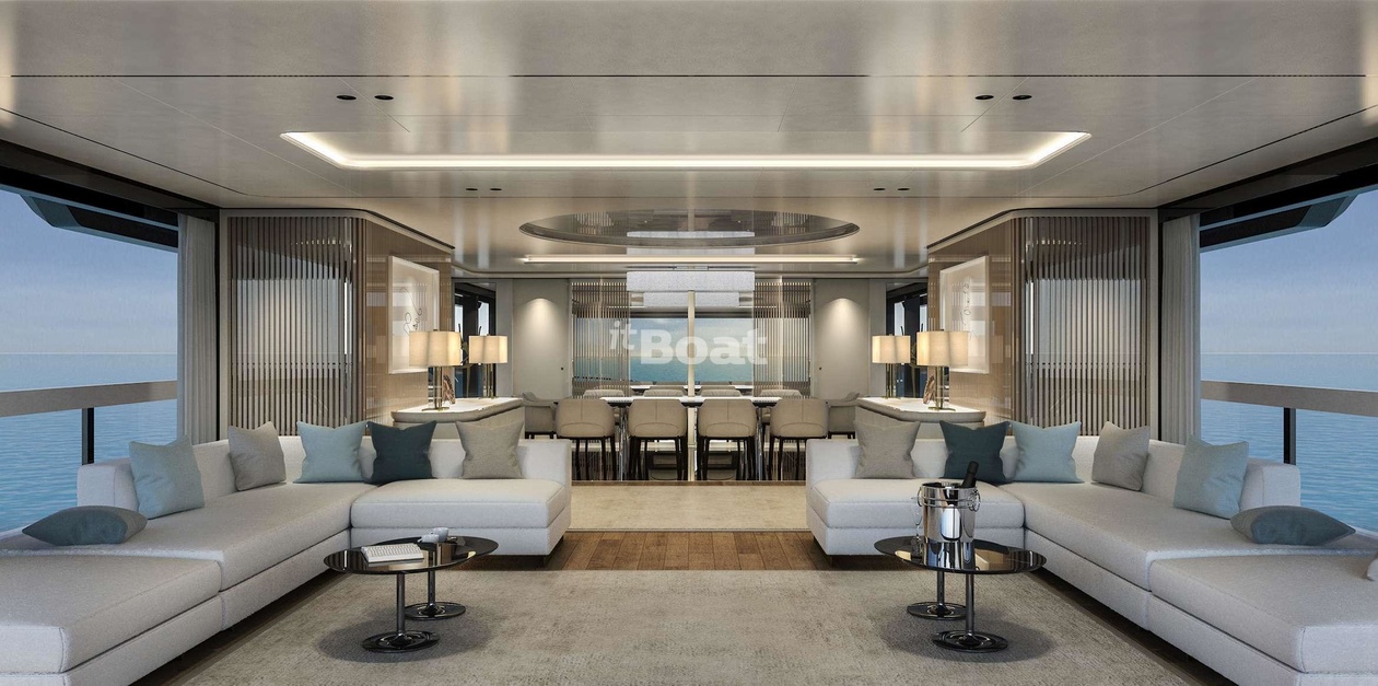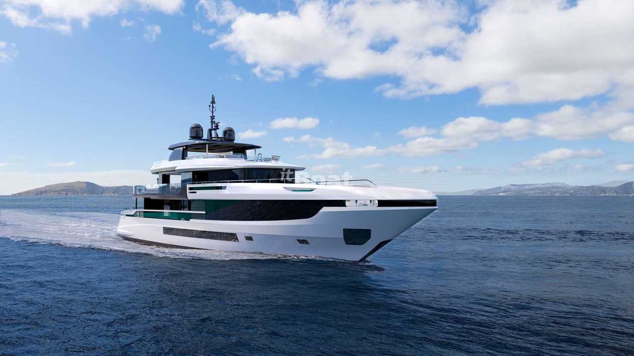 Motor yacht Overmarine Mangusta Sagas 44.5 length metres The shipyard Overmarine Mangusta rolled off the slipway 2022 in year. The yacht can accommodate up to 12 guests and is maintained and operated by 7 crew members. Studio Alberto Mancini was responsible for its exterior and interior design.