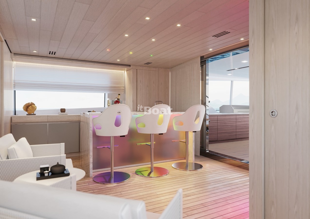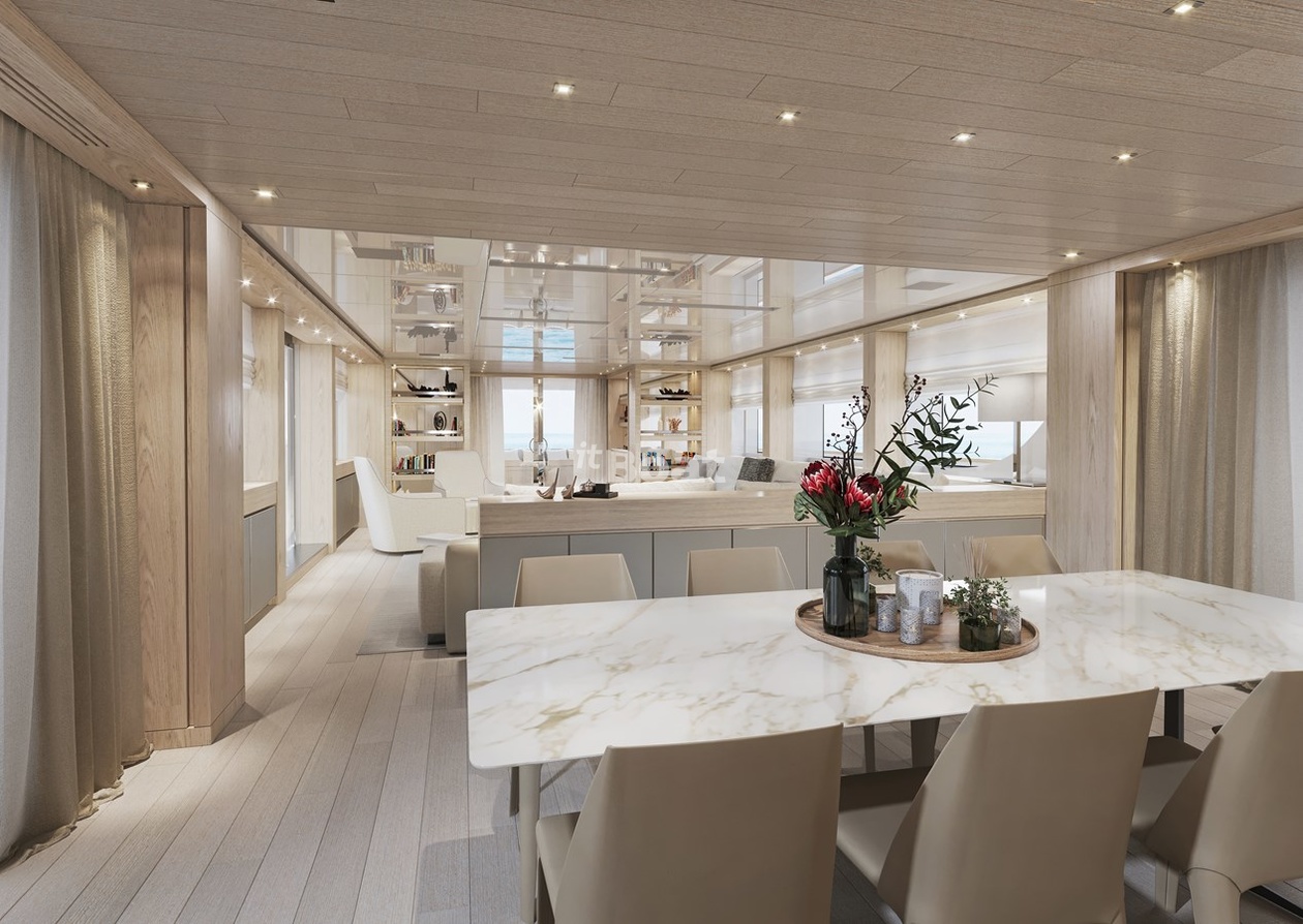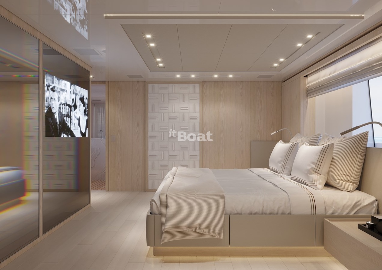 Motor yacht Sanlorenzo Yachts Glory 38.4 length metres The shipyard Sanlorenzo Yachts rolled off the slipway 2022 in year. The yacht can accommodate up to 10 guests and is maintained and operated by 7 crew members. Studio Francesco Paszkowski was responsible for her appearance.