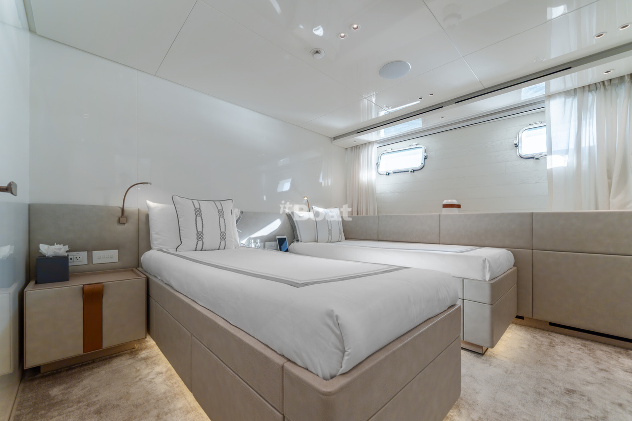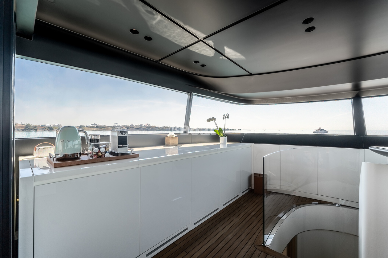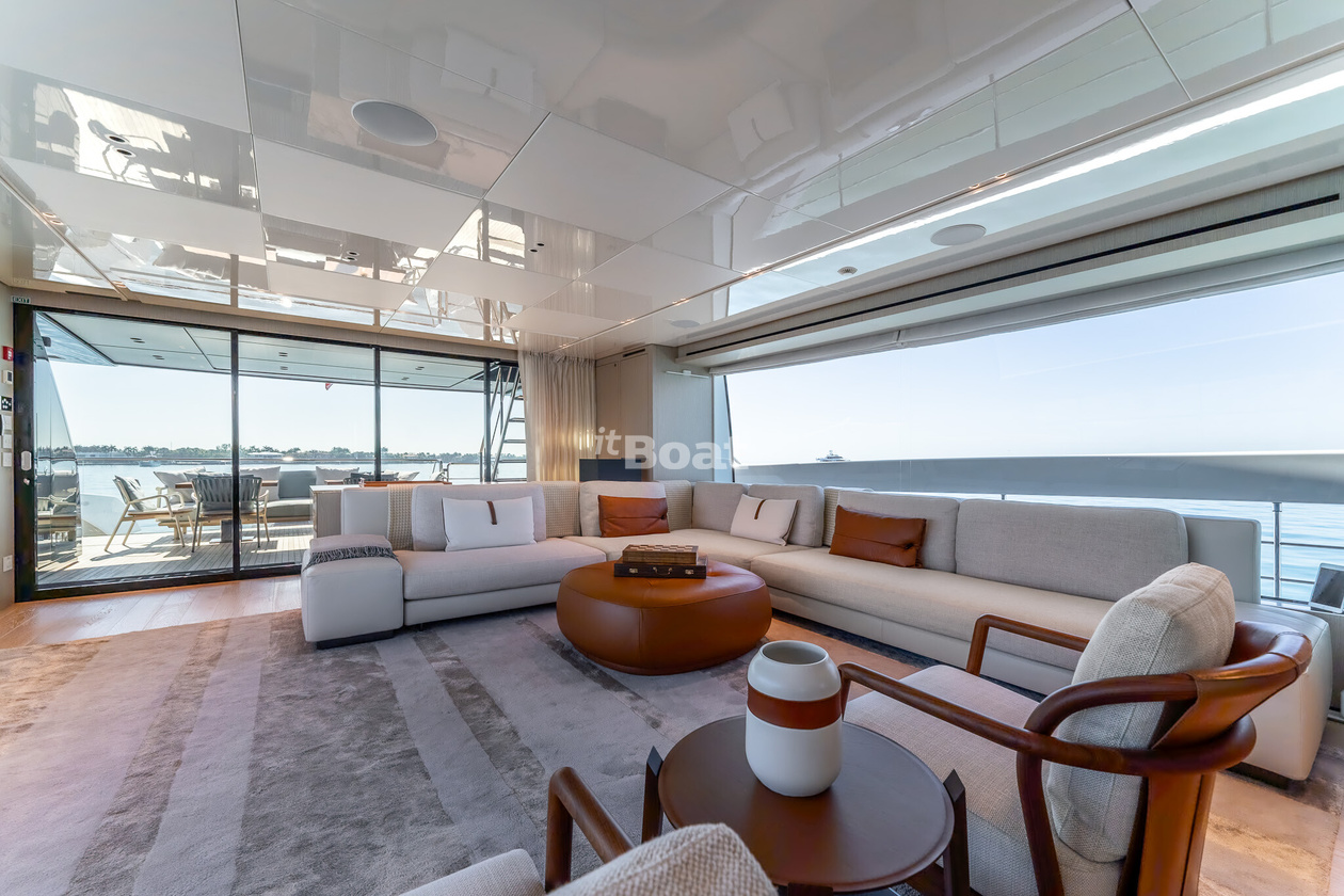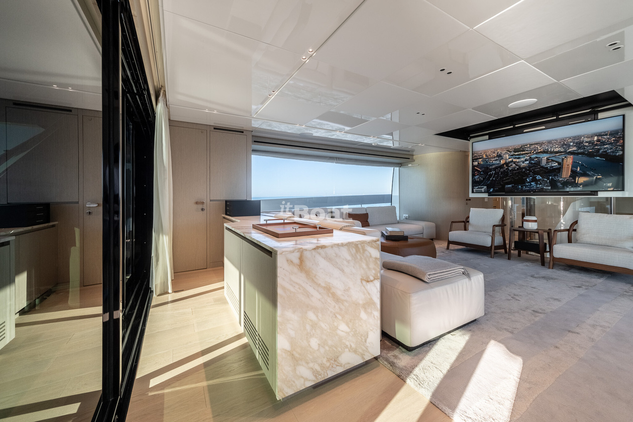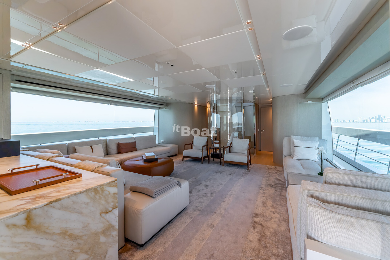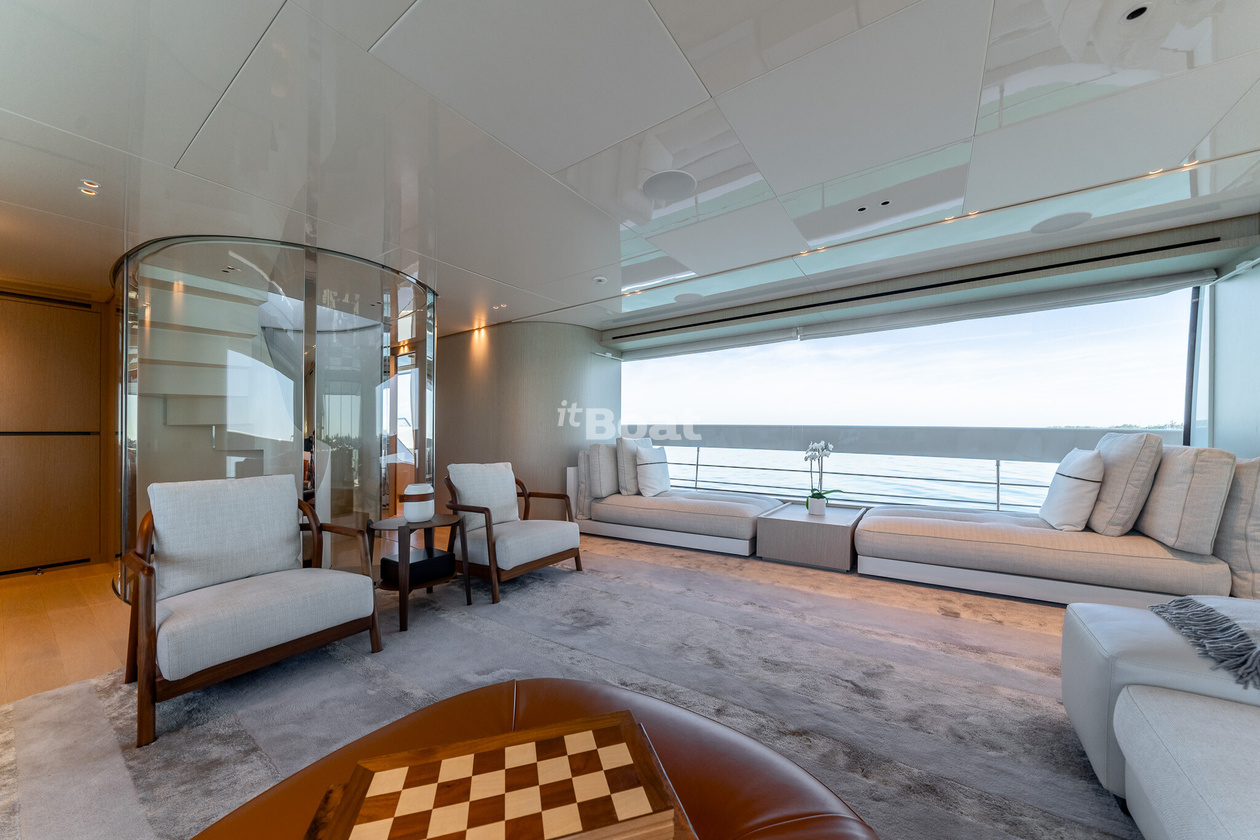 34.2-meter motor yacht Sanlorenzo Yachts La Luna was built in 2021 at the Sanlorenzo Yachts shipyard. The yacht can accommodate up to 10 guests and is maintained and operated by 5 crew members. The exterior design is by Zuccon International Project.