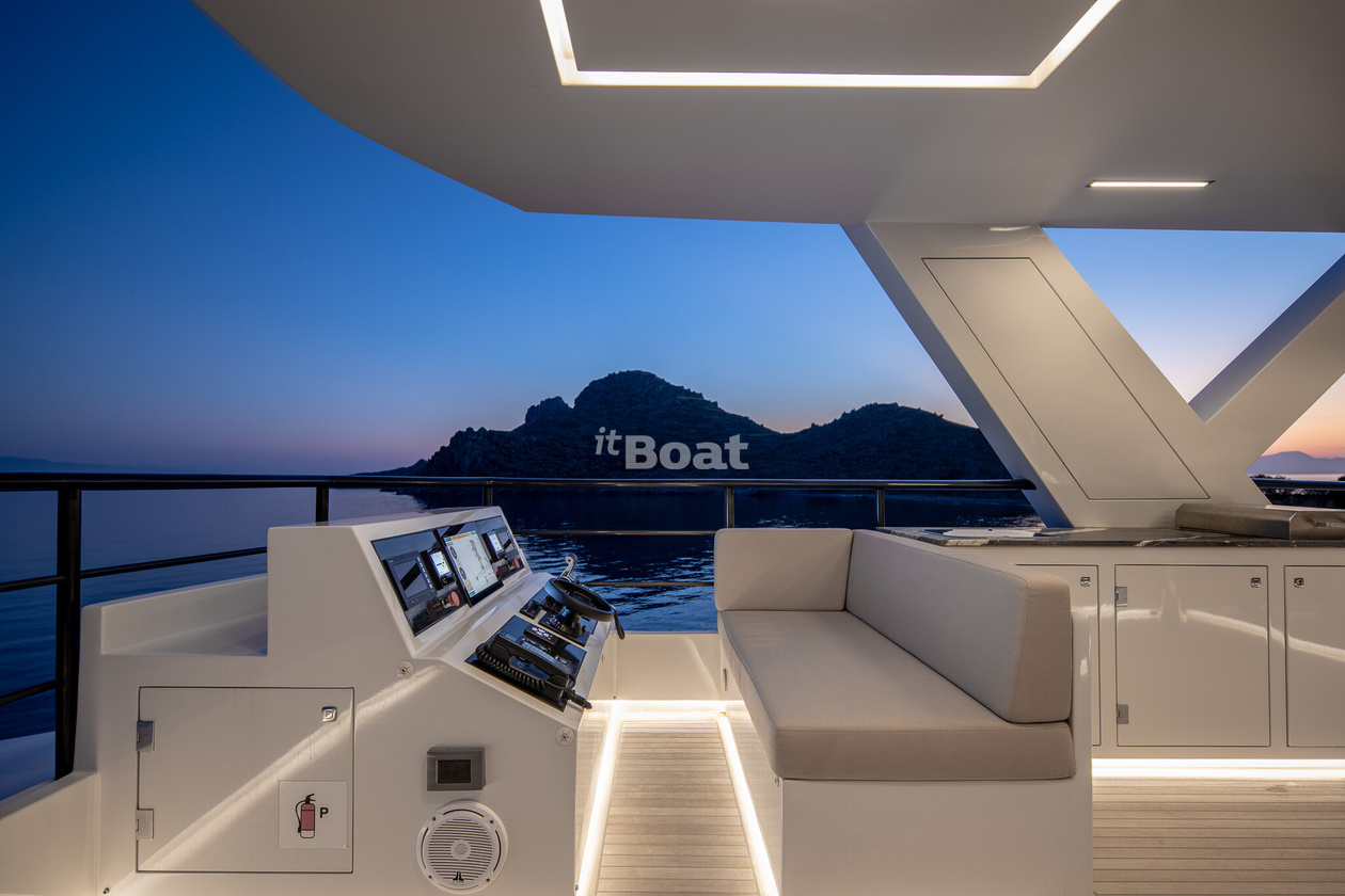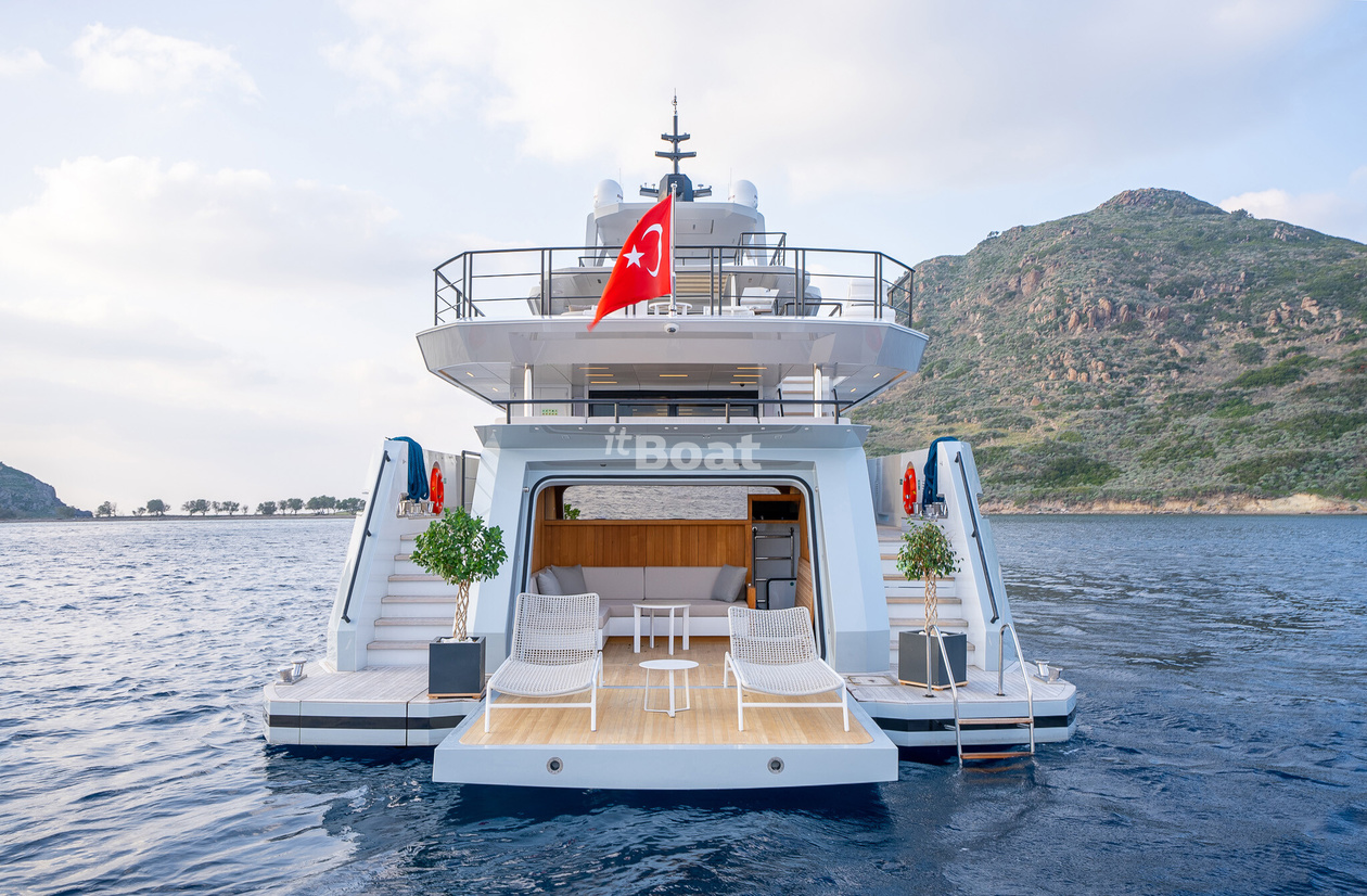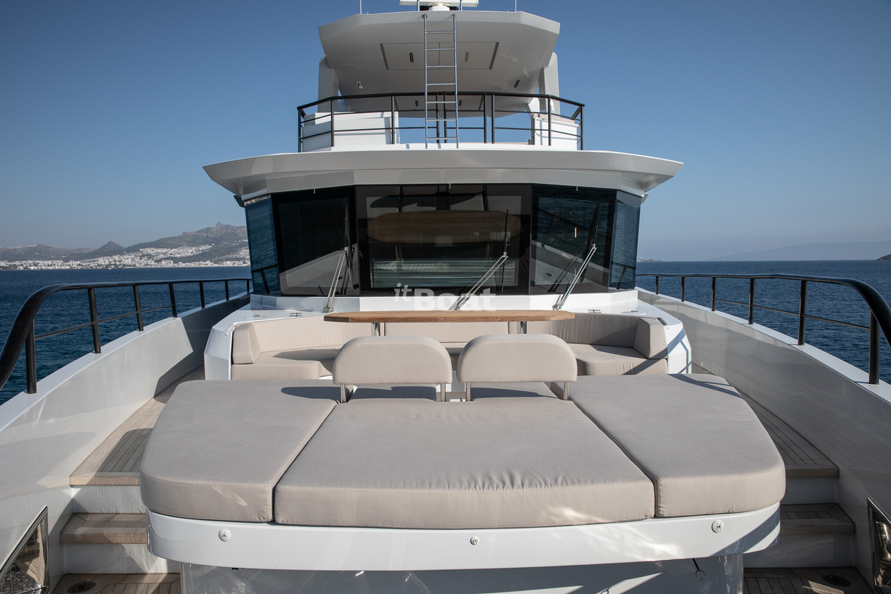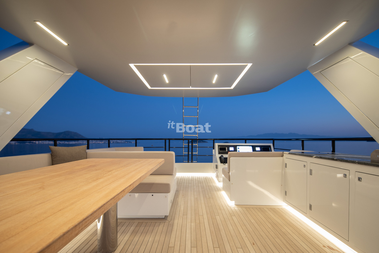 30-meter motor yacht Blaundus Yachts Ezgy was built in 2021 at the Blaundus Yachts shipyard. The yacht can accommodate up to 10 guests and is maintained and operated by 5 crew members. The exterior design was developed by the shipyard's in-house design department.