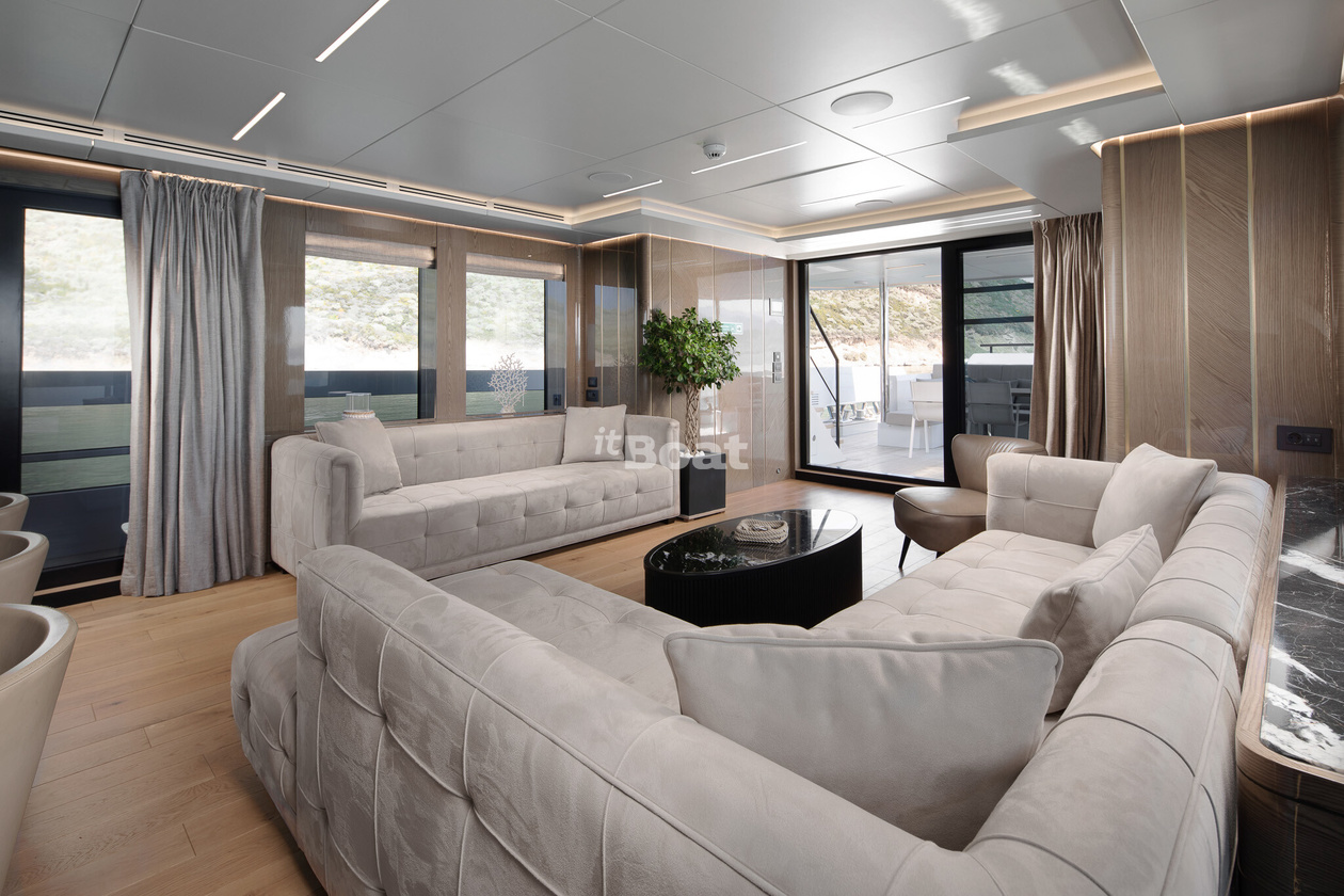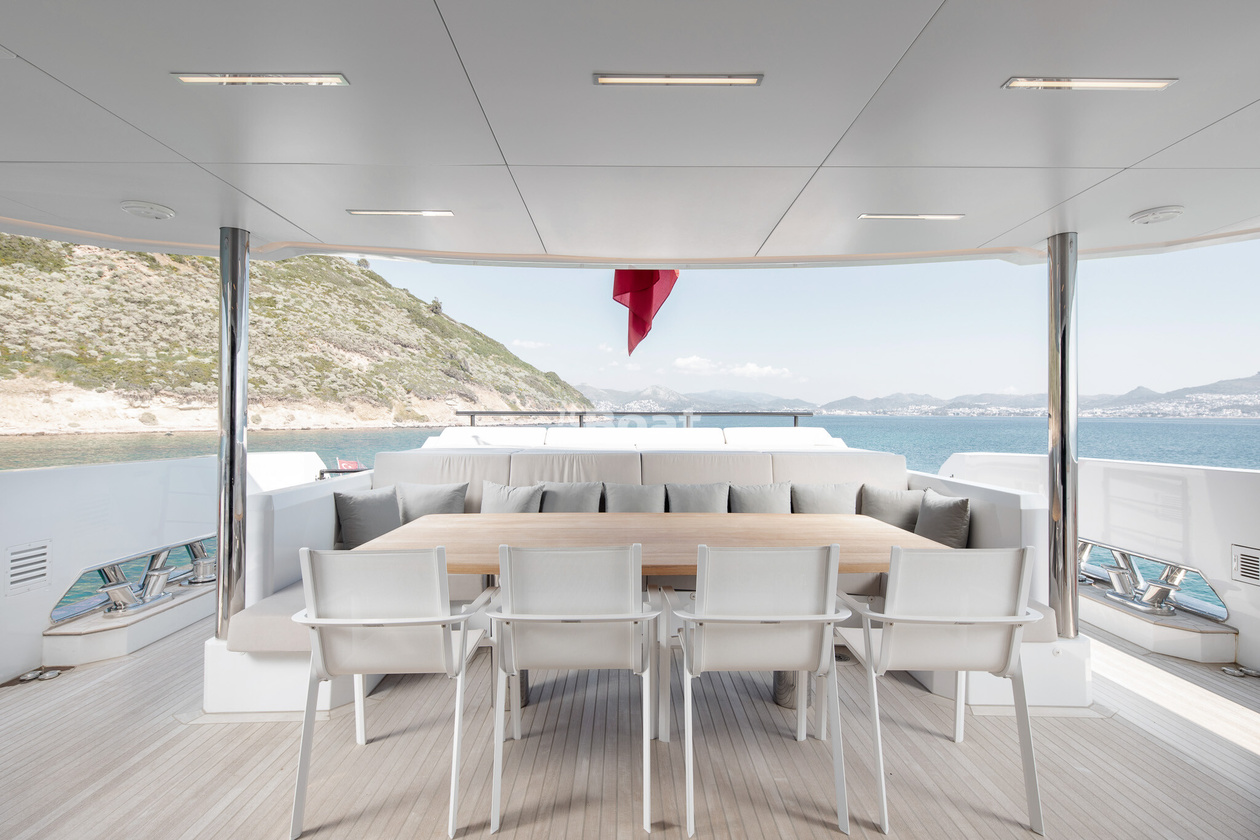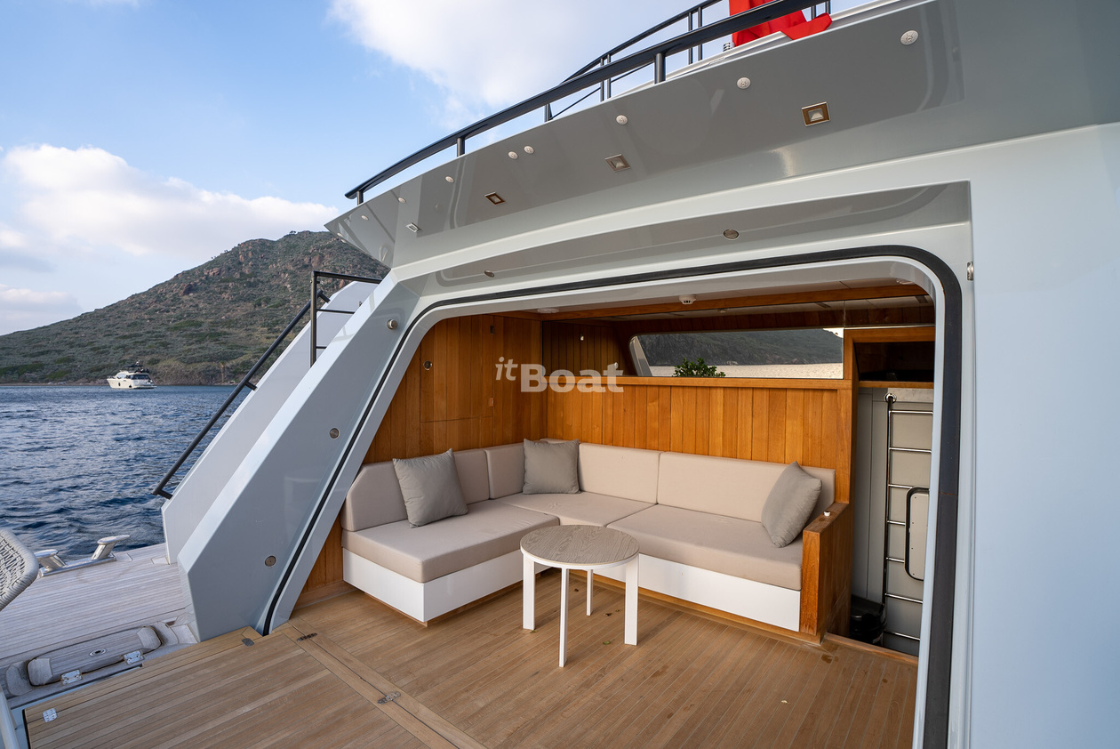 30-meter motor yacht Blaundus Yachts Ezgy was built in 2021 at the Blaundus Yachts shipyard. The yacht can accommodate up to 10 guests and is maintained and operated by 5 crew members. The exterior design was developed by the shipyard's in-house design department.