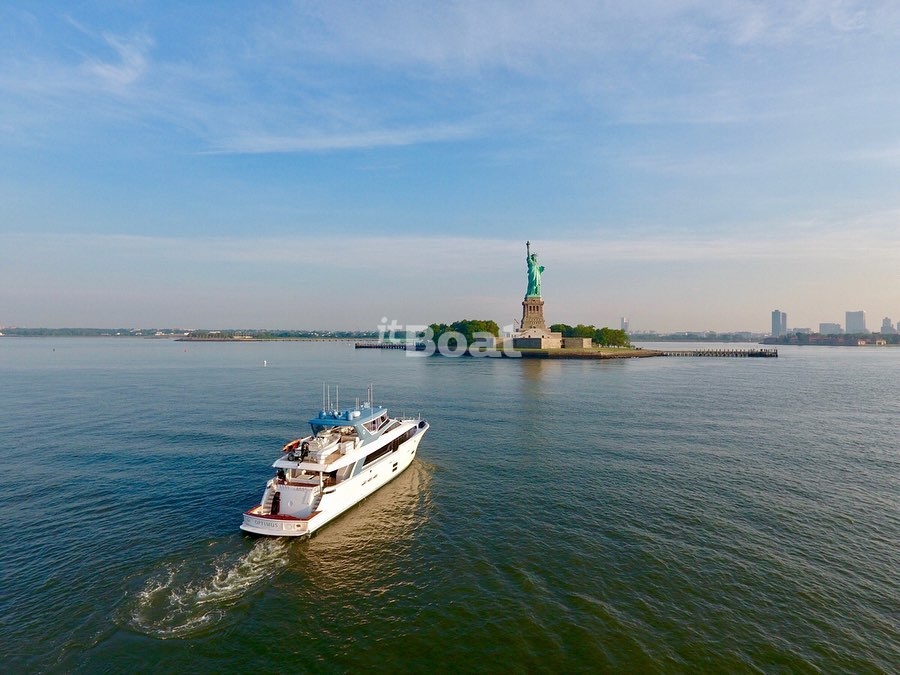 Motor yacht Hatteras Optimus 32.6 length metres The shipyard Hatteras rolled off the slipway 2019 in year. The yacht can accommodate up to 8 guests and is maintained and operated by 4 crew members. The shipyard itself was responsible for her exterior and interior design.