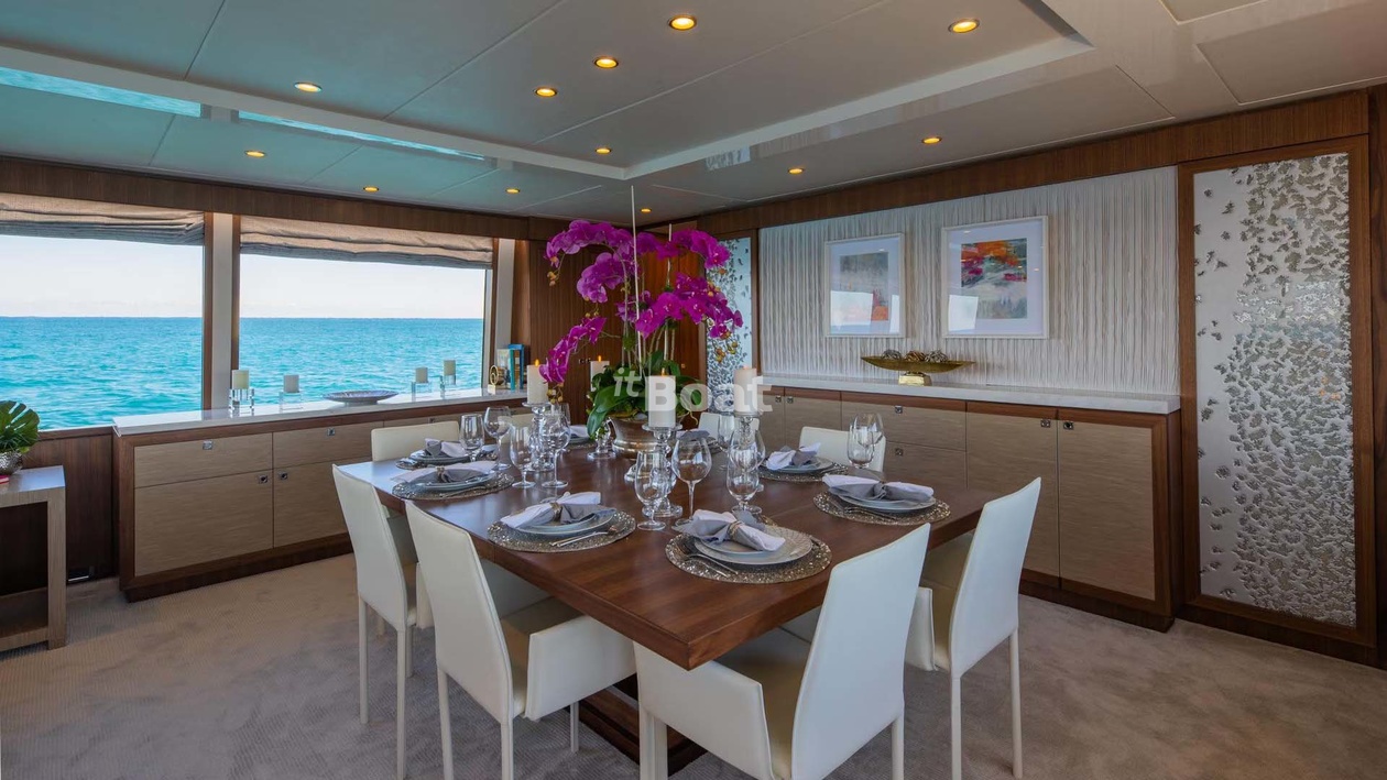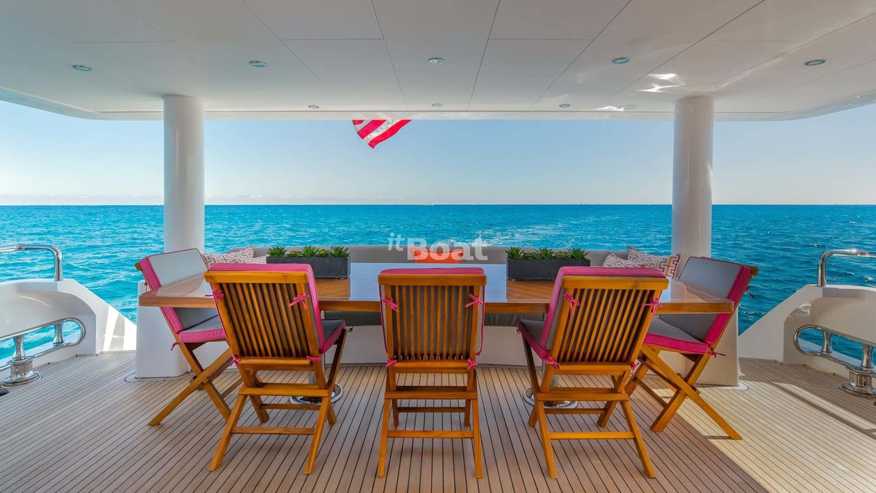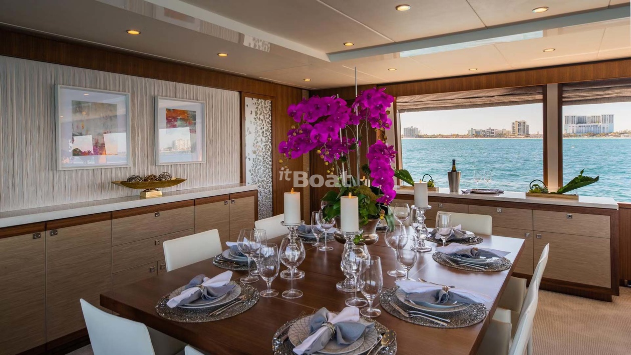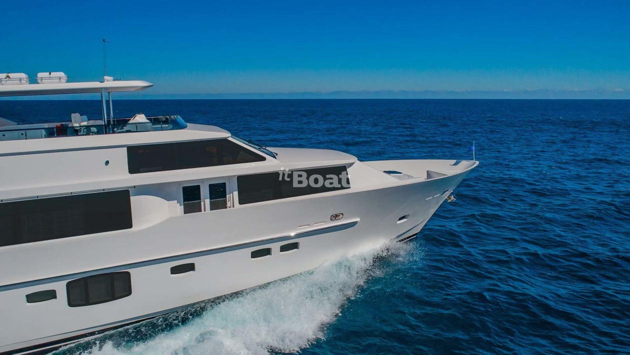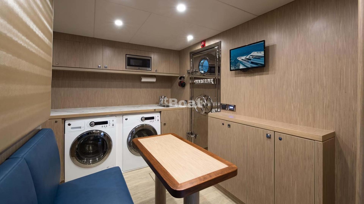 32-meter motor yacht Hargrave Risk Taker was built in 2019 at the Hargrave shipyard. The yacht can accommodate up to 8 guests and is maintained and operated by 5 crew members. The exterior design was developed by the shipyard's in-house design department.