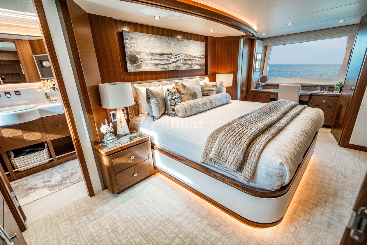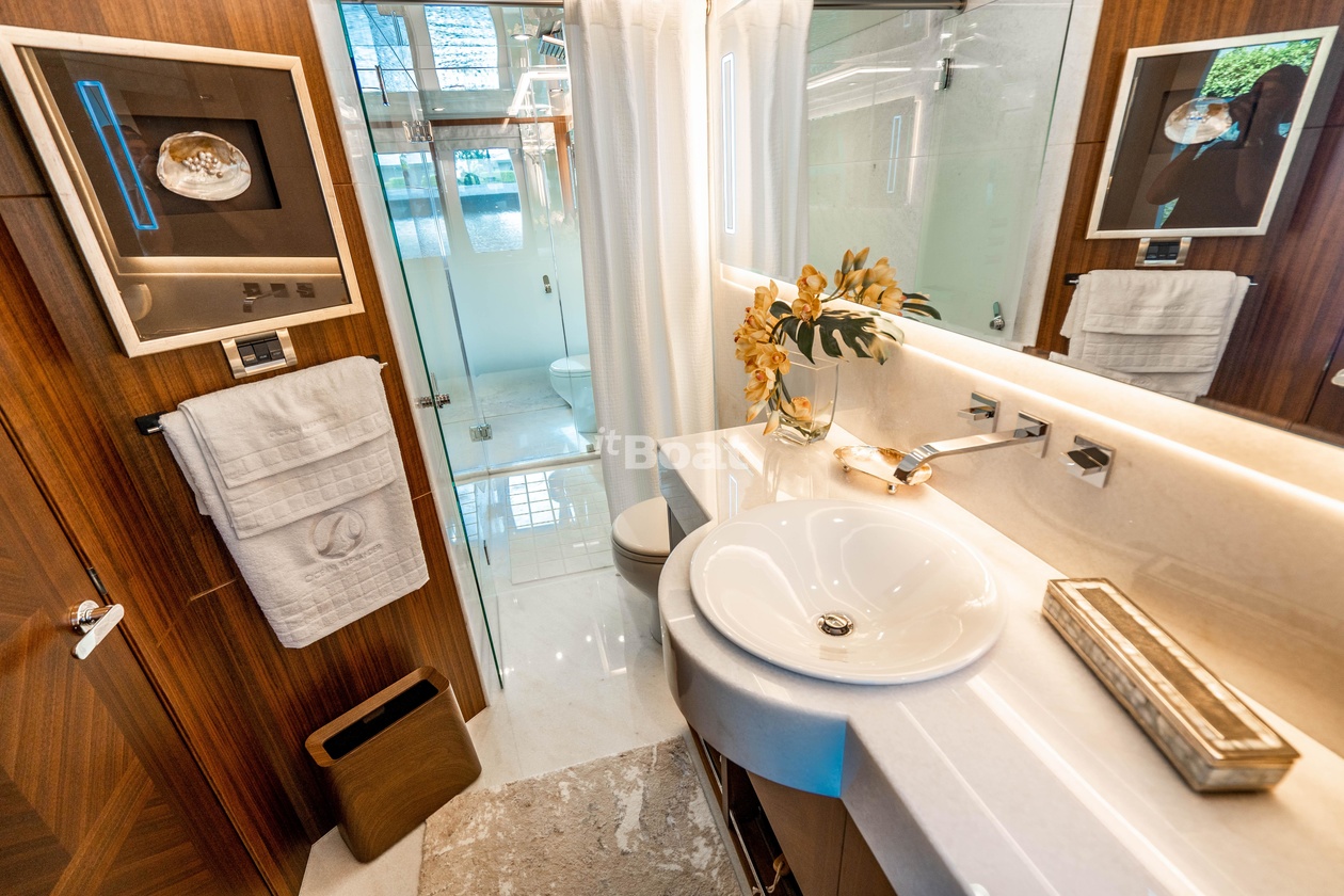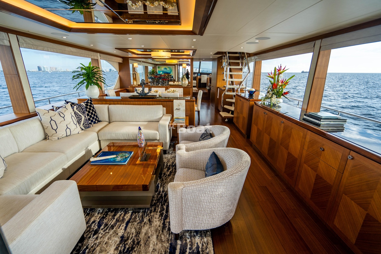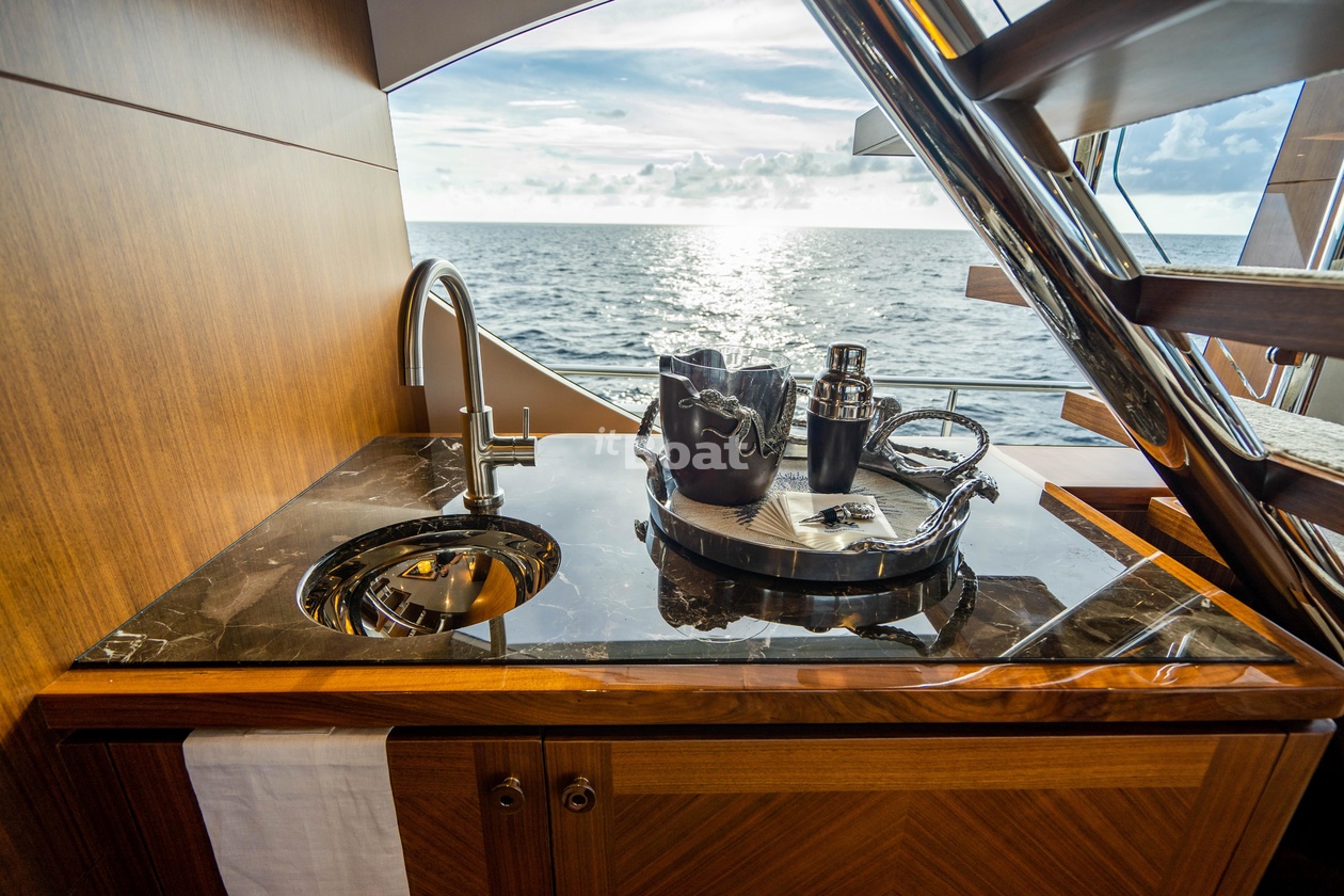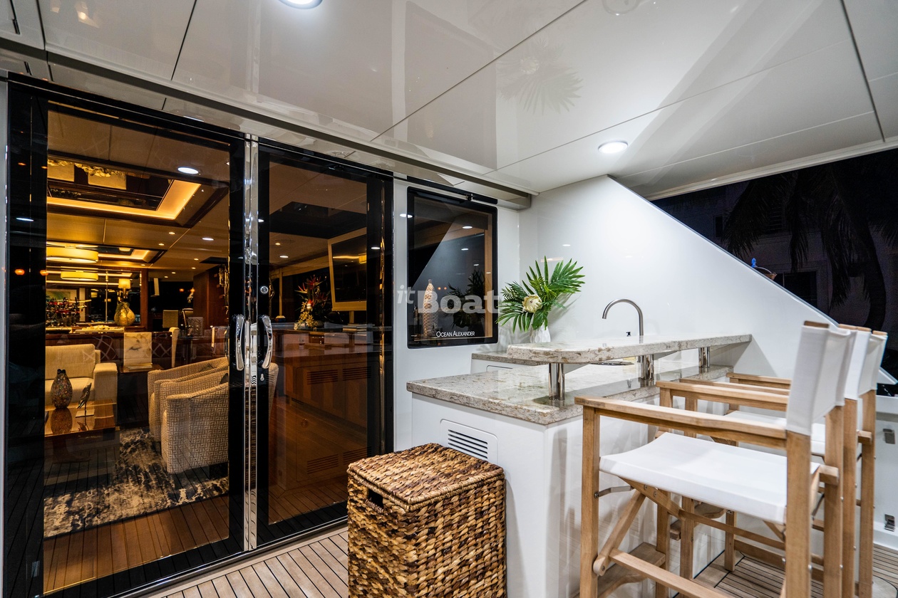 30.5-meter motor yacht Ocean Alexander Aura was built in 2019 at the Ocean Alexander shipyard. The yacht can accommodate up to 8 guests and is maintained and operated by 4 crew members. The exterior and interior design is designed Evan K. Marshall.