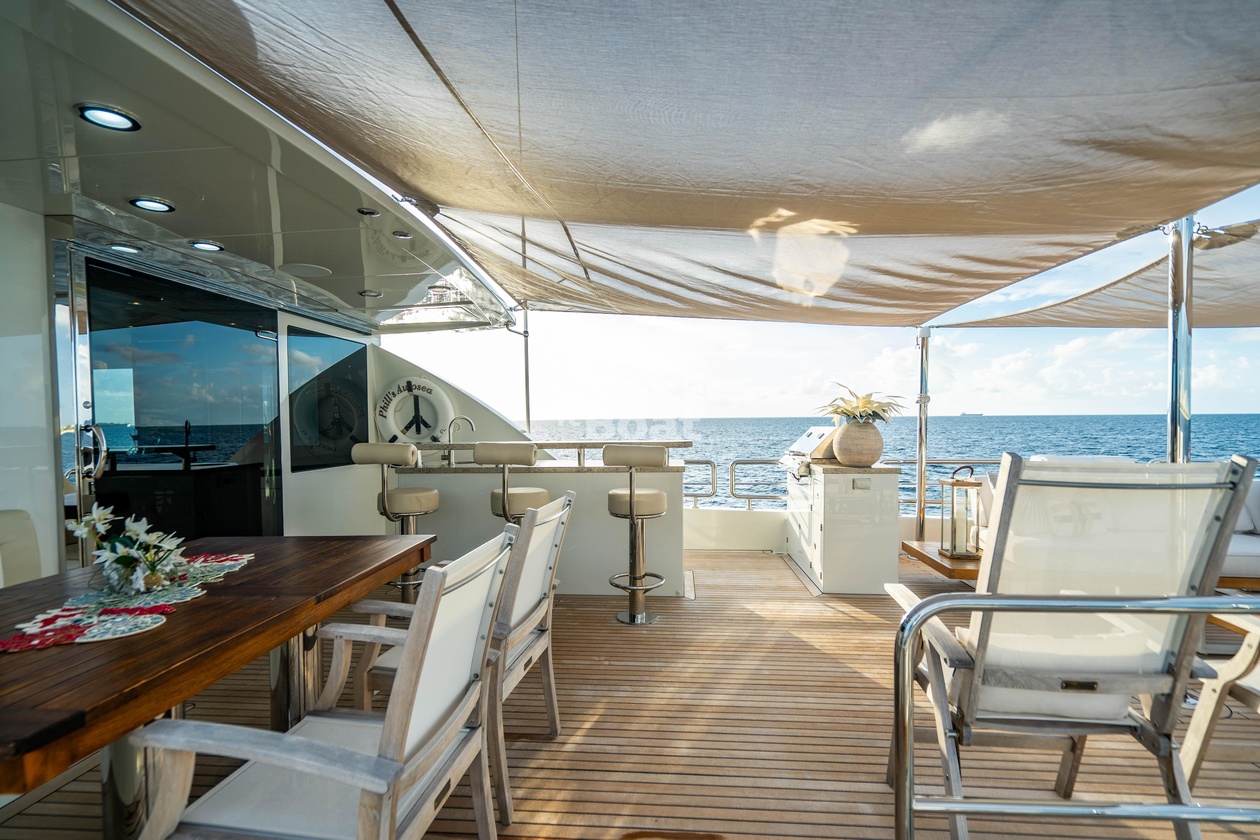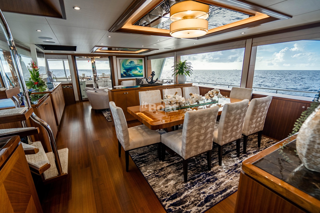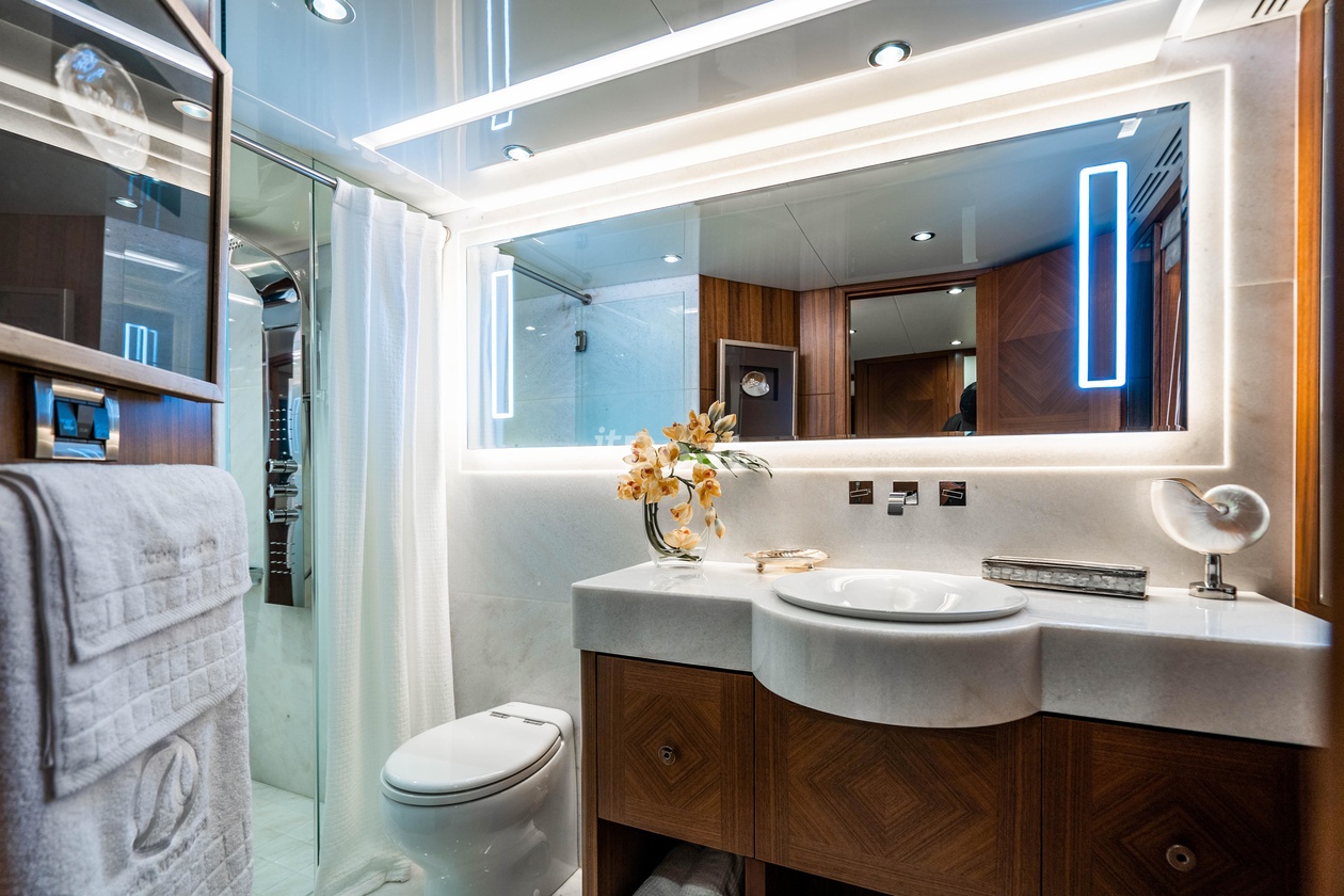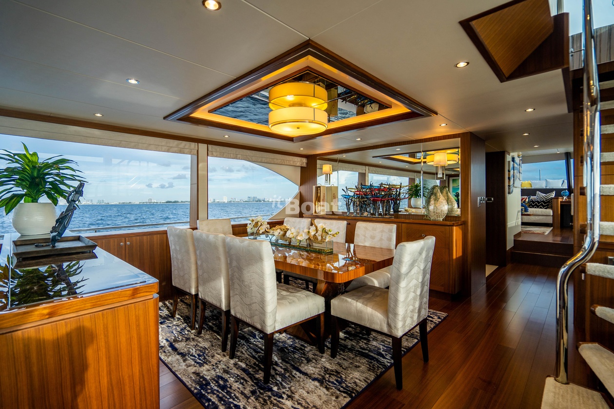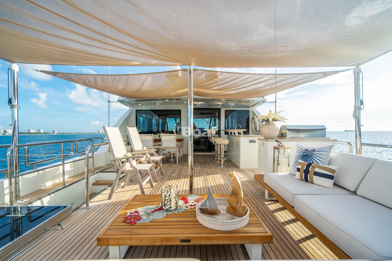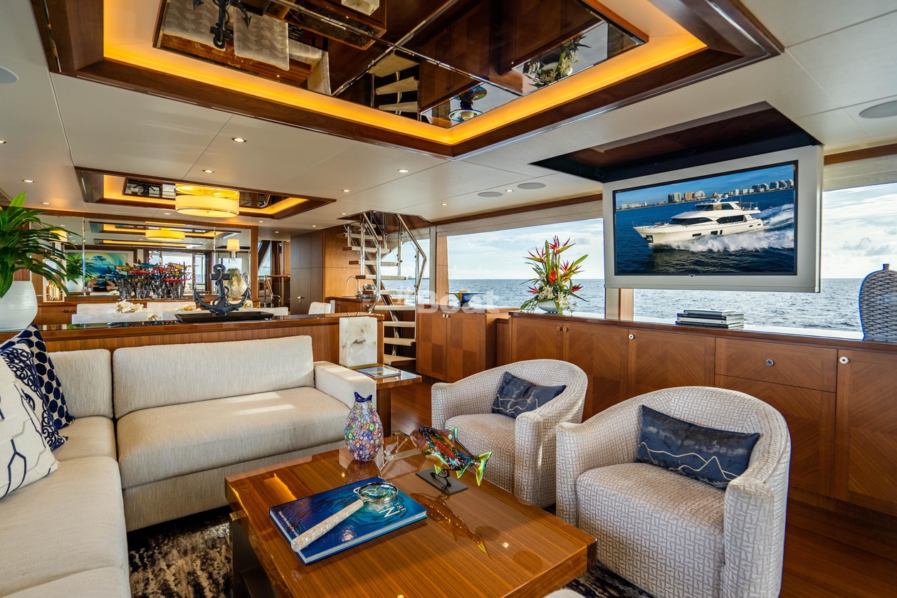 30.5-meter motor yacht Ocean Alexander Aura was built in 2019 at the Ocean Alexander shipyard. The yacht can accommodate up to 8 guests and is maintained and operated by 4 crew members. The exterior and interior design is designed Evan K. Marshall.