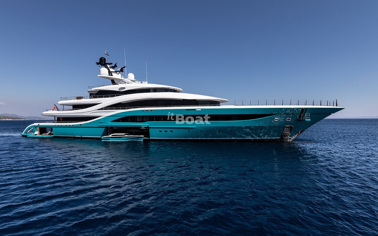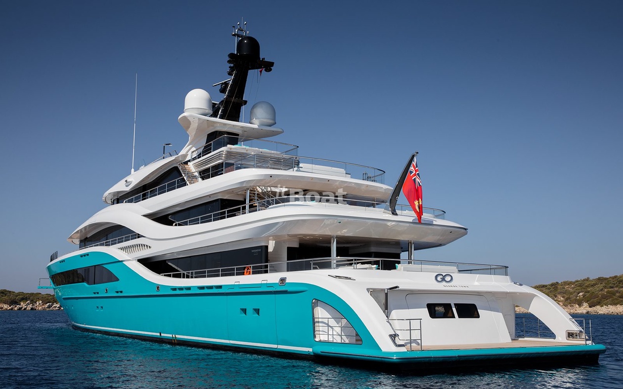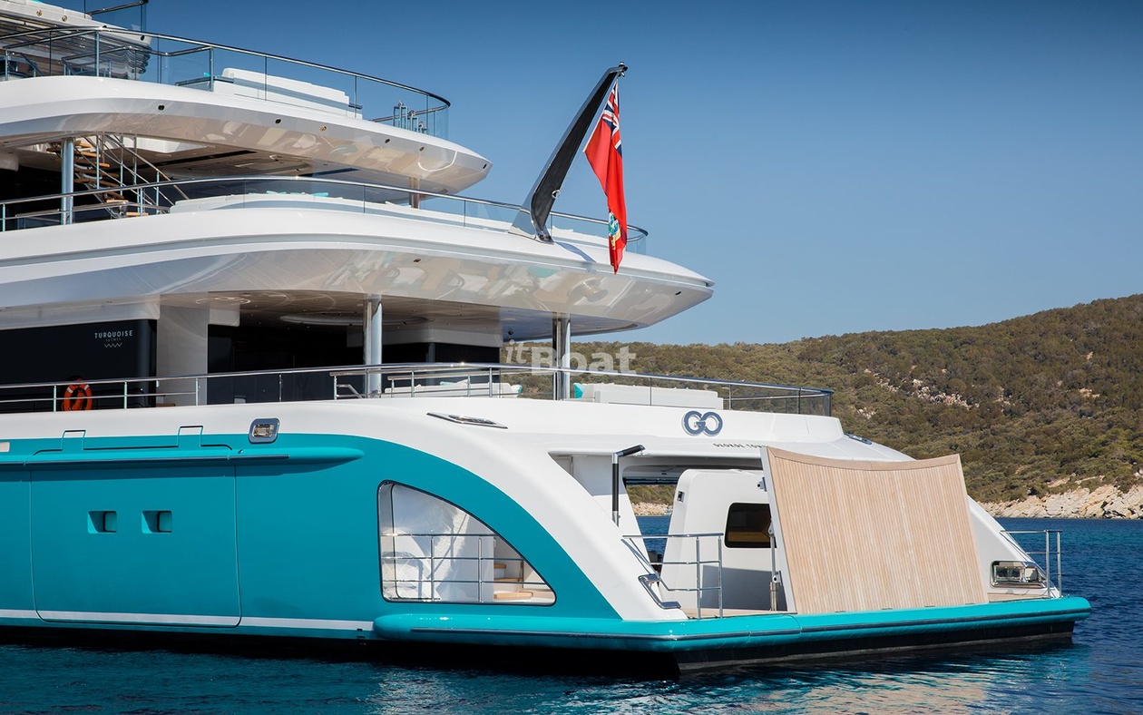 Motor yacht Turquoise Yachts Go 77 length metres The shipyard Turquoise Yachts rolled off the slipway 2018 in year. The yacht can accommodate up to 16 guests and is maintained and operated by 19 crew members. Studio H2 Yacht Design was responsible for its exterior and interior design.