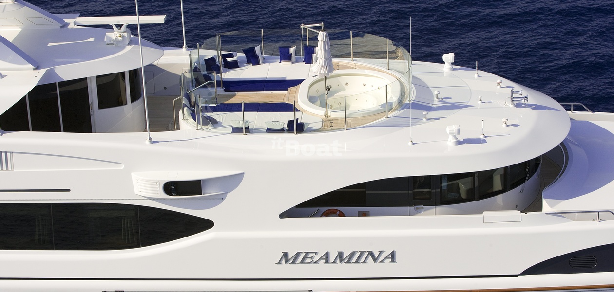 Motor yacht Benetti Yachts Meamina 59.3 length metres The shipyard Benetti Yachts rolled off the slipway 2009 in year. The yacht can accommodate up to 12 guests and is maintained and operated by 15 crew members. Studio Stefano Natucci was responsible for her appearance. The interior designer was Studio Massari.