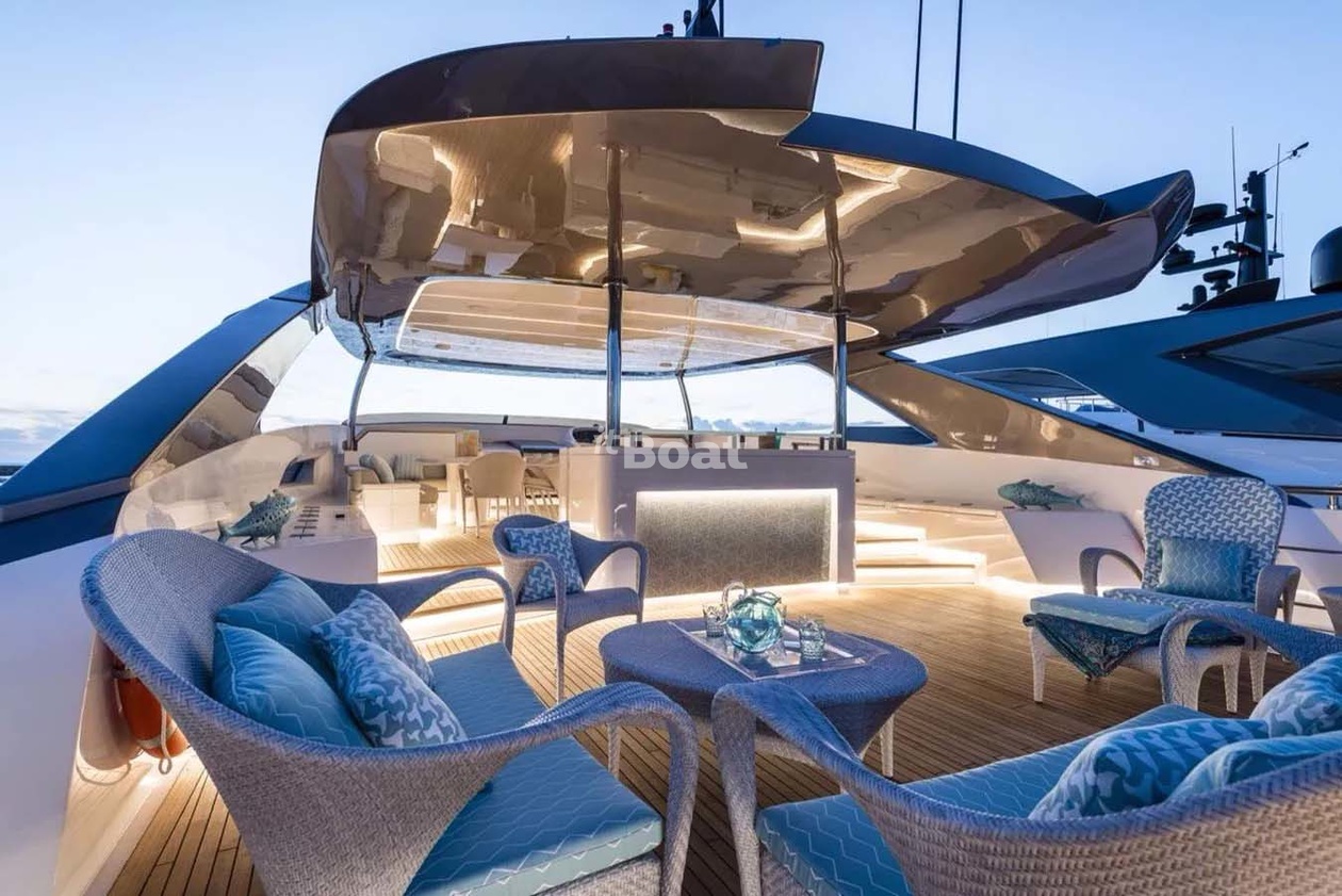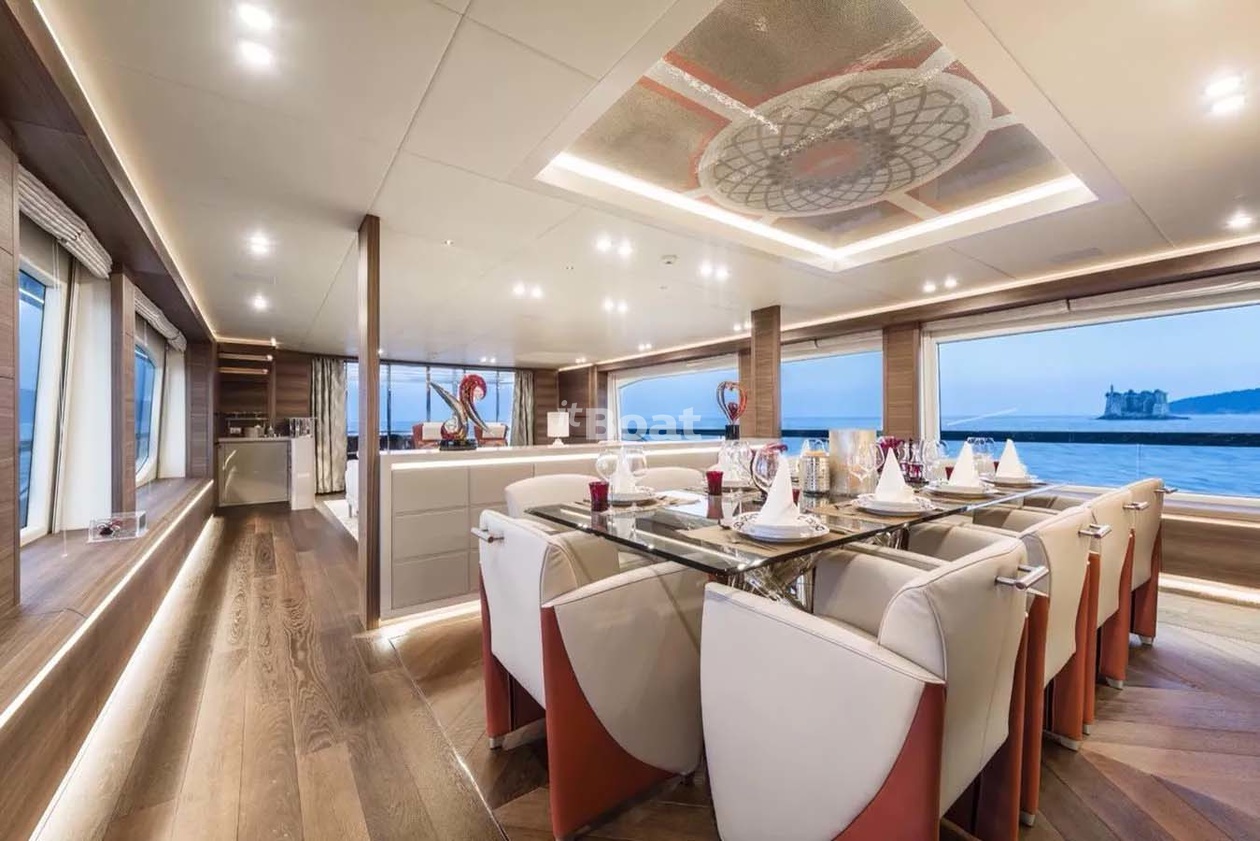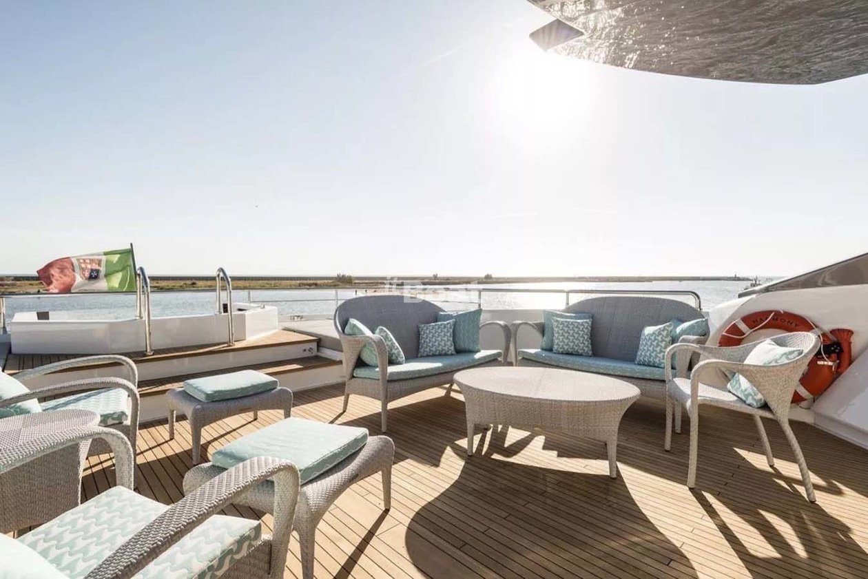 Motor yacht Maiora Perseus 36.2 length metres The shipyard Maiora rolled off the slipway 2017 in year. The yacht can accommodate up to 10 guests and is maintained and operated by 5 crew members. The shipyard itself was responsible for her exterior and interior design.
