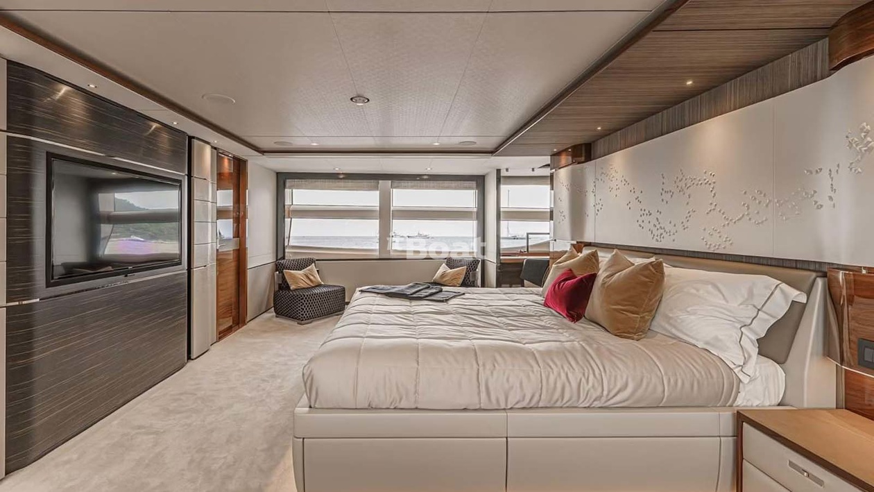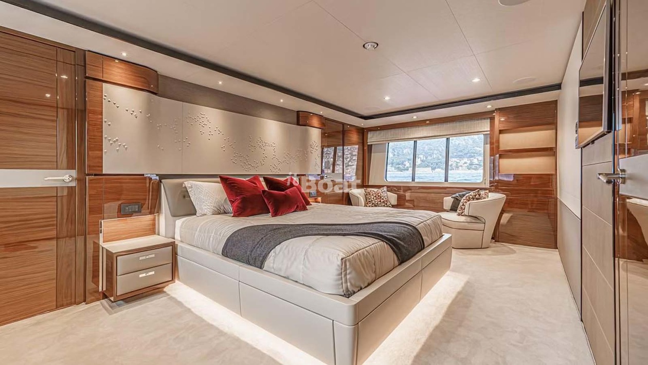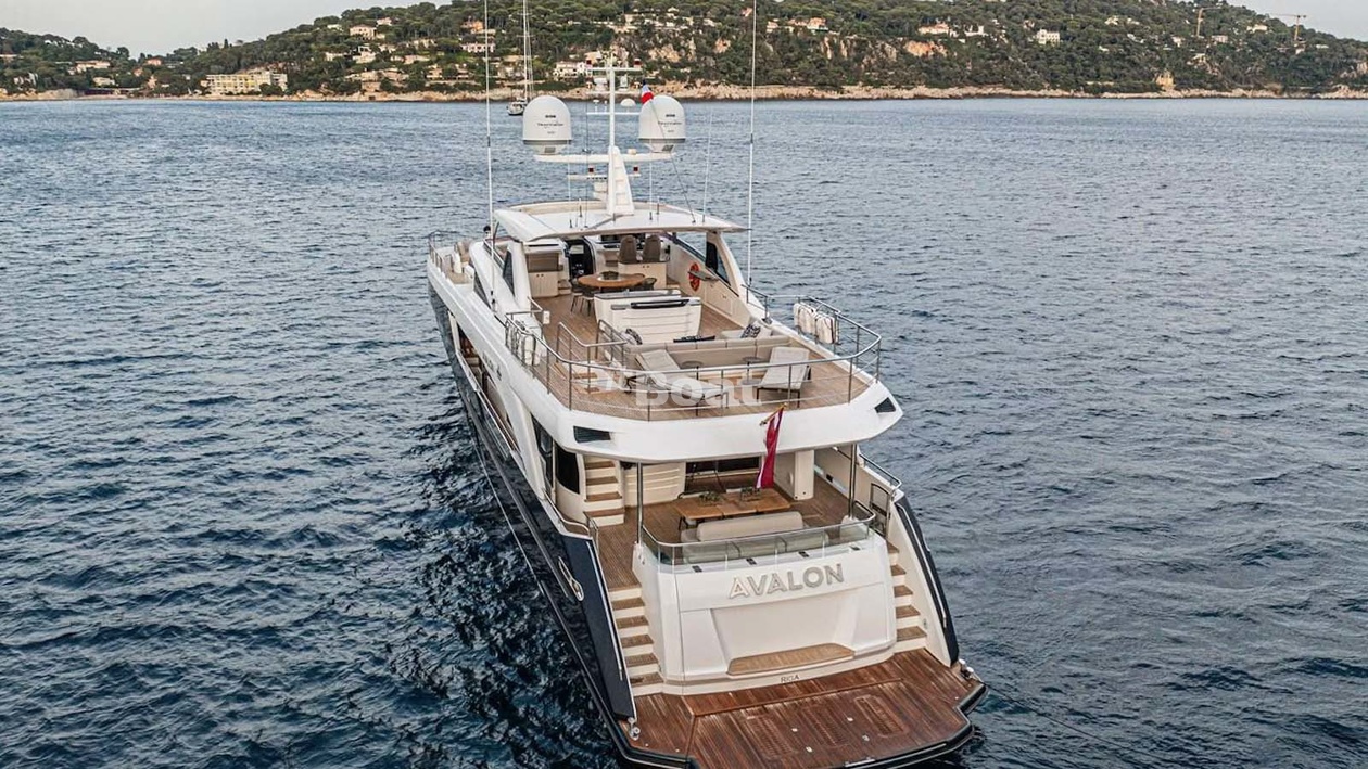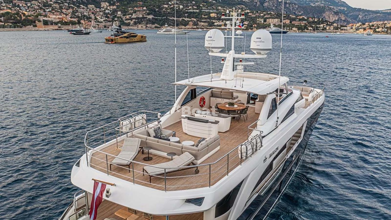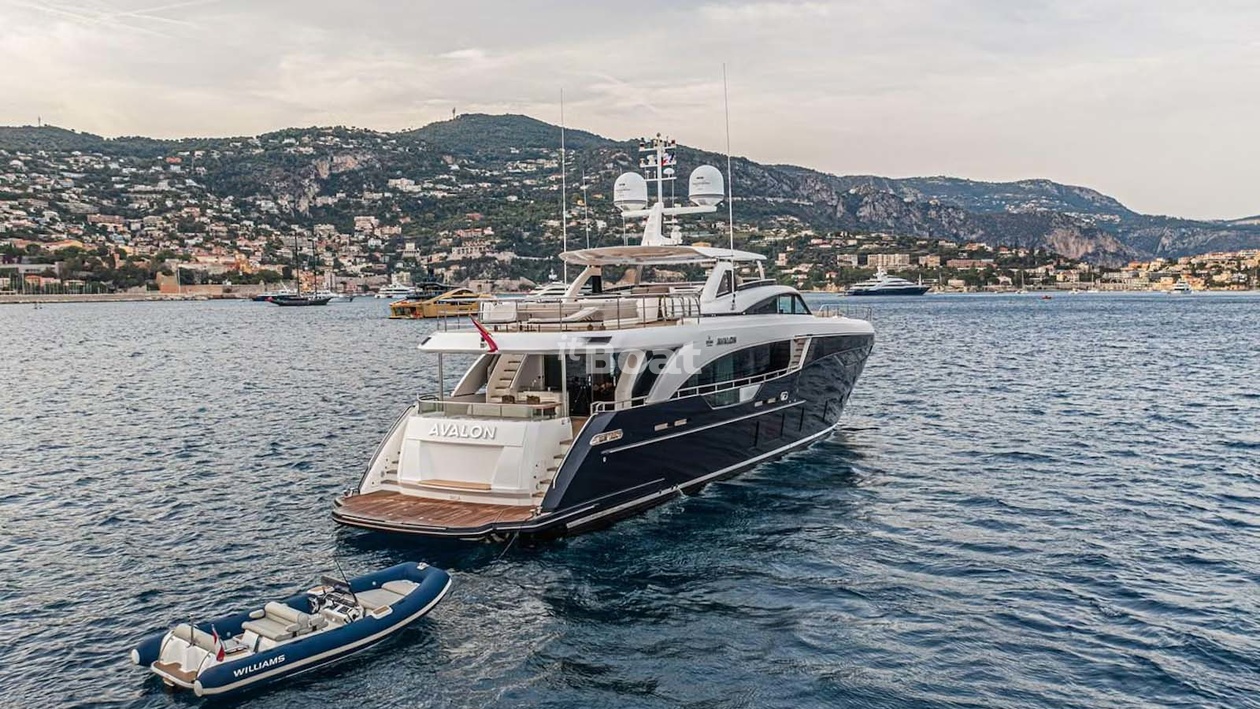 Motor yacht Princess Yachts Avalon 35.2 length metres The shipyard Princess Yachts rolled off the slipway 2018 in year. The yacht can accommodate up to 8 guests and is maintained and operated by 5 crew members. Studio Bernard Olesinski Ltd was responsible for her appearance.